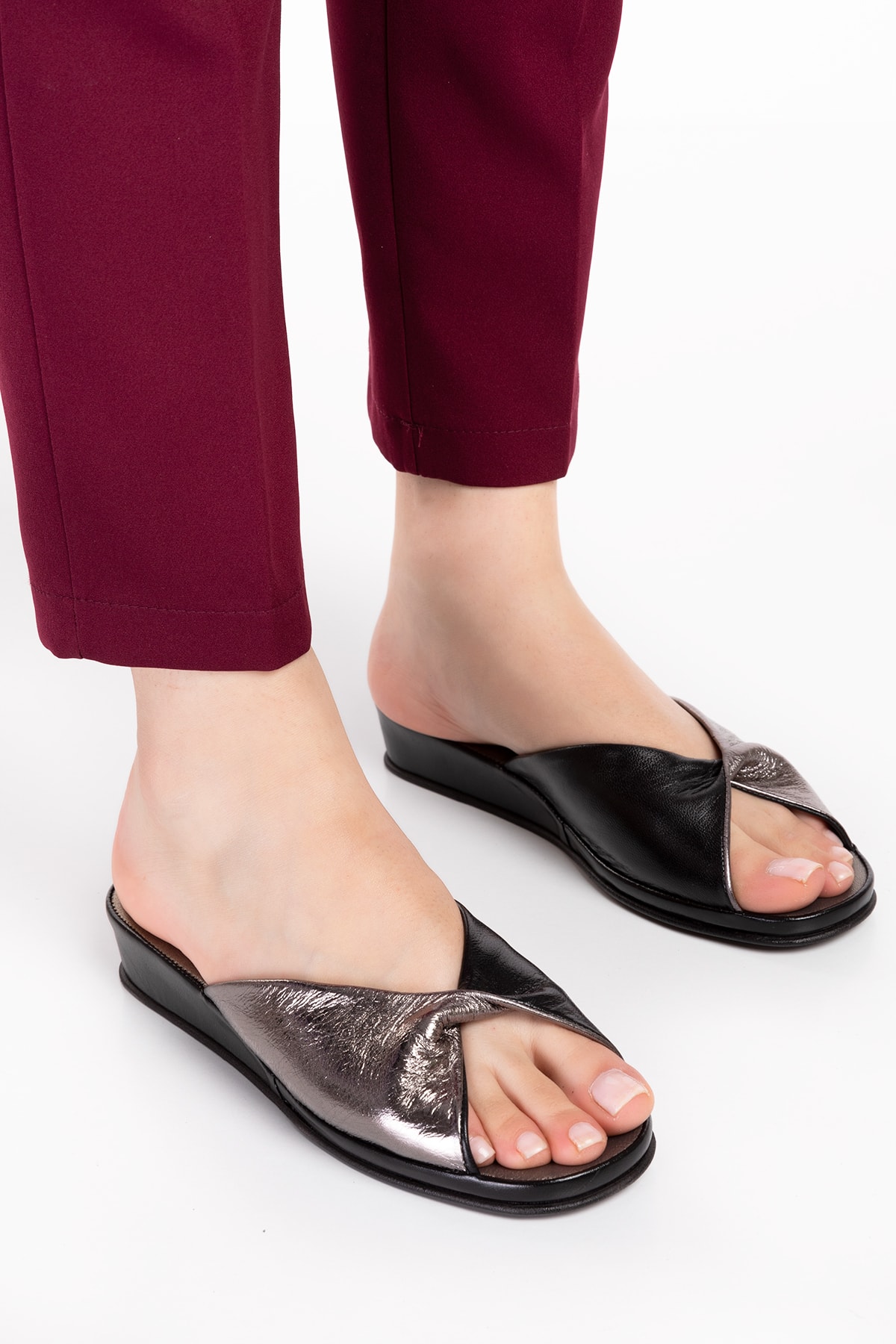 خرید اینترنتی دمپایی شیک زنانه از جنس چرم اصل مشکی پلاتینیوم برند Akgün Terlik اورجینال از Akgün Terlik نمایندگی و فروشگاه معتبر ترکیه