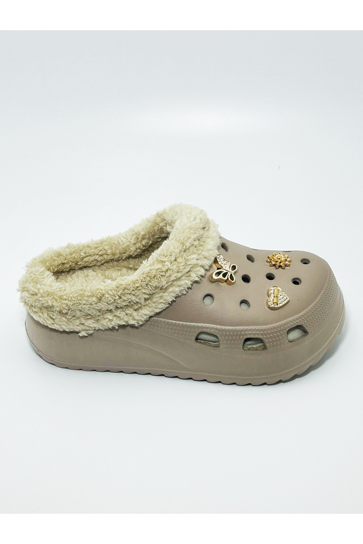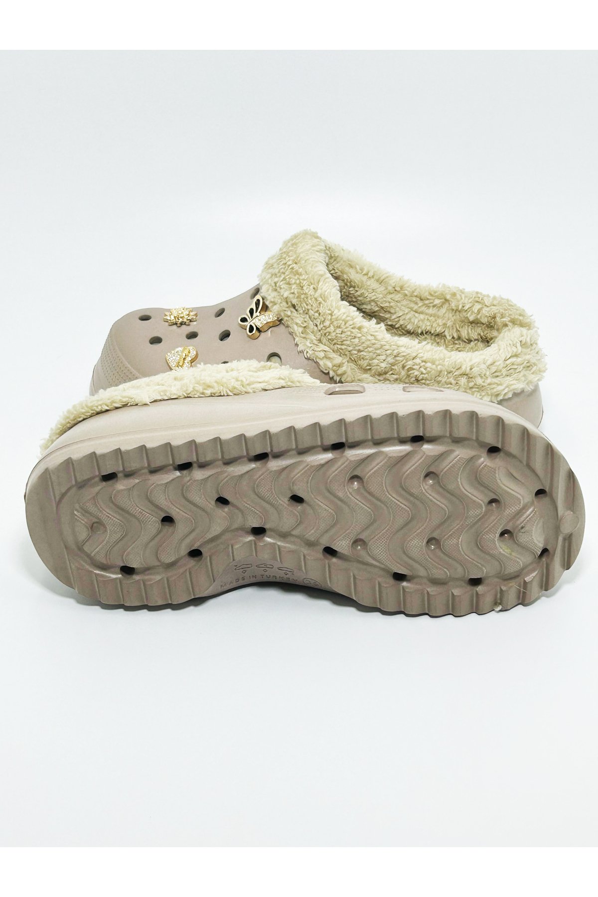 خرید اینترنتی دمپایی زمستانی قهوهای طرح Crocs زنانه طرح Stoned برند Akınal Bella اورجینال از İNALLAR AYAKKABI نمایندگی ترکیه