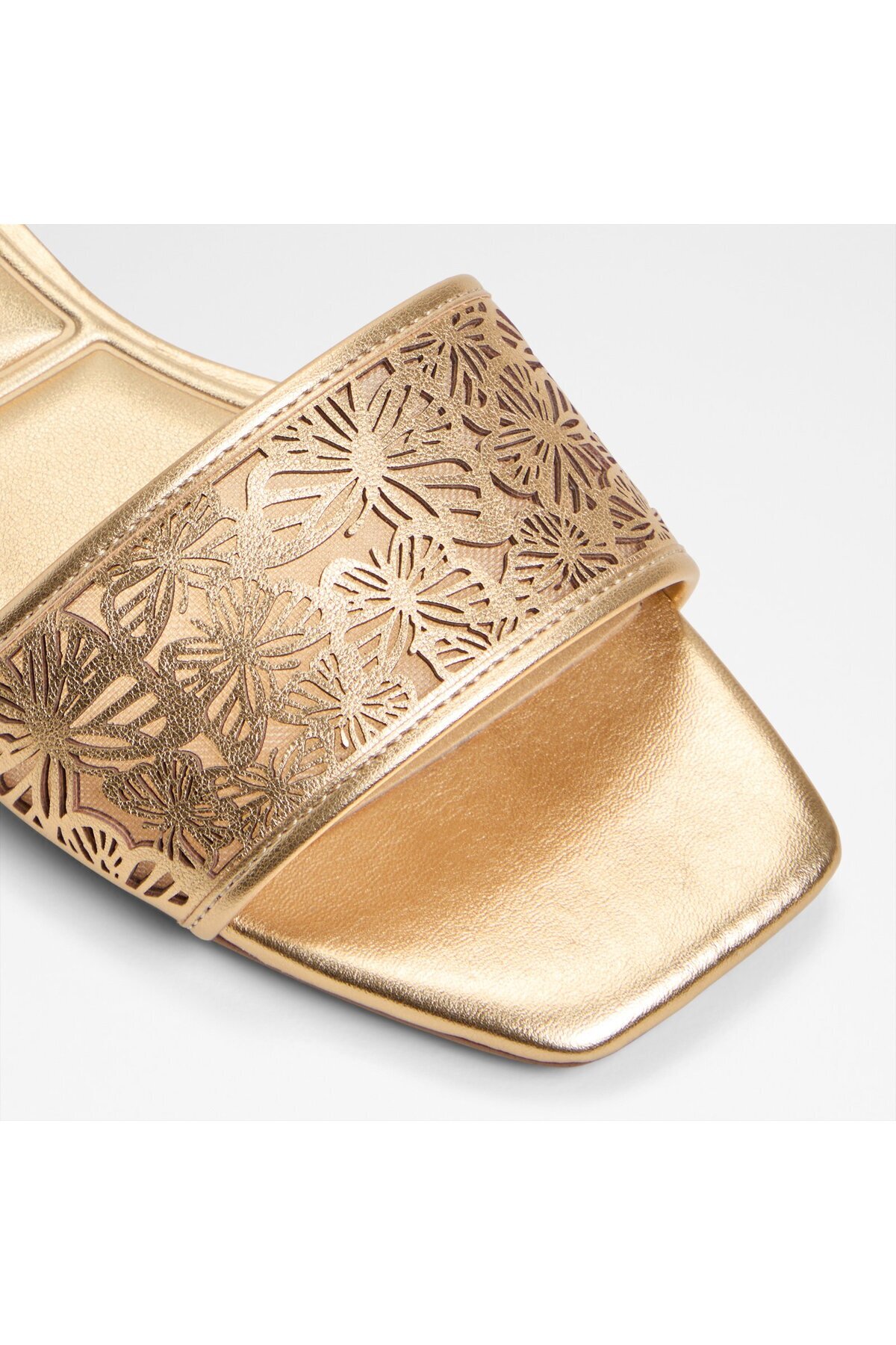 BRILLIANCE یک دمپایی پاشنه دار شیک است که از چرم مصنوعی با جزئیات برش لیزری ساخته شده است.