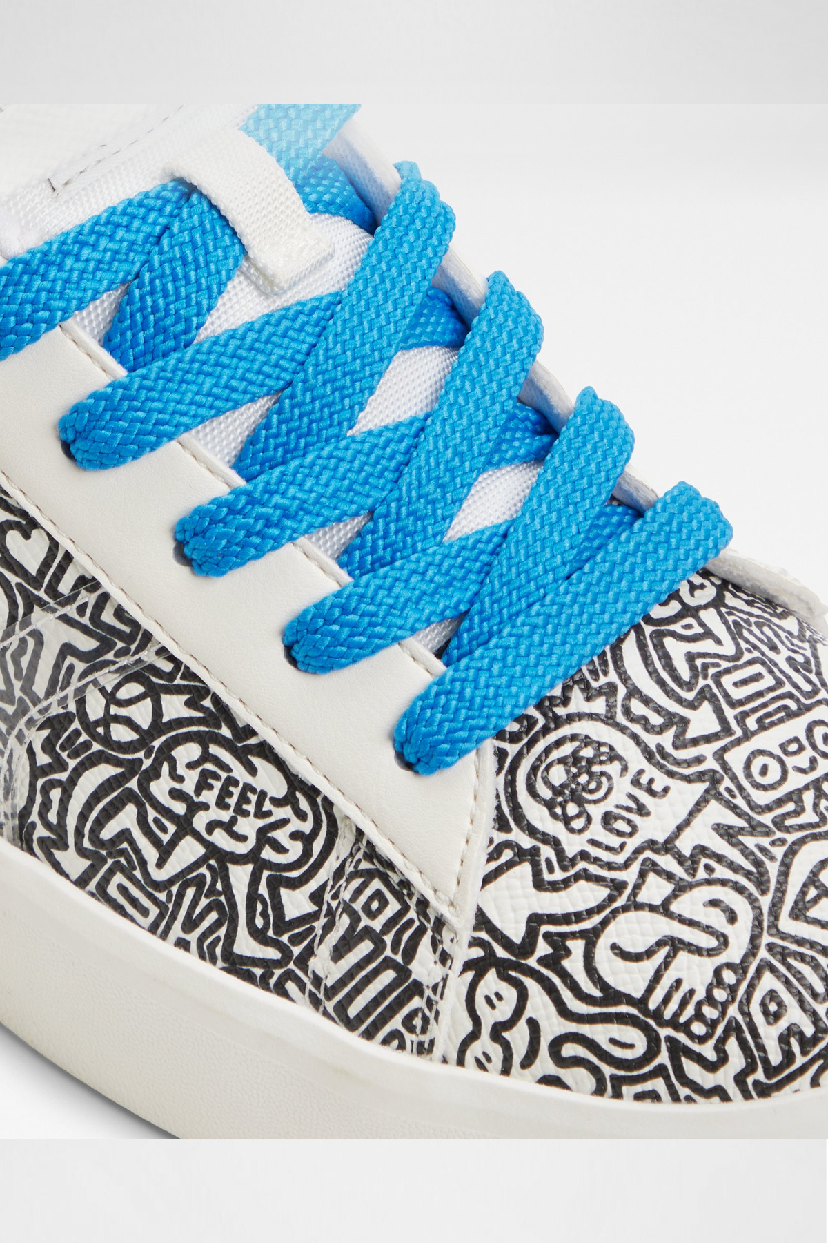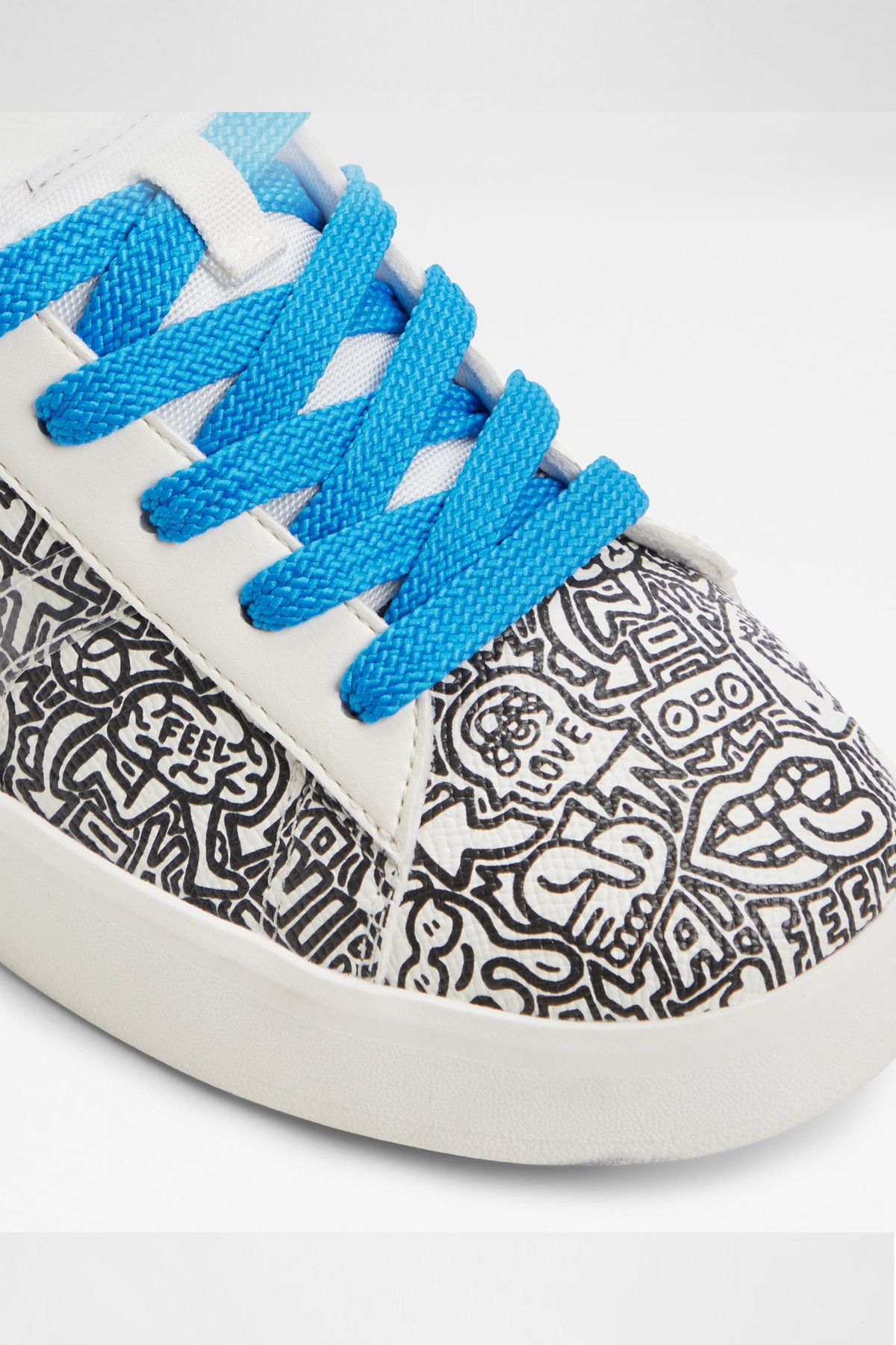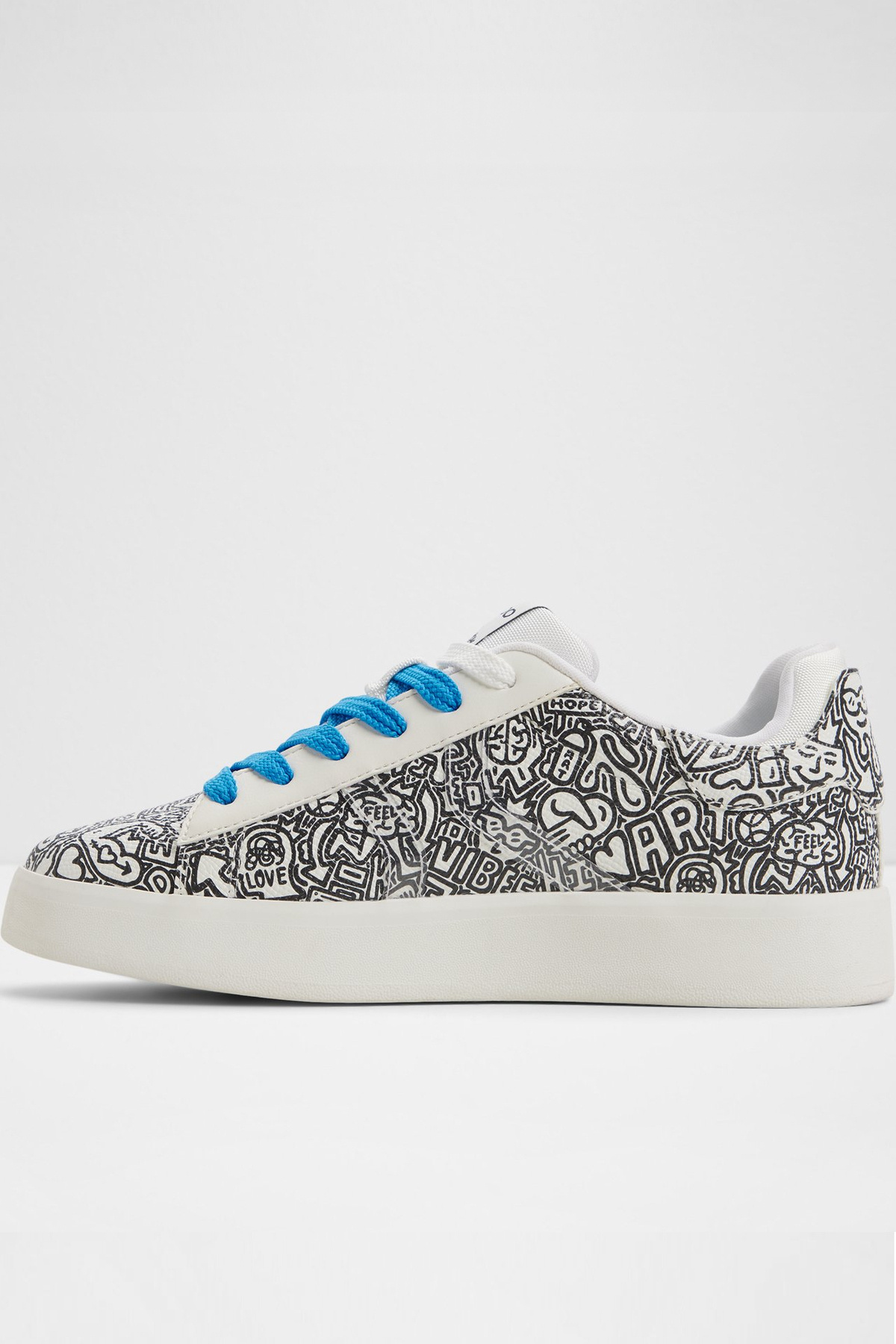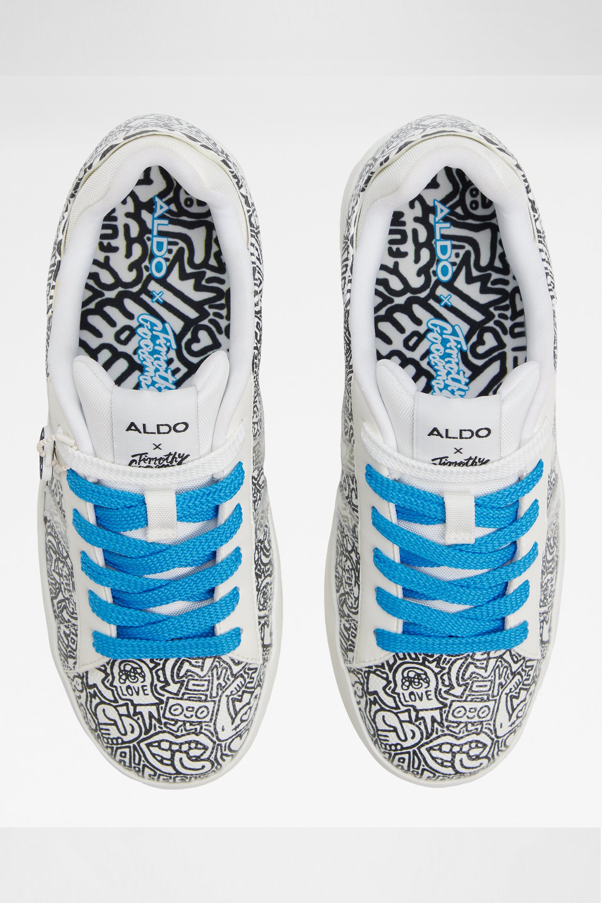 هنرمند تیموتی گودمن سبک طراحی گرافیکی متمایز خود را به این کفشهای ورزشی سفید پوشیدنی آورده است.