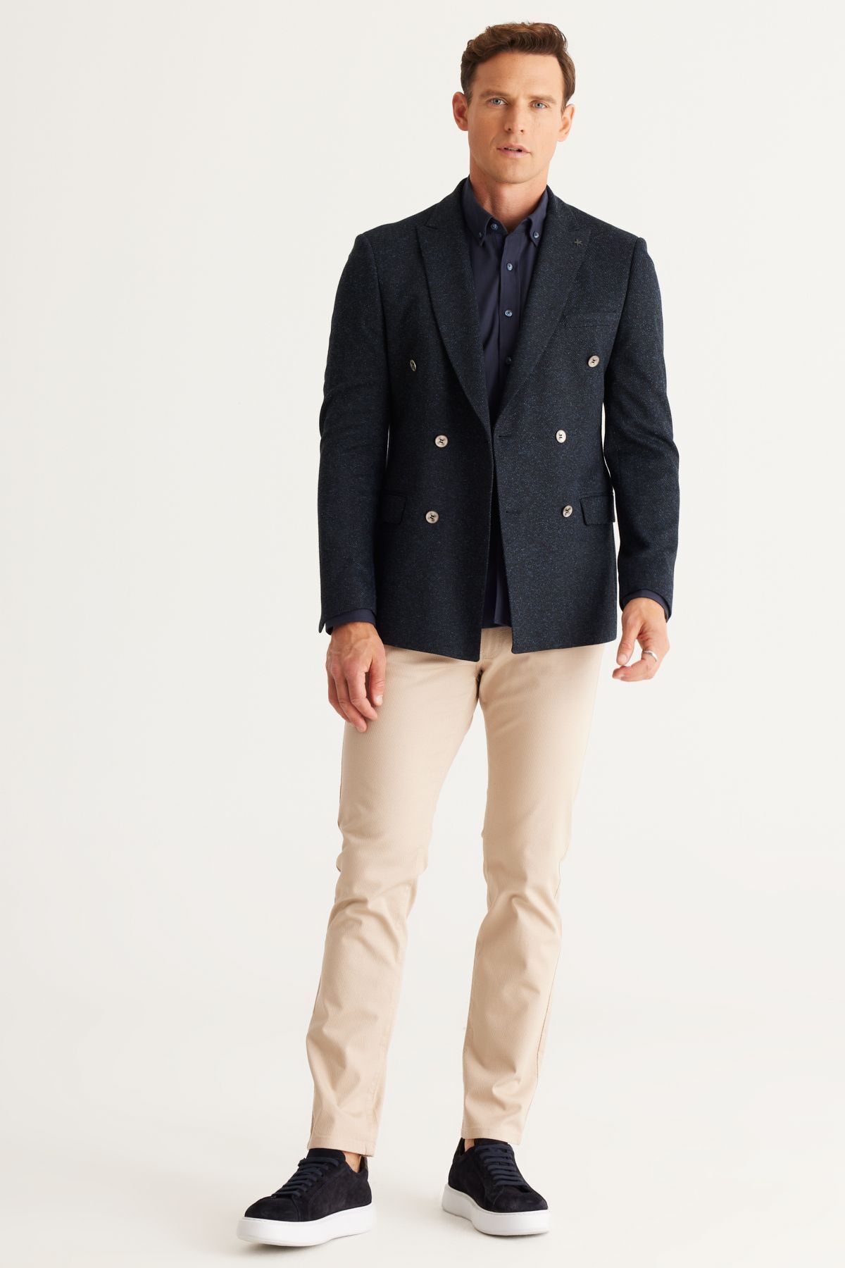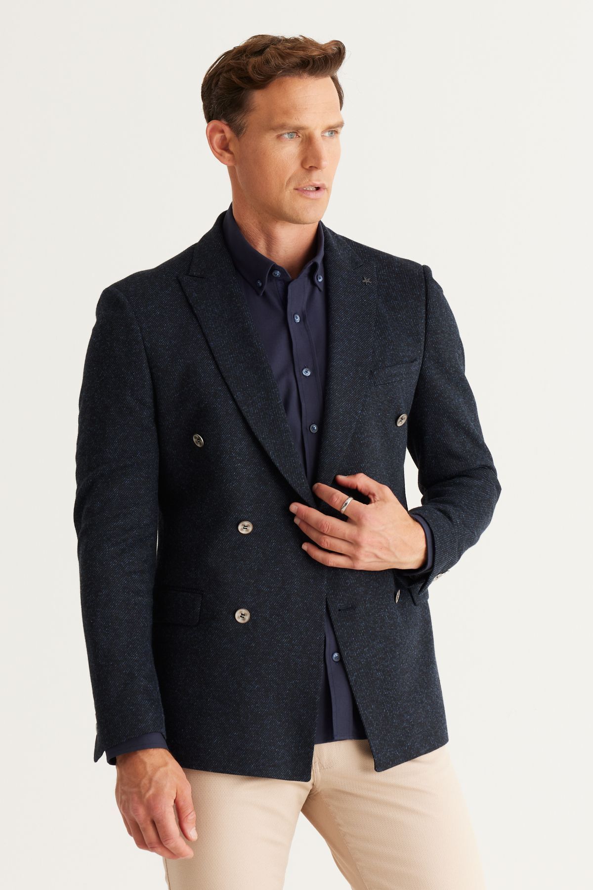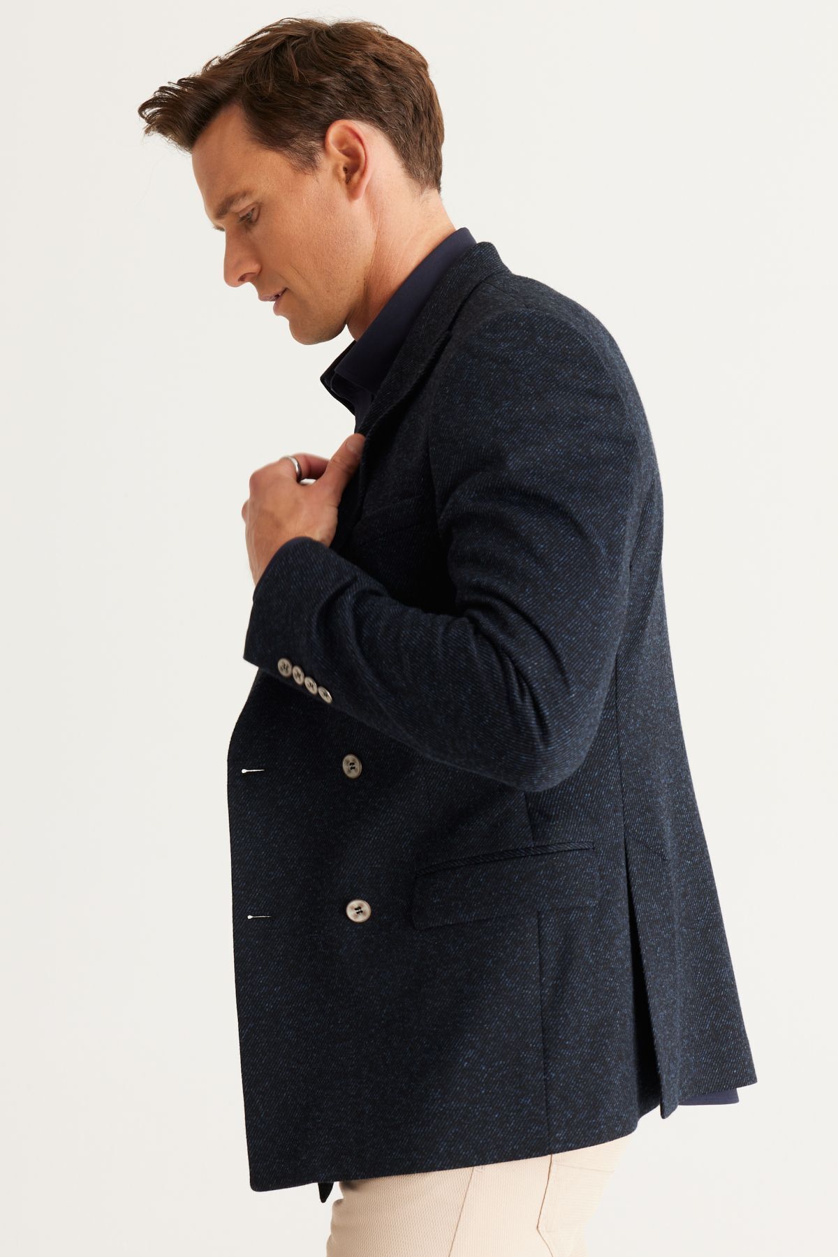 خرید اینترنتی کاپشن مردانه پشمی سرمهای، باریک، برشدار، یقه برگردان، طرحدار، دو دکمه برند آلتین ییدلیز کلاسیکس Altınyıldız Classics اورجینال از Altınyıldız Classics نمایندگی ترکیه
