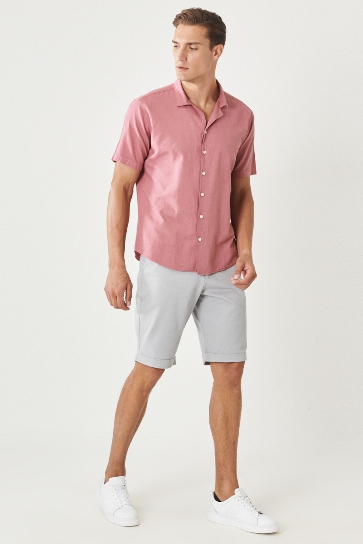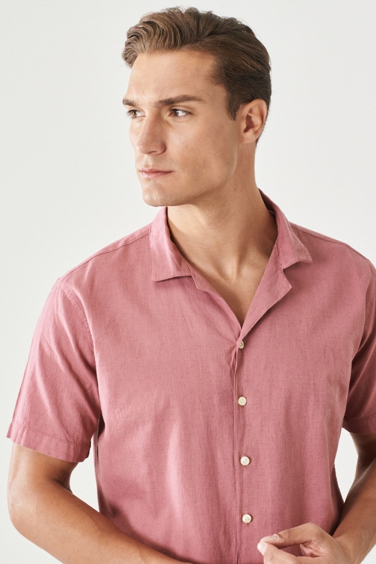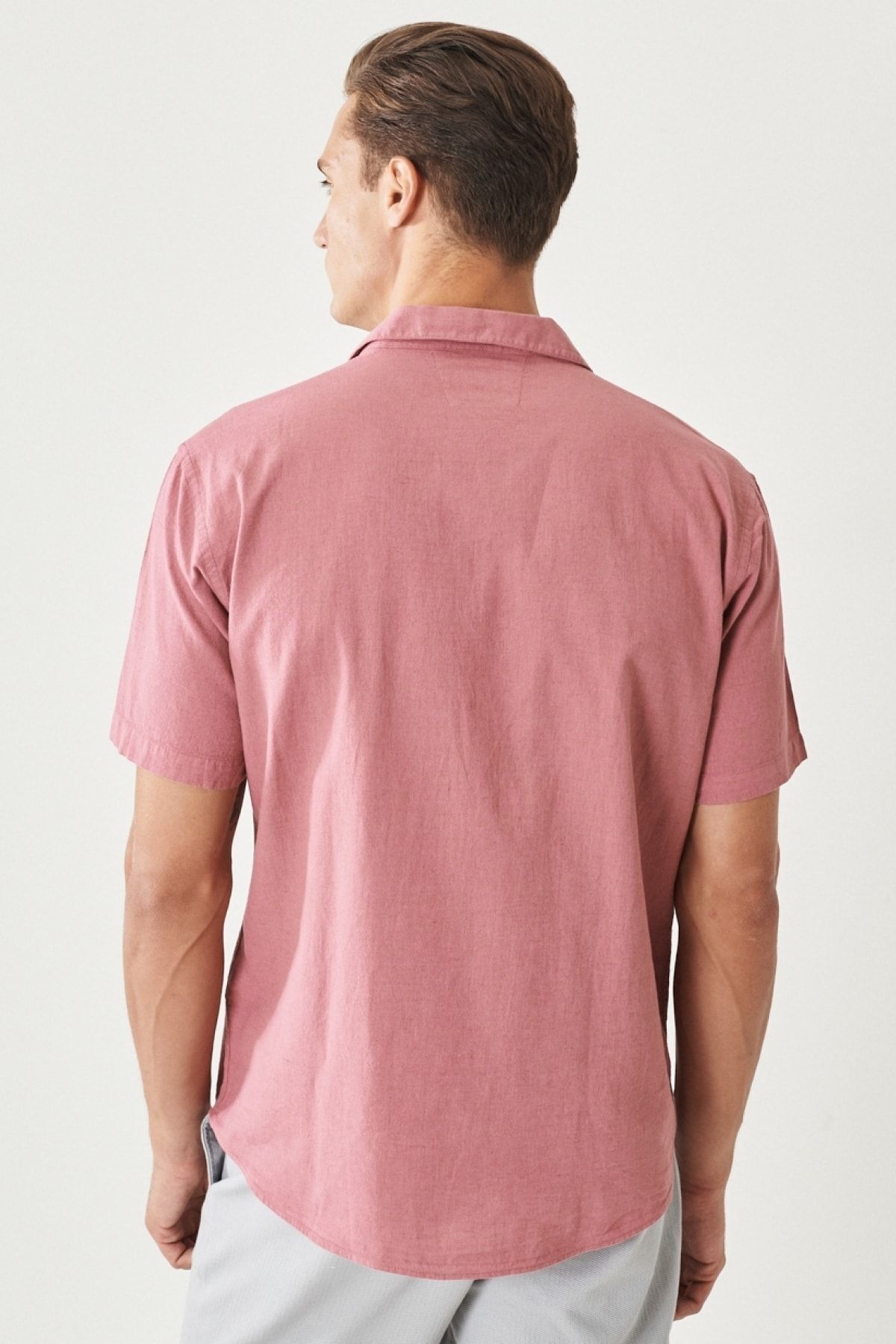 خرید اینترنتی پیراهن مردانه آستین کوتاه یقه گرد طرح کتان زرشکی، یقه گرد تک رنگ، مناسب برای راحتی و تناسب اندام برند آلتین ییدلیز کلاسیکس Altınyıldız Classics اورجینال از Altınyıldız Classics نمایندگی ترکیه