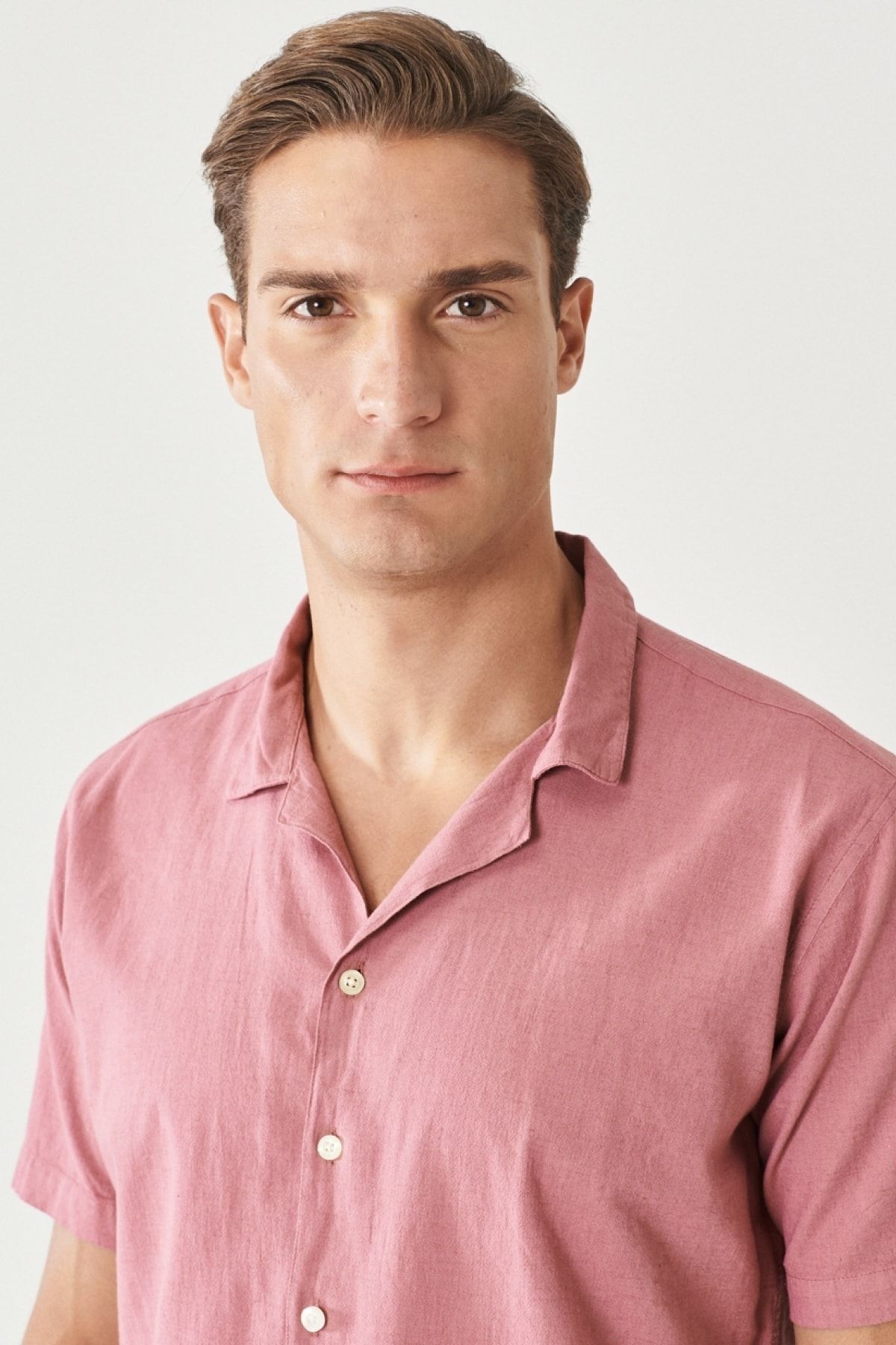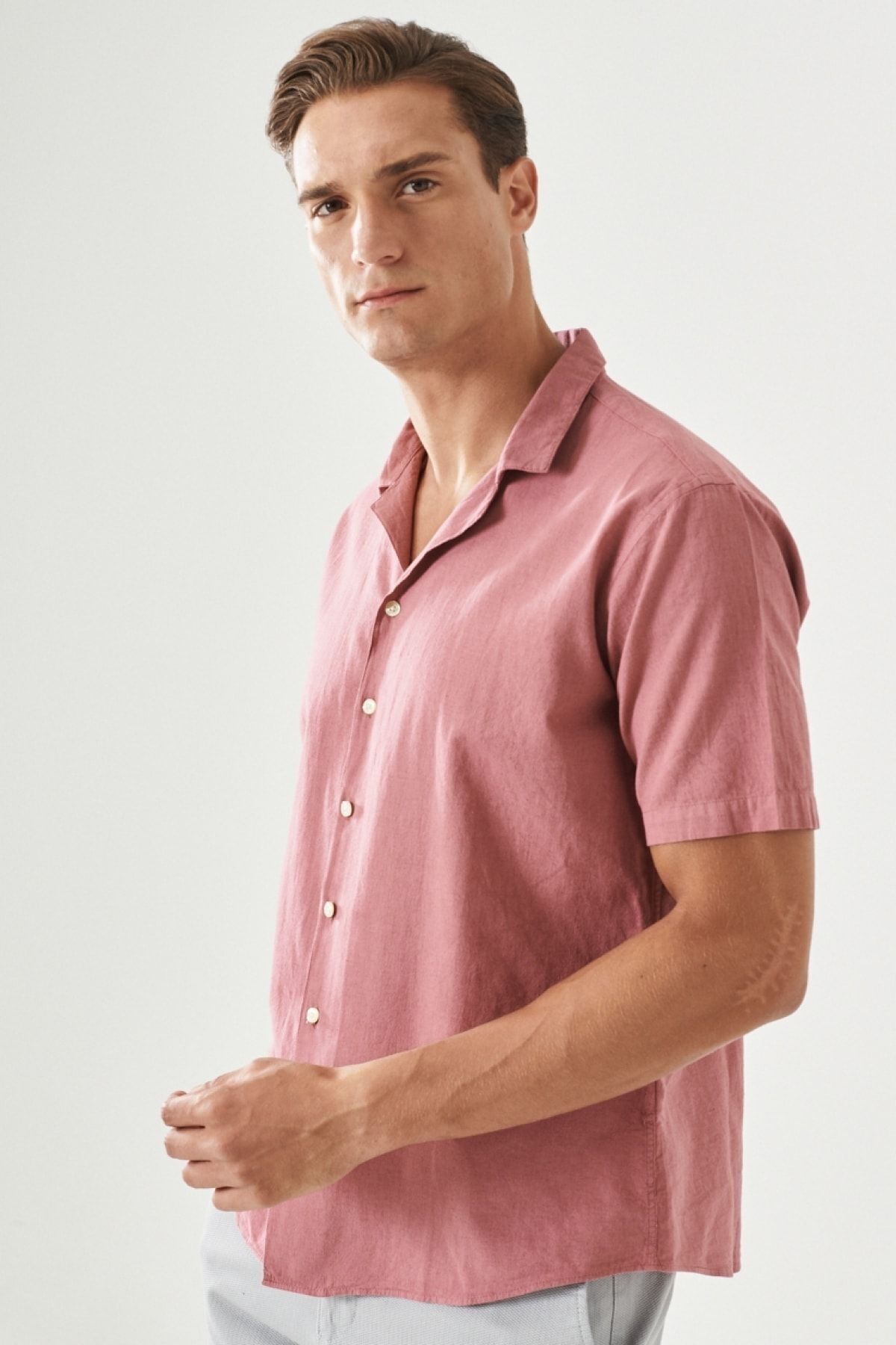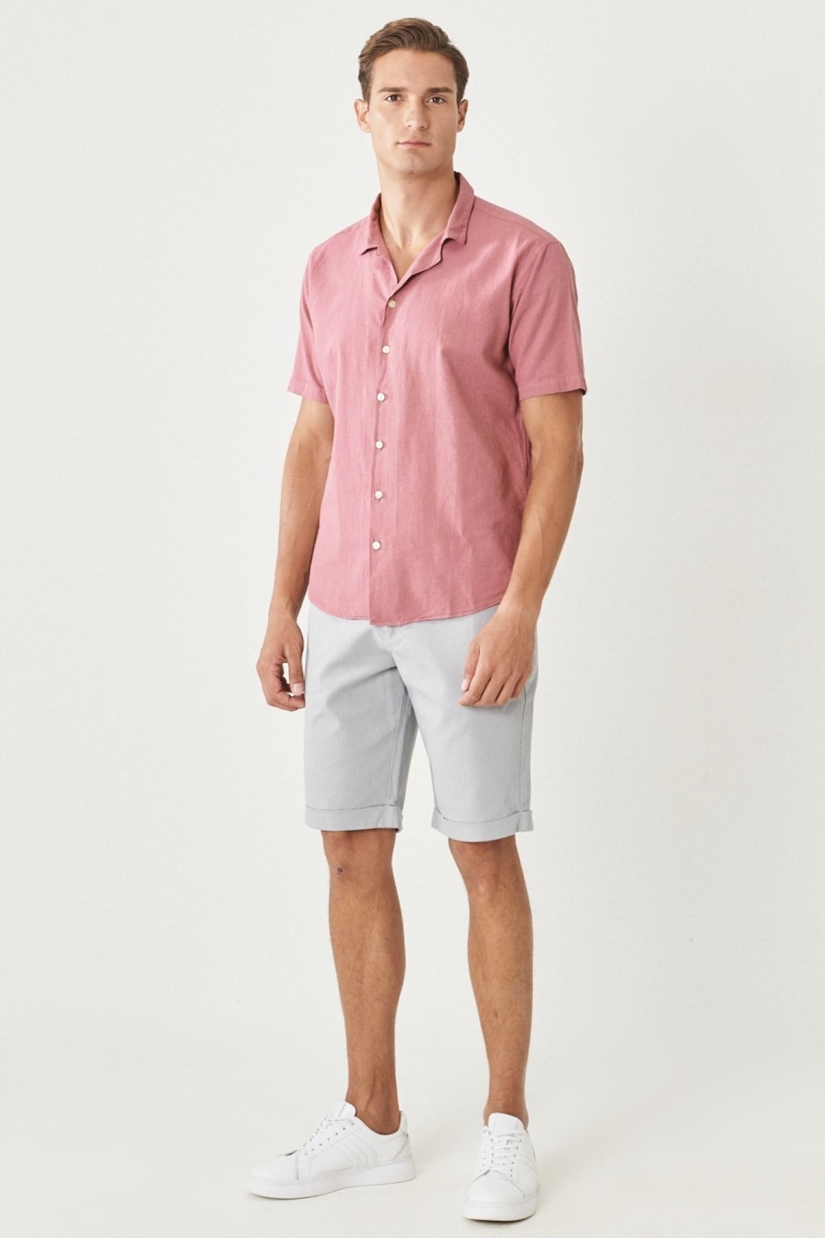 خرید اینترنتی پیراهن مردانه آستین کوتاه یقه گرد طرح کتان زرشکی، یقه گرد تک رنگ، مناسب برای راحتی و تناسب اندام برند آلتین ییدلیز کلاسیکس Altınyıldız Classics اورجینال از Altınyıldız Classics نمایندگی ترکیه