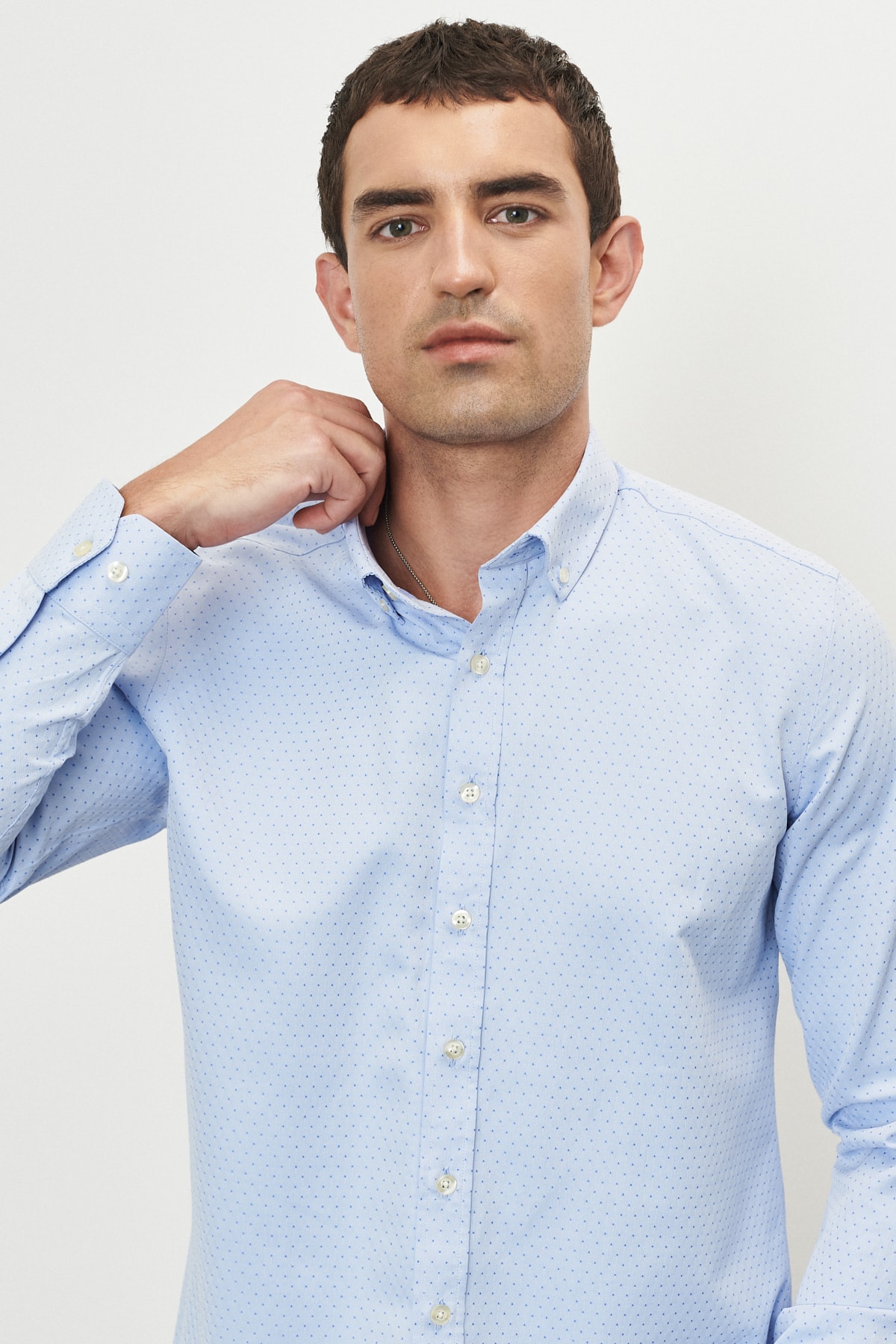 خرید اینترنتی پیراهن بافتدار مردانه یقه دکمهدار اسلیم فیت آبی روشن برند آلتین ییدلیز کلاسیکس Altınyıldız Classics اورجینال از Altınyıldız Classics نمایندگی ترکیه