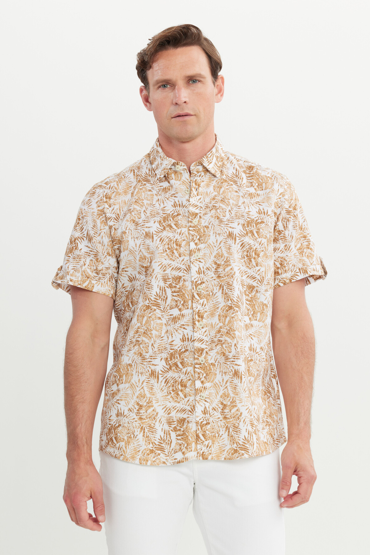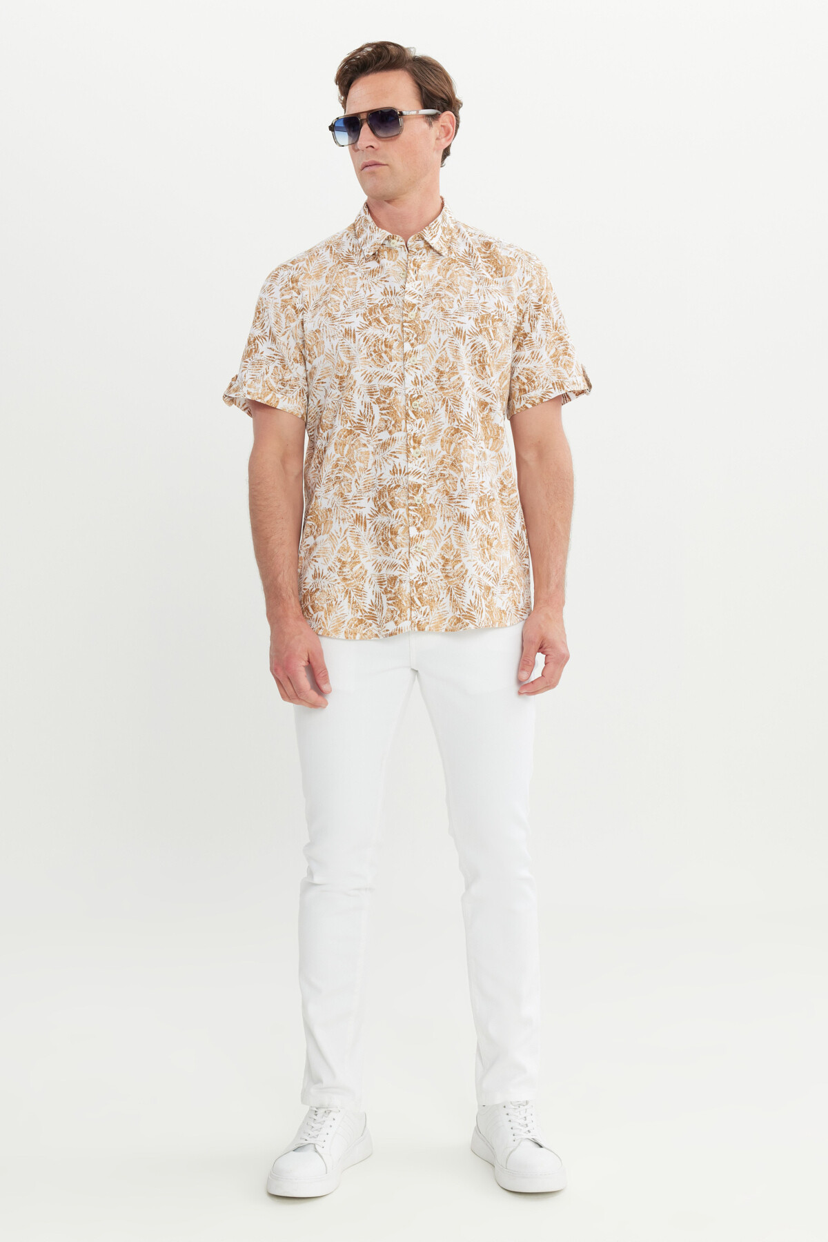 ۱۰۰٪ پنبه، سفید-خاکی چاپ شده، فیت باریک، آستین کوتاه، یقه دکمه مخفی، کالکشن تابستانی، مدل کژوال، بدون جیب، پیراهن آستین کوتاه چاپی نخی یقه دکمه مخفی Altınyıldız Classics Limited، سایز محصول: L، اطلاعات مدل: قد: ۱.۸۹ سانتیمتر، وزن: ۸۰ کیلوگرم، کد محصول: 4A2023200108BYH.