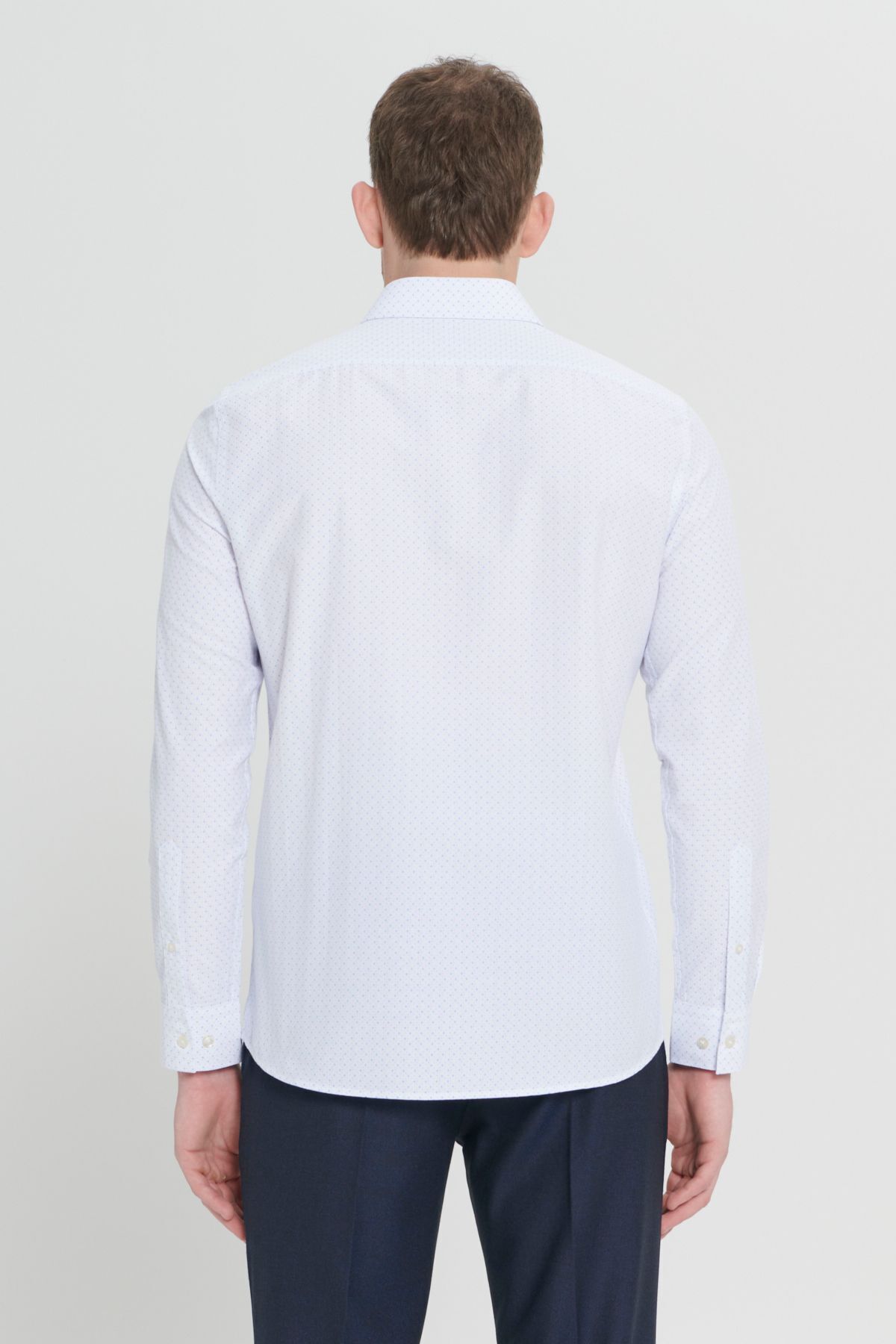 خرید اینترنتی پیراهن نخی بافتدار مردانه سفید-آبی اسلیم فیت یقه کلاسیک برند آلتین ییدلیز کلاسیکس Altınyıldız Classics اورجینال از Altınyıldız Classics نمایندگی و فروشگاه معتبر ترکیه