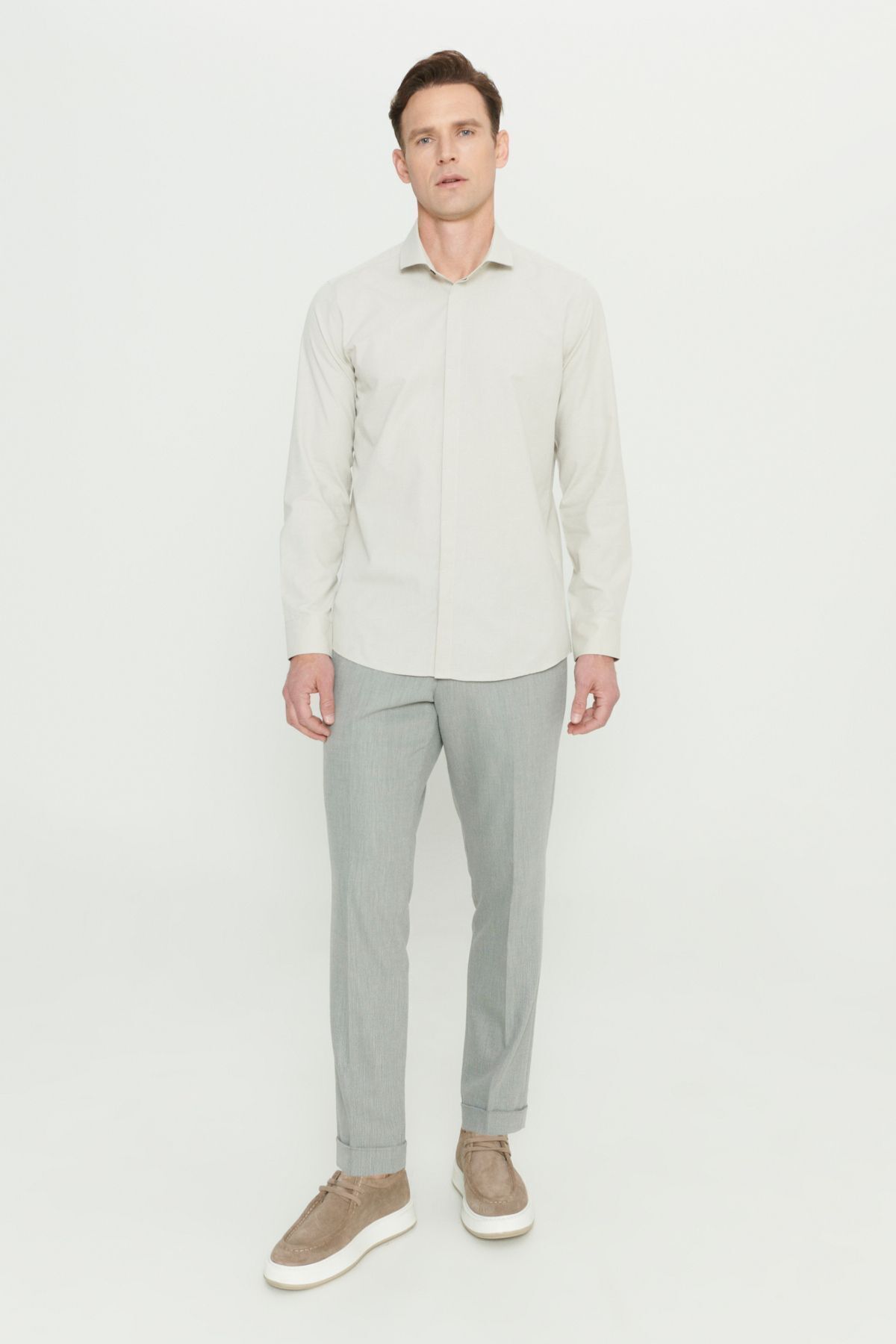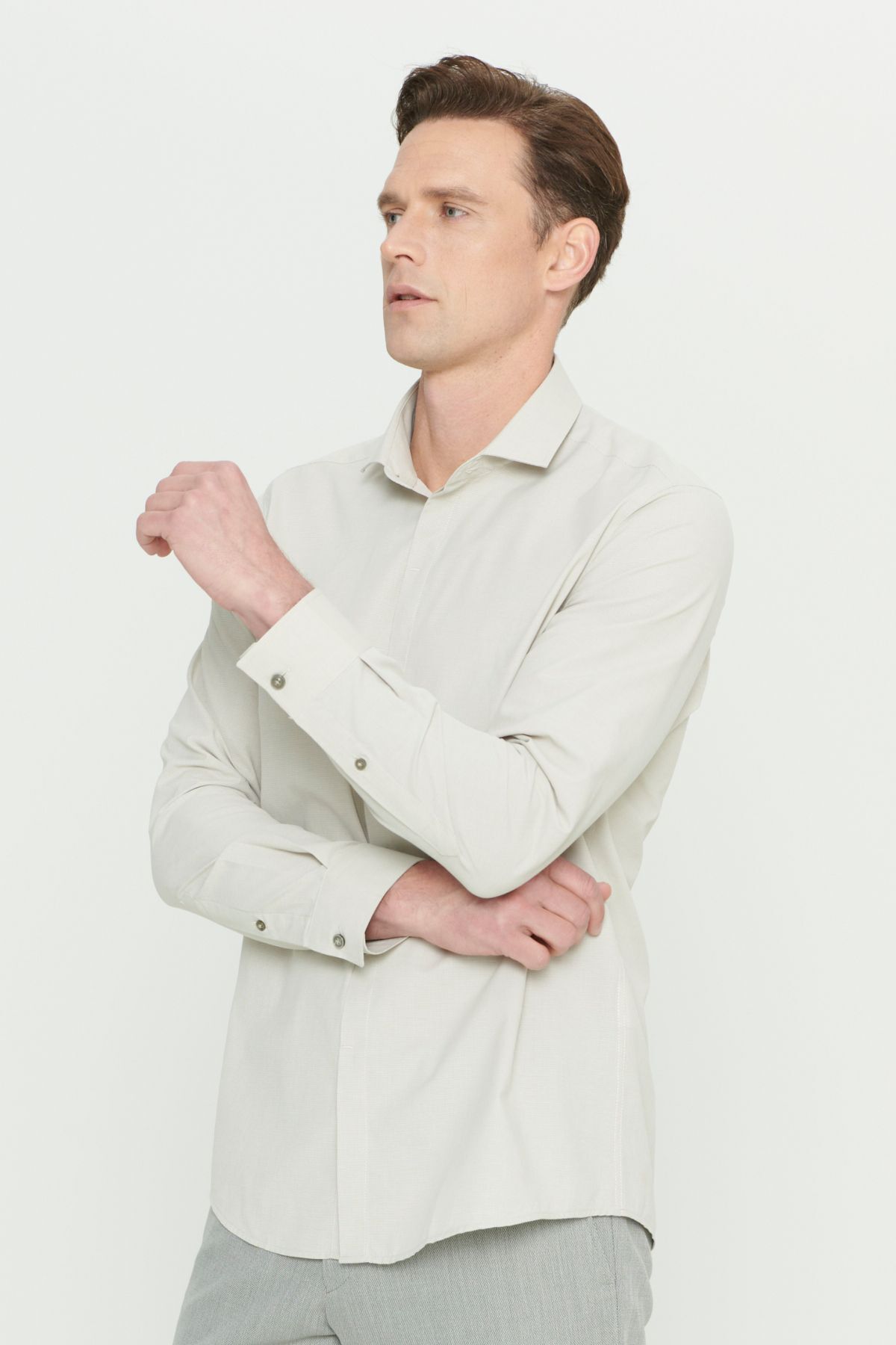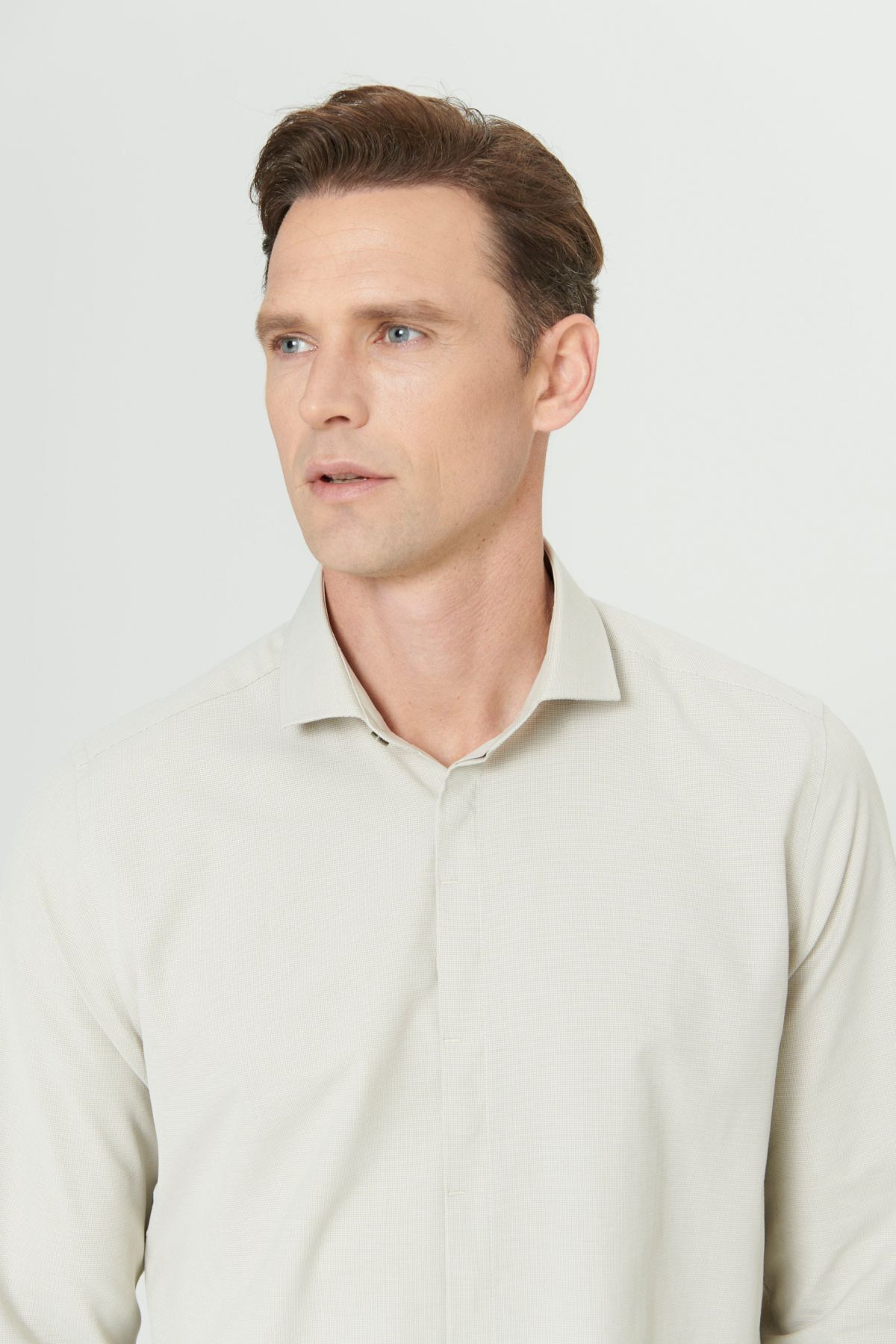 خرید اینترنتی پیراهن بافتدار مردانه نخی خاکی روشن، یقه کلاسیک و اسلیم فیت برند آلتین ییدلیز کلاسیکس Altınyıldız Classics اورجینال از Altınyıldız Classics نمایندگی ترکیه