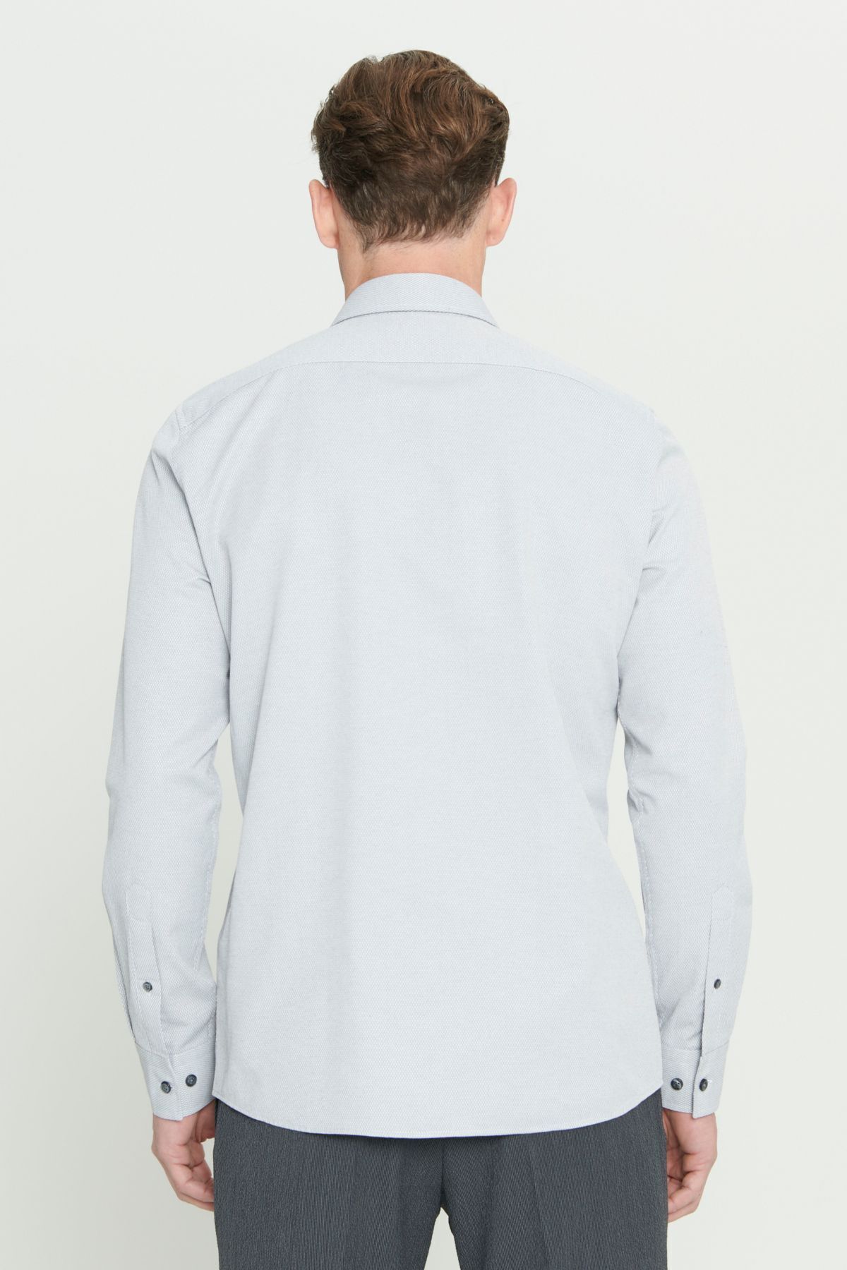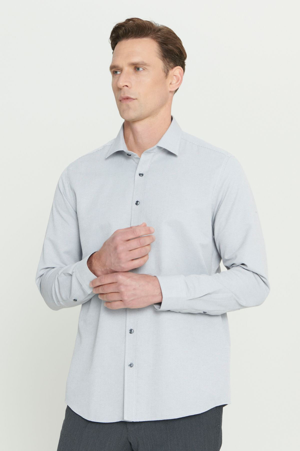خرید اینترنتی پیراهن مردانه خاکستری Easy-Iron نخی اسلیم فیت دکمهدار با طرح برجسته برند آلتین ییدلیز کلاسیکس Altınyıldız Classics اورجینال از Altınyıldız Classics نمایندگی ترکیه