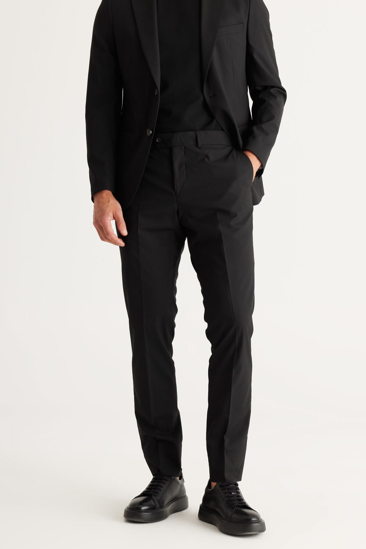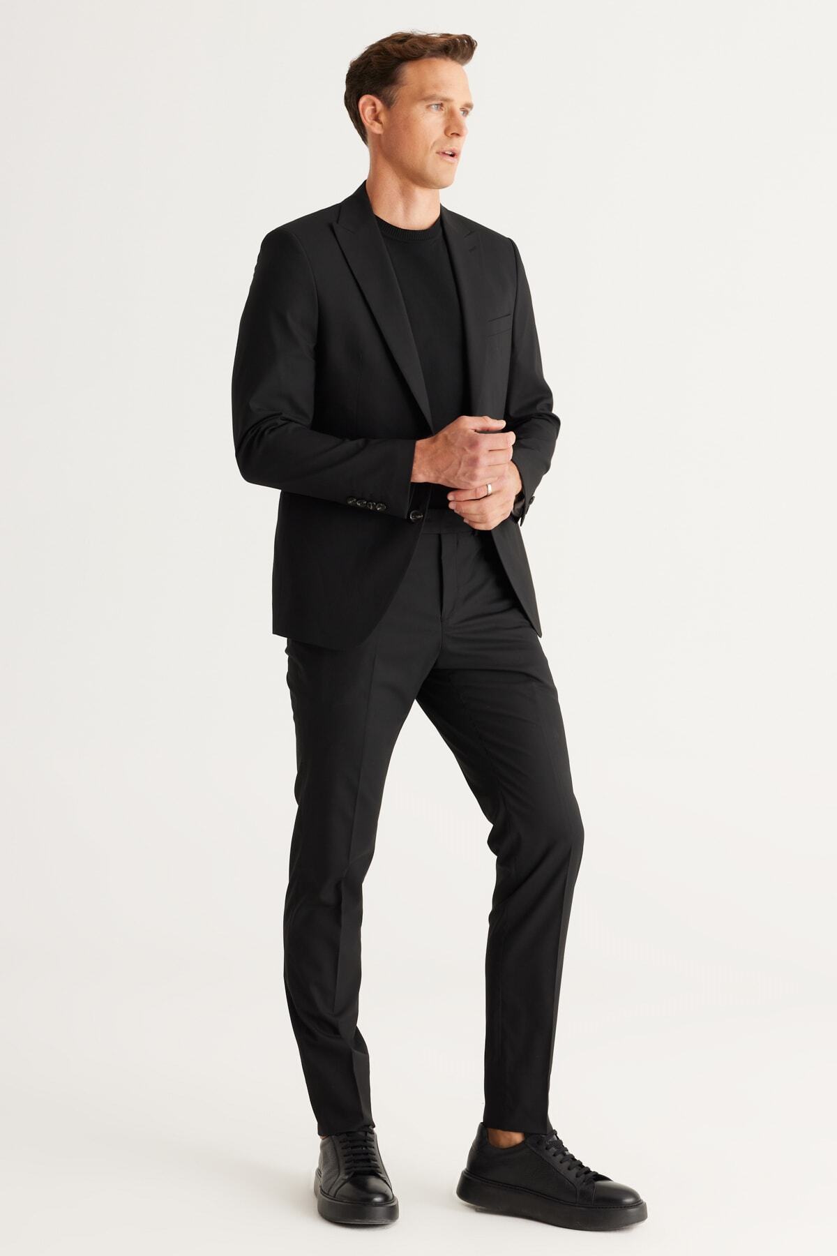 خرید اینترنتی کت و شلوار مردانه مشکی فوق العاده باریک، یقه برگردان، پشمی، مقاوم در برابر آب و لکه، طرح نانو برند آلتین ییدلیز کلاسیکس Altınyıldız Classics اورجینال از Altınyıldız Classics نمایندگی ترکیه