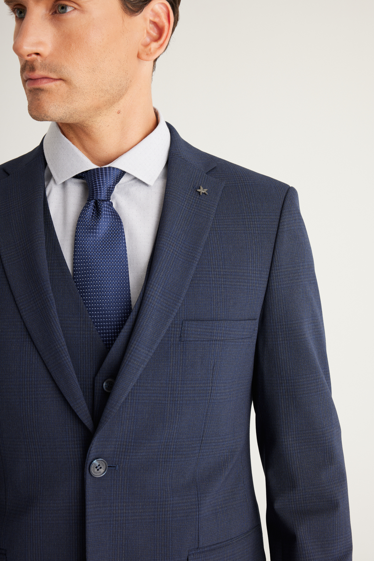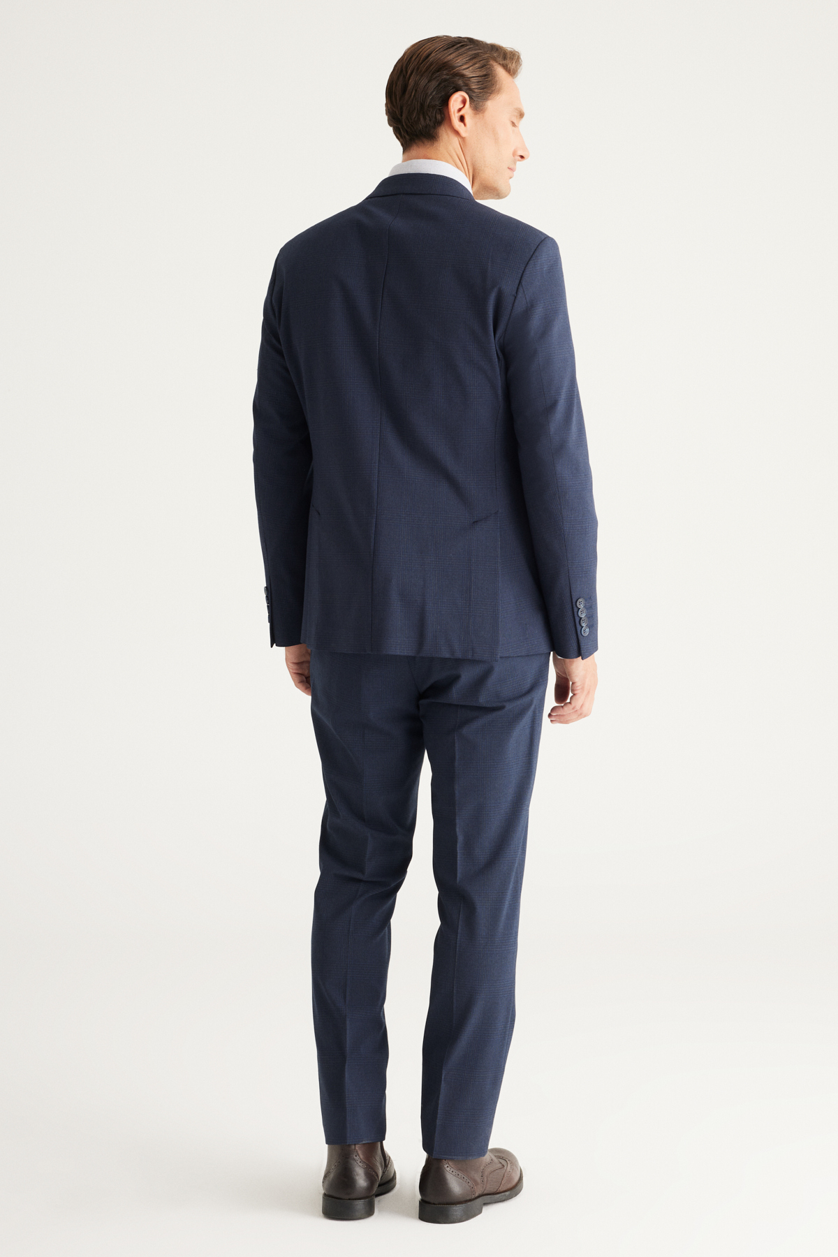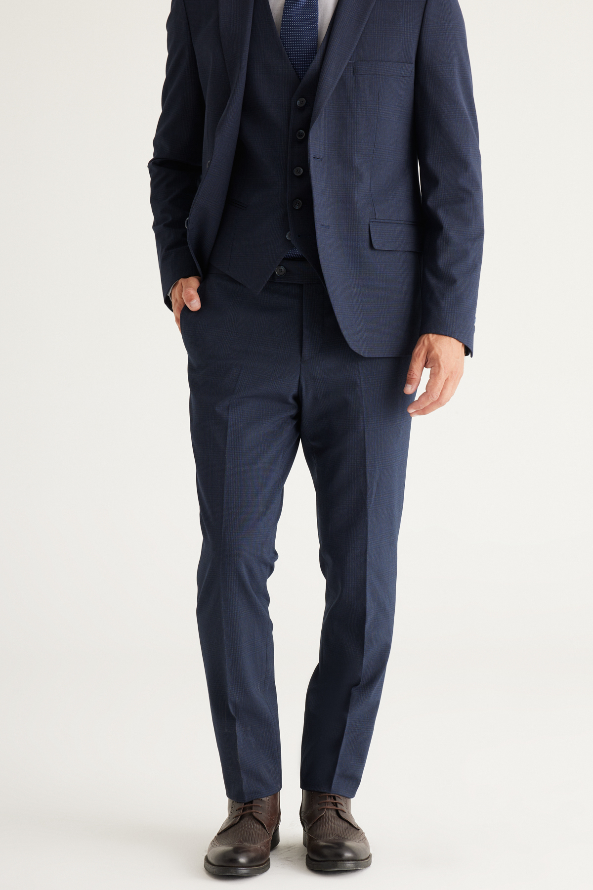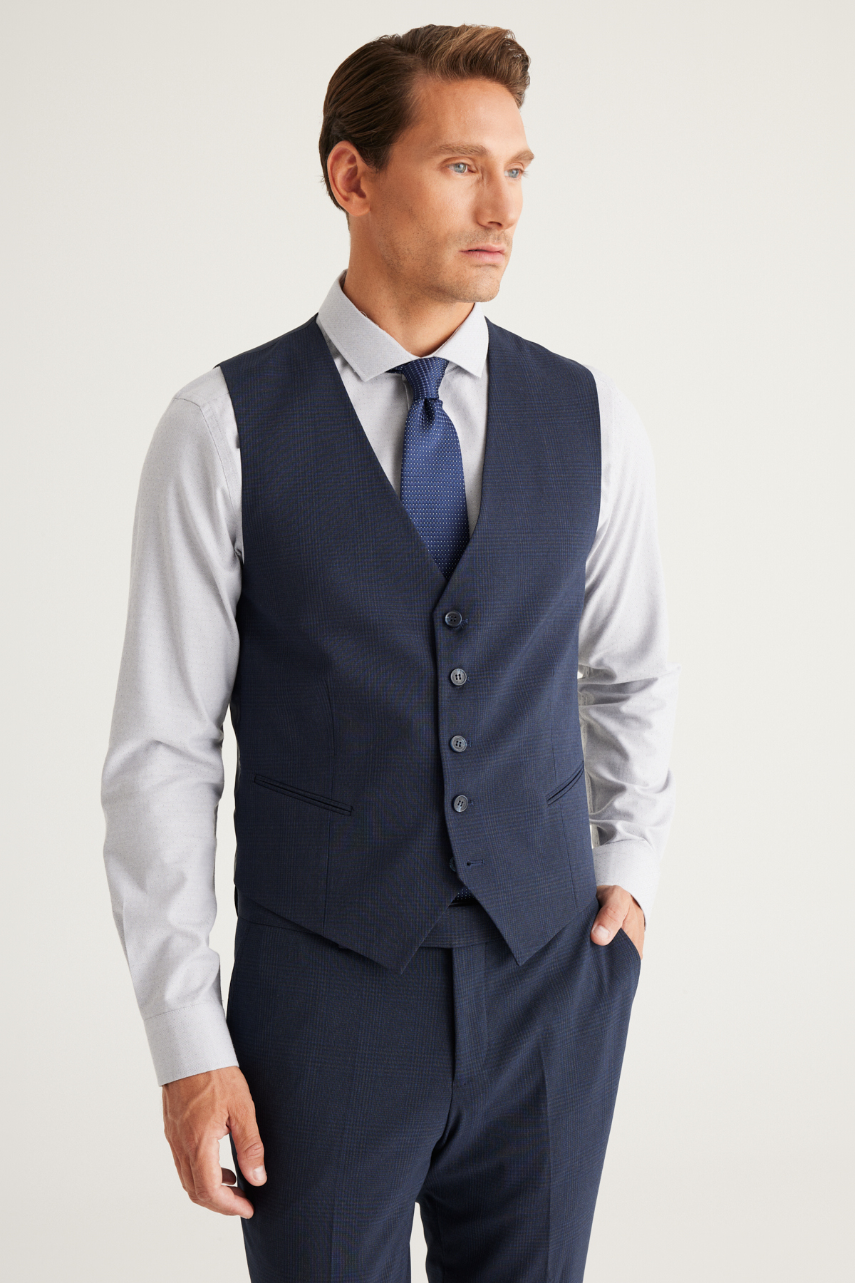 خرید اینترنتی کت و شلوار چهارخانه تک رنگ سرمهای تیره Recycle مردانه، یقه گرد باریک و برش باریک، به همراه جلیقه برند آلتین ییدلیز کلاسیکس Altınyıldız Classics اورجینال از Altınyıldız Classics نمایندگی ترکیه