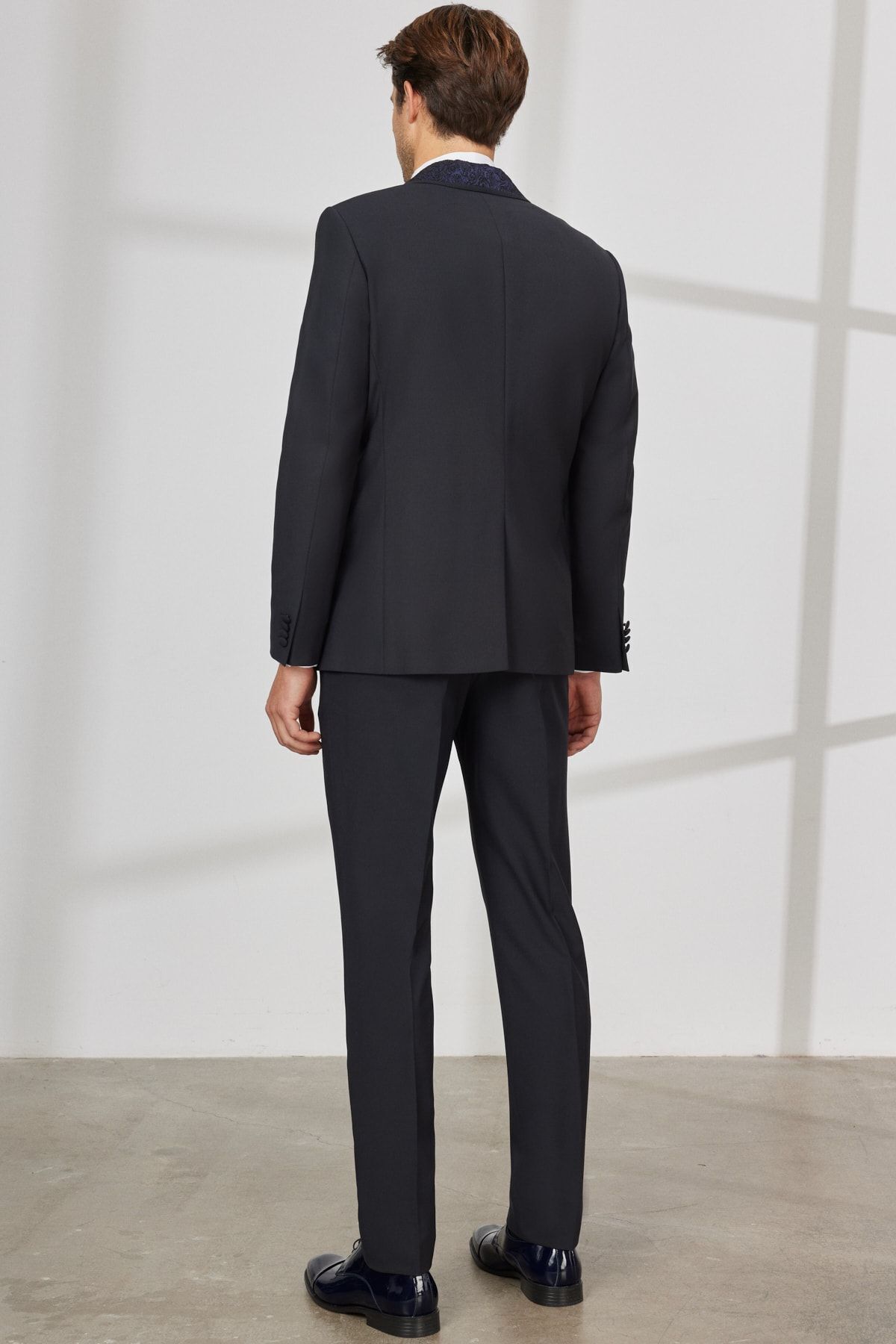 خرید اینترنتی کت و شلوار مردانه سرمهای، یقه شالی، باریک و جداشدنی، پشمی، یقه اسکی برند آلتین ییدلیز کلاسیکس Altınyıldız Classics اورجینال از Altınyıldız Classics نمایندگی ترکیه