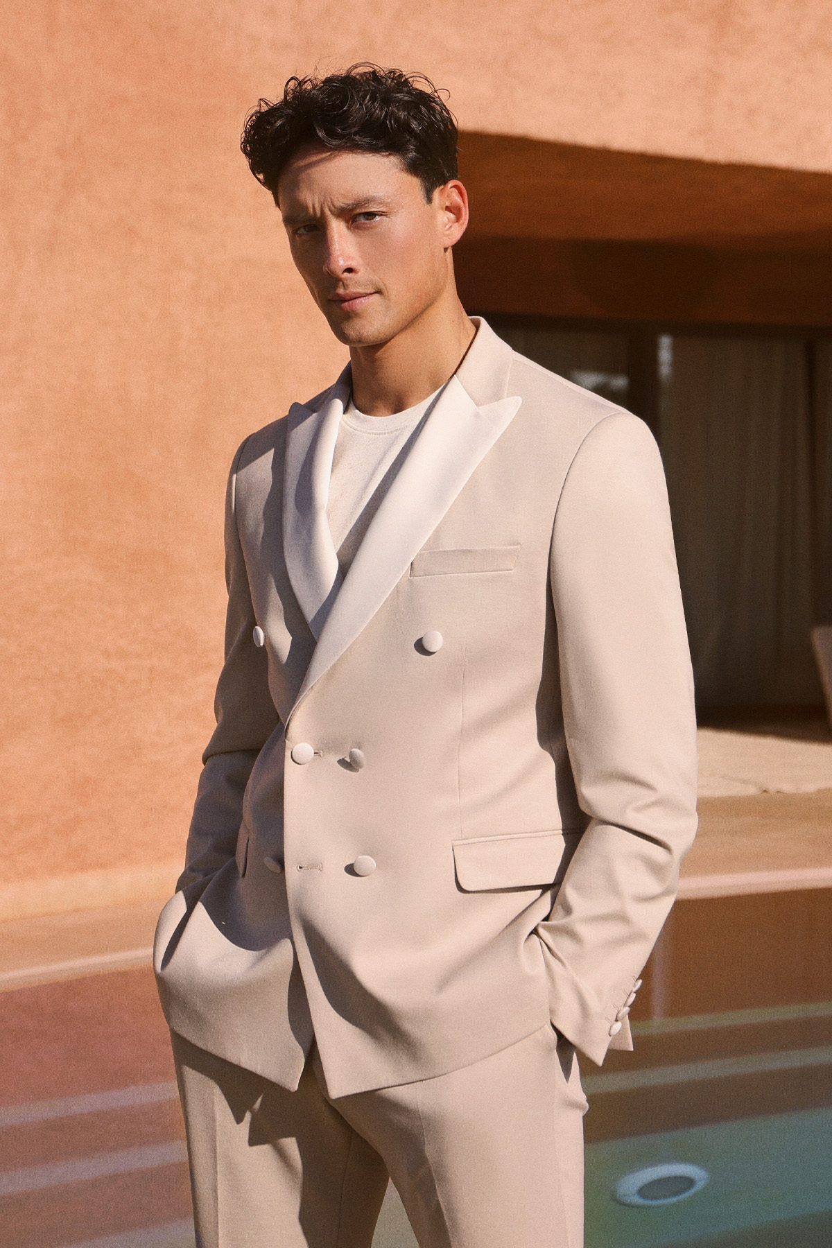 خرید اینترنتی کت و شلوار مردانه بافتنی یقه گرد باریک و برش باریک بژ برند آلتین ییدلیز کلاسیکس Altınyıldız Classics اورجینال از Altınyıldız Classics نمایندگی ترکیه