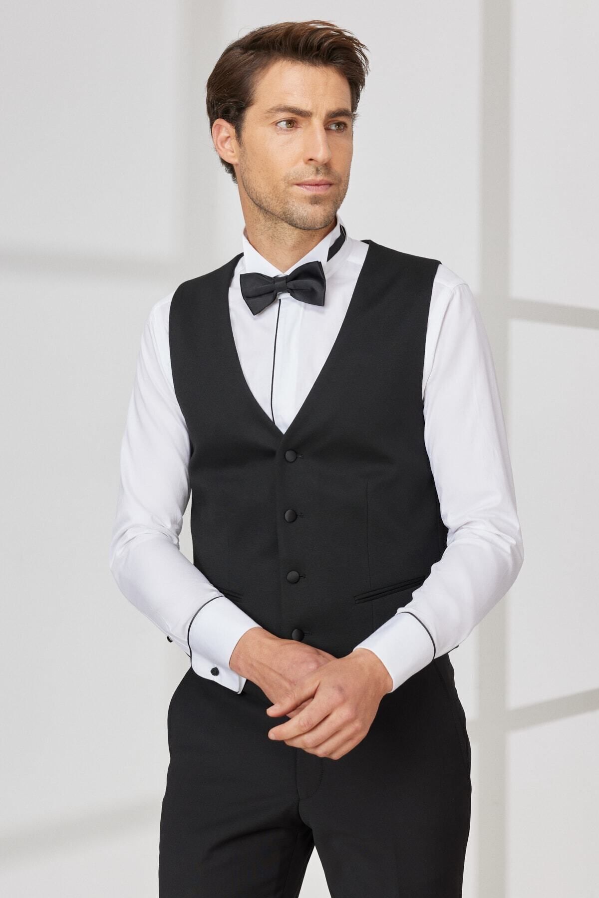 خرید اینترنتی جلیقه کلاسیک مردانه مشکی اسلیم فیت، یقه هفت باریک برند آلتین ییدلیز کلاسیکس Altınyıldız Classics اورجینال از Altınyıldız Classics نمایندگی ترکیه