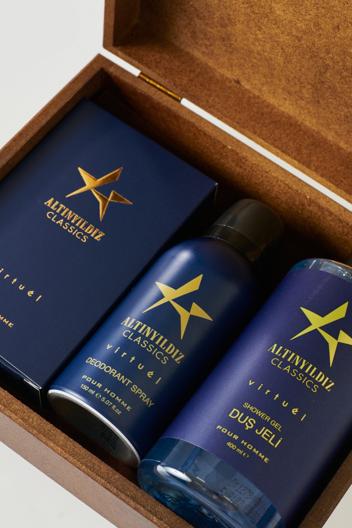 عطر و دئودورانت مردانه AC Virtual مدل 100ml EDP، ژل دوش 150ml، جعبه چوبی 400ml – ست هدیه داماد مردانه آلتین ییدلیز کلاسیکس | Altınyıldız Classics 4A4100000004-T