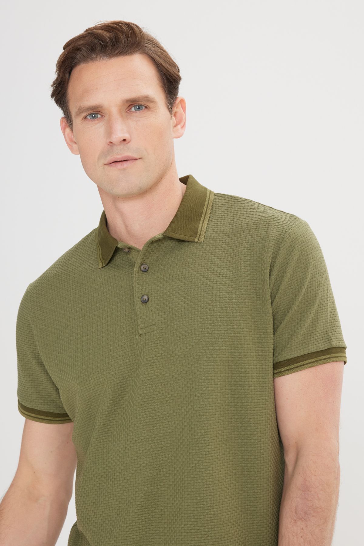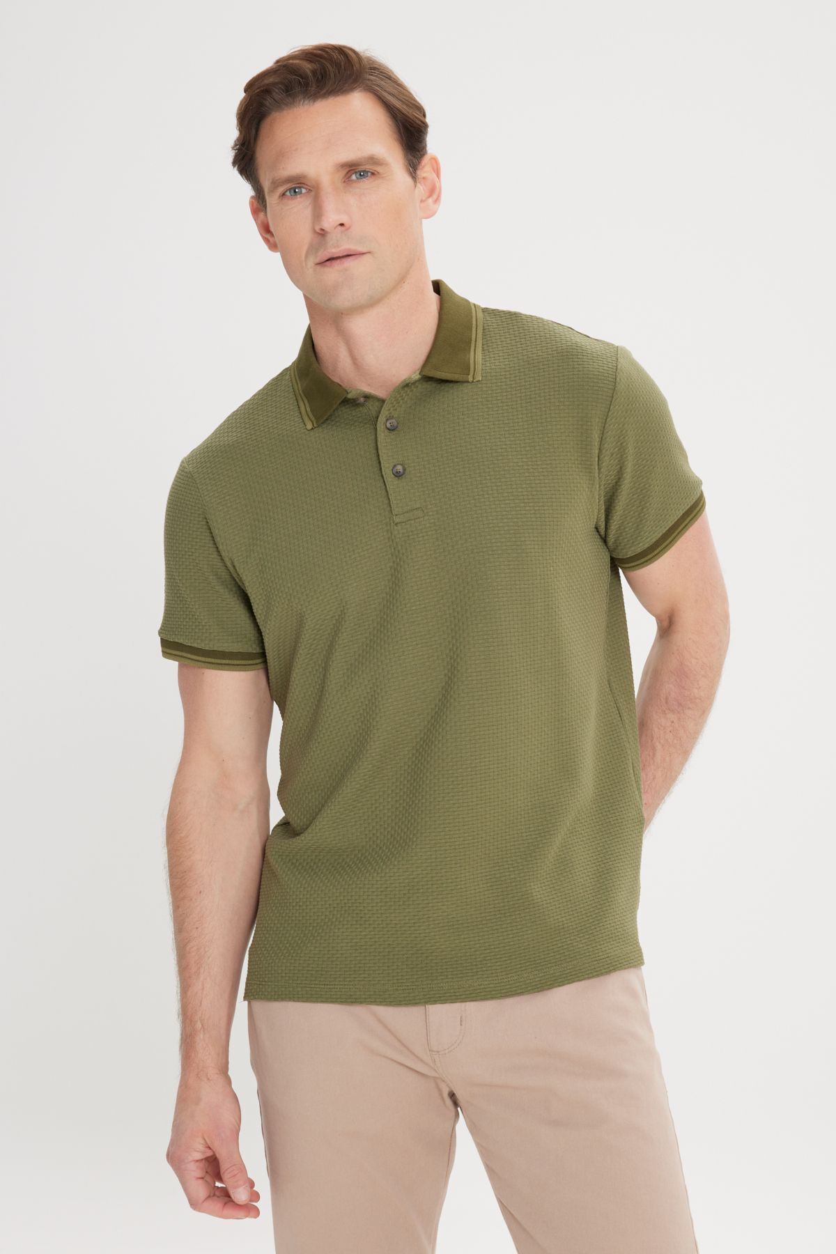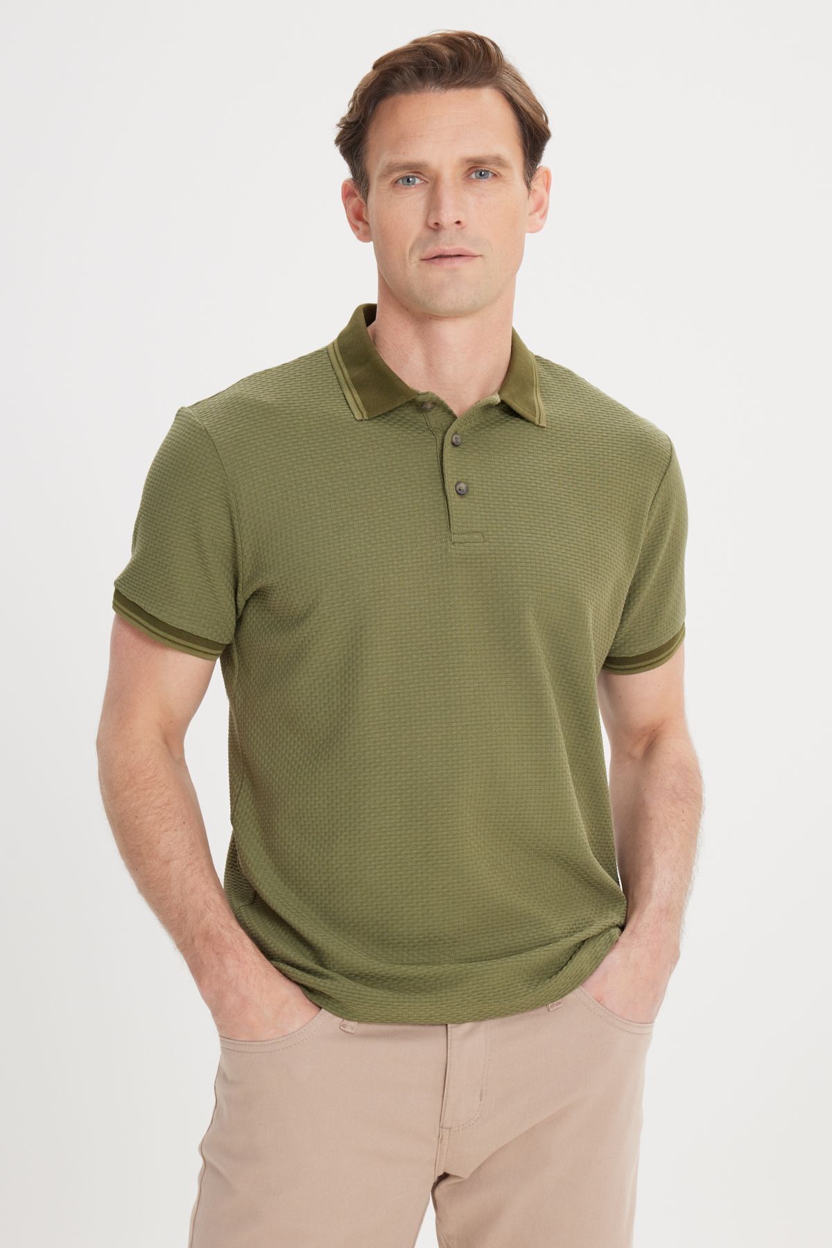 خرید اینترنتی تیشرت بافتدار یقه پولو ۱۰۰٪ پنبهای خاکی-اسلیم فیت مردانه برند آلتین ییدلیز کلاسیکس Altınyıldız Classics اورجینال از Altınyıldız Classics نمایندگی ترکیه