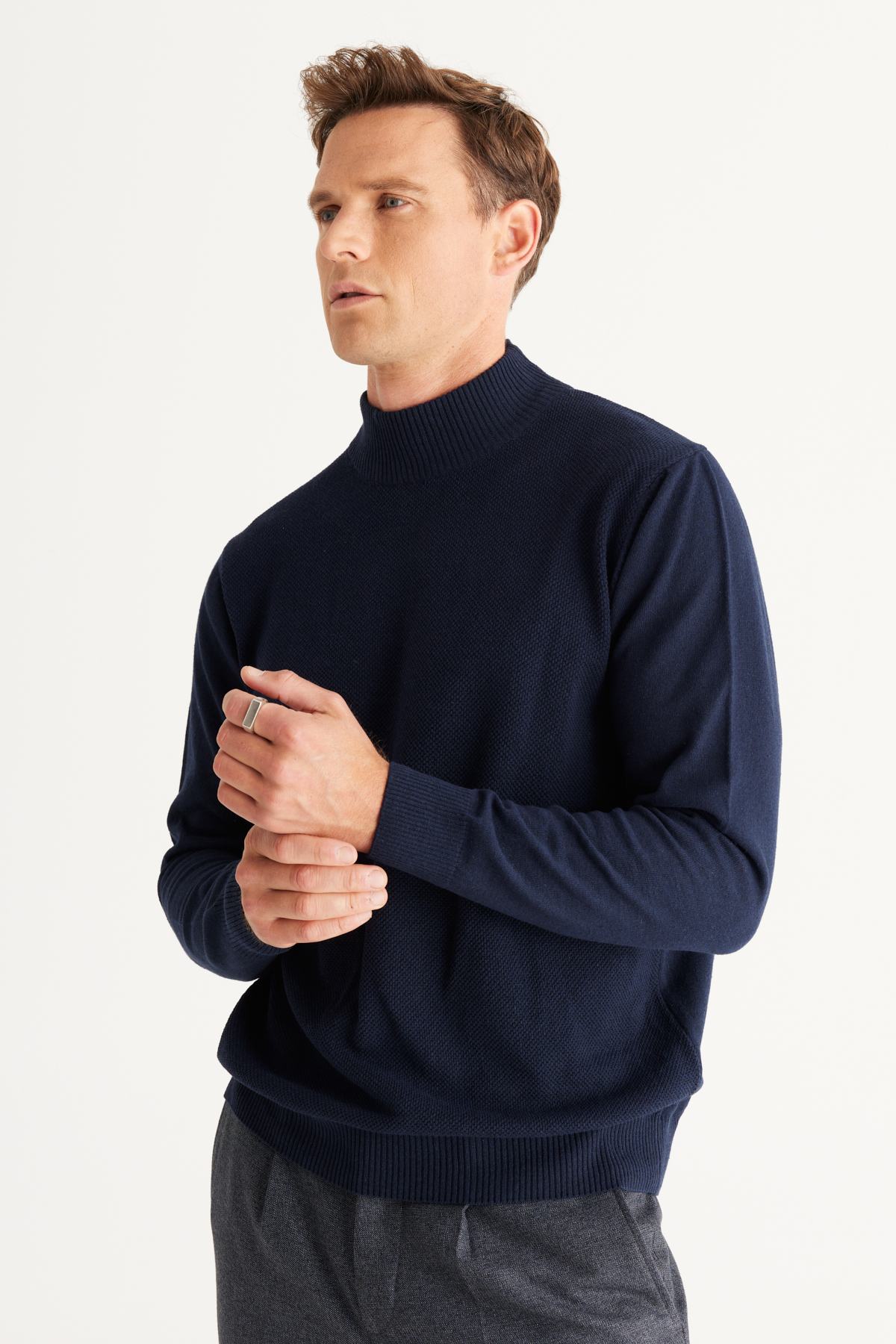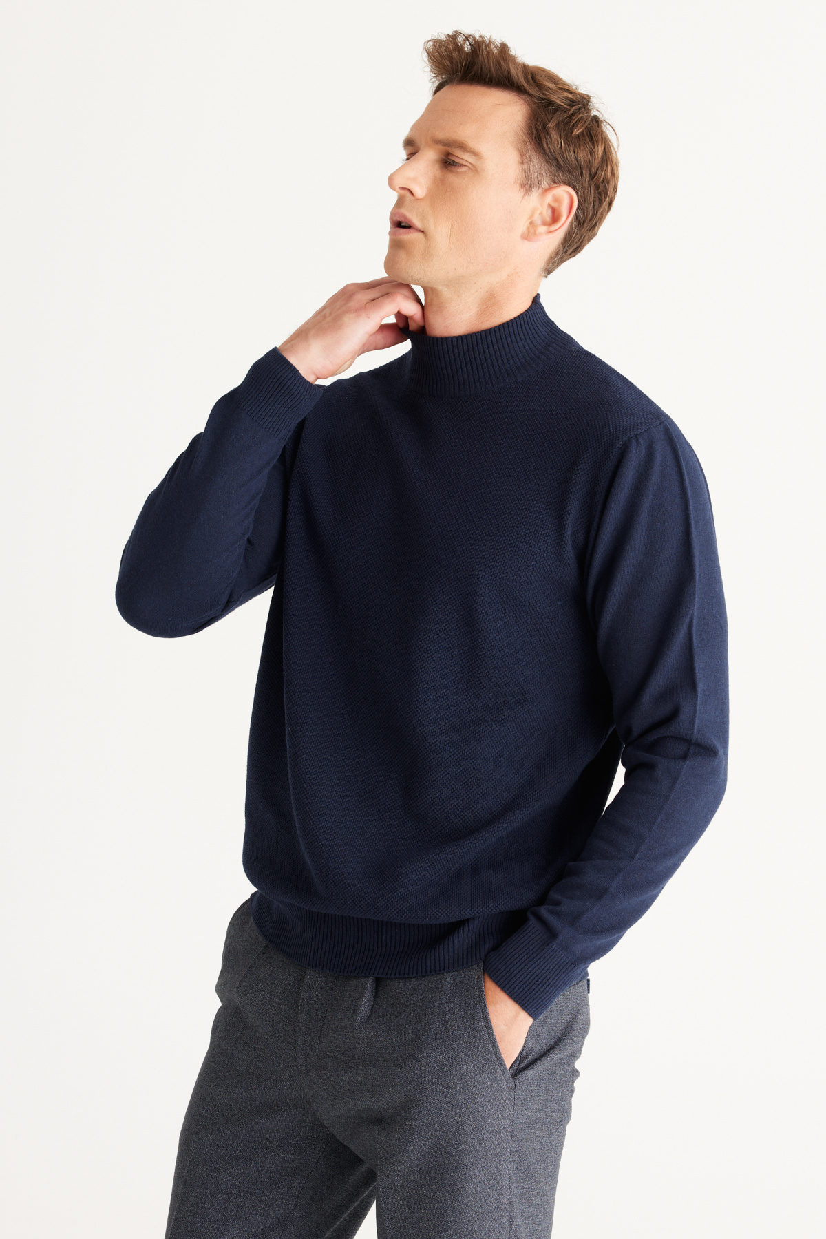 خرید اینترنتی ژاکت بافتنی نخی یقه اسکی مردانه مدل استاندارد فیت با برش معمولی سرمهای برند آلتین ییدلیز کلاسیکس Altınyıldız Classics اورجینال از Altınyıldız Classics نمایندگی ترکیه