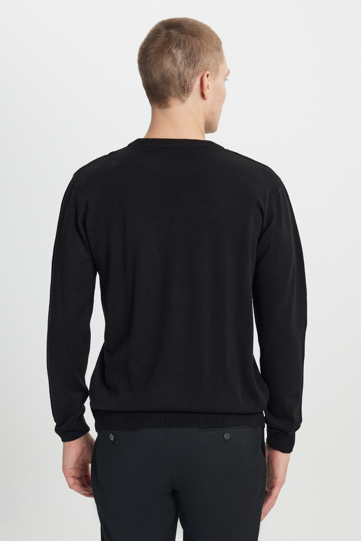 خرید اینترنتی پلیور بافتنی مردانه یقه گرد طرحدار مشکی استاندارد فیت، جنس پارچه بدون پرز برند آلتین ییدلیز کلاسیکس Altınyıldız Classics اورجینال از Altınyıldız Classics نمایندگی و فروشگاه معتبر ترکیه