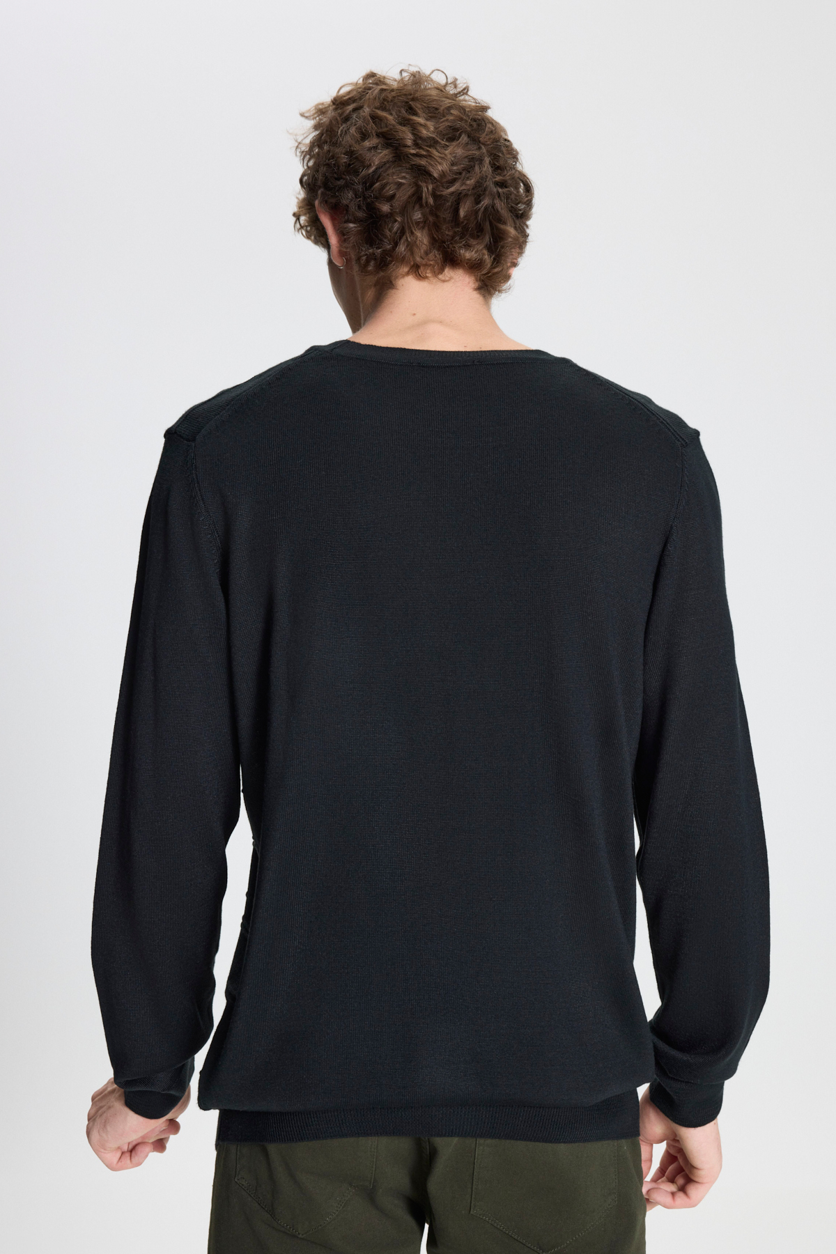 خرید اینترنتی ژاکت بافتنی مردانه پشمی مشکی، برش معمولی، یقه گرد برند آلتین ییدلیز کلاسیکس Altınyıldız Classics اورجینال از Altınyıldız Classics نمایندگی و فروشگاه معتبر ترکیه