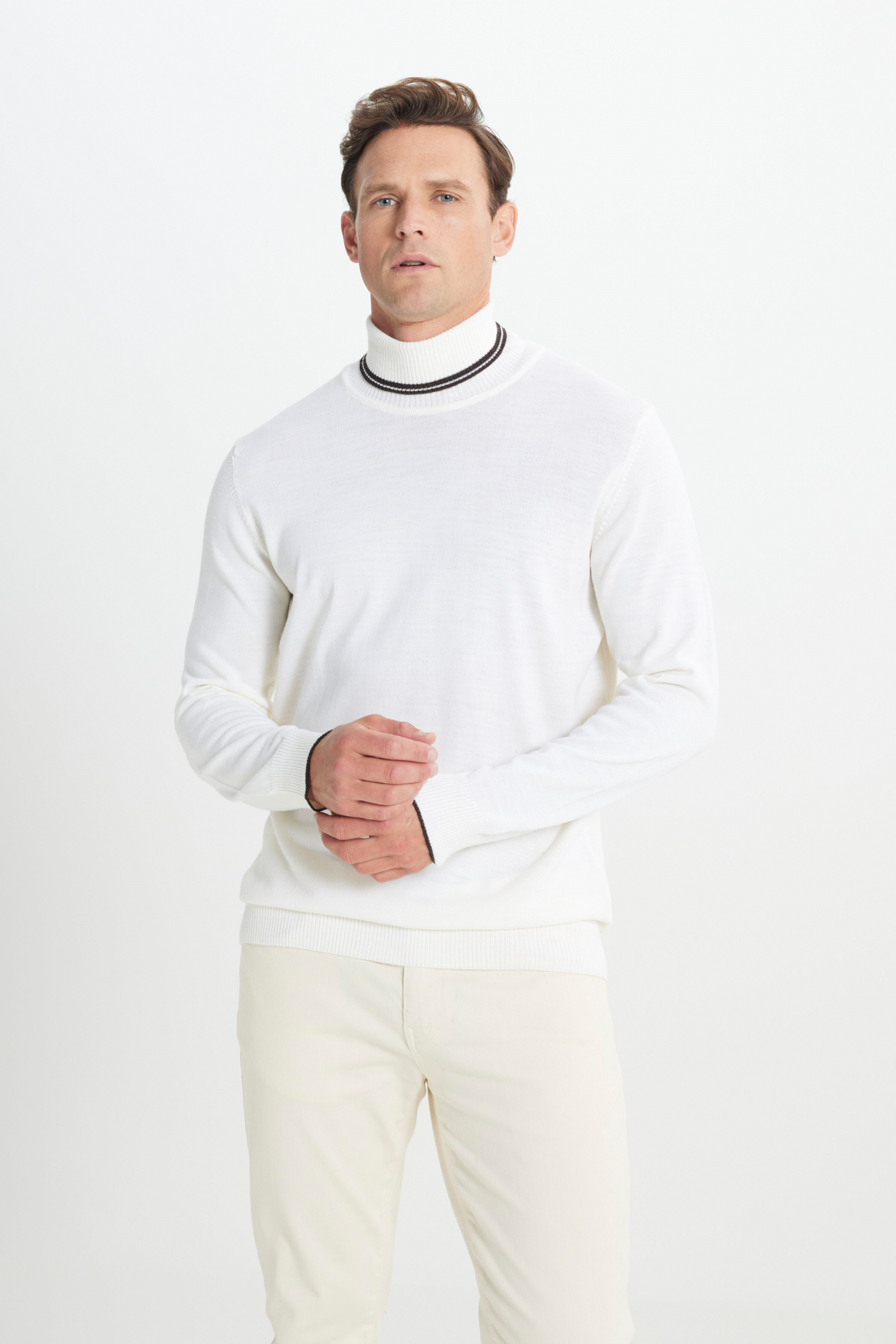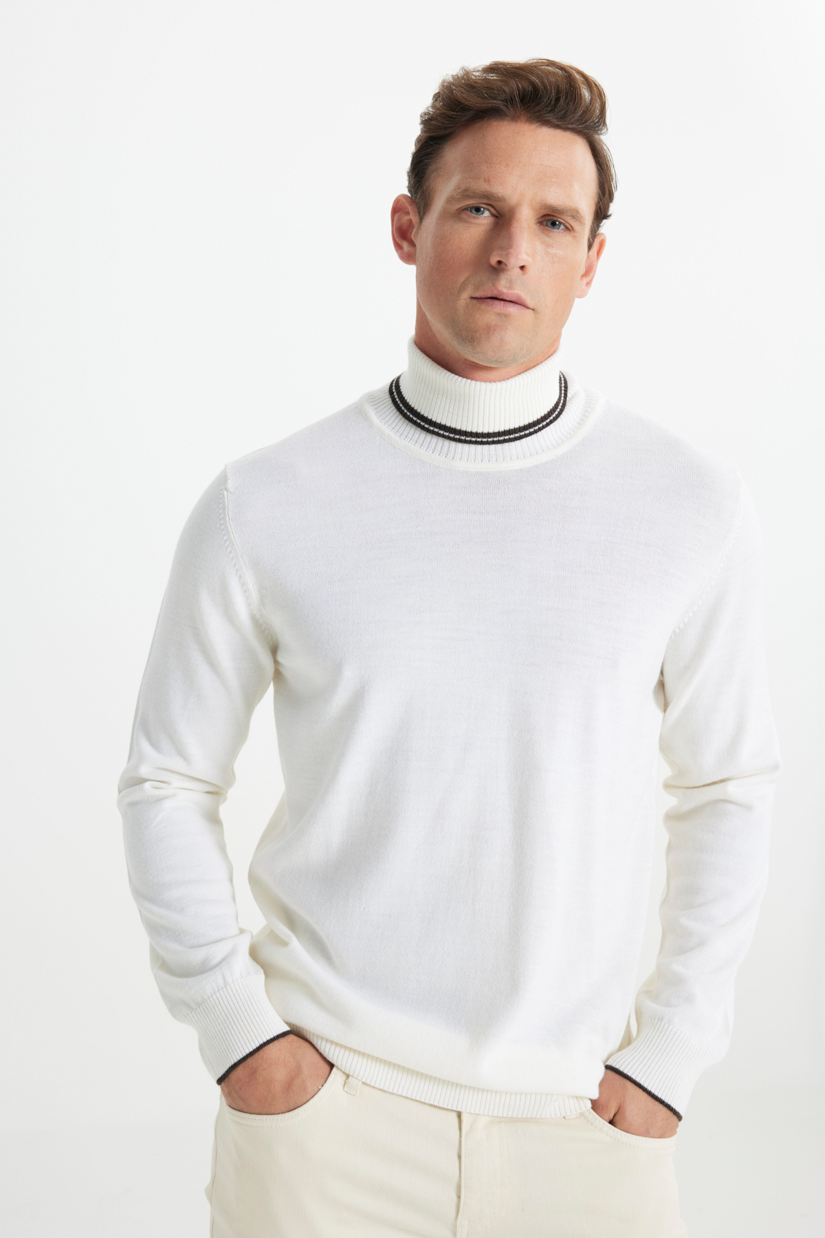 خرید اینترنتی ژاکت بافتنی یقه اسکی مردانه پشمی سفید رنگ، سایز استاندارد، برش معمولی برند آلتین ییدلیز کلاسیکس Altınyıldız Classics اورجینال از Altınyıldız Classics نمایندگی ترکیه
