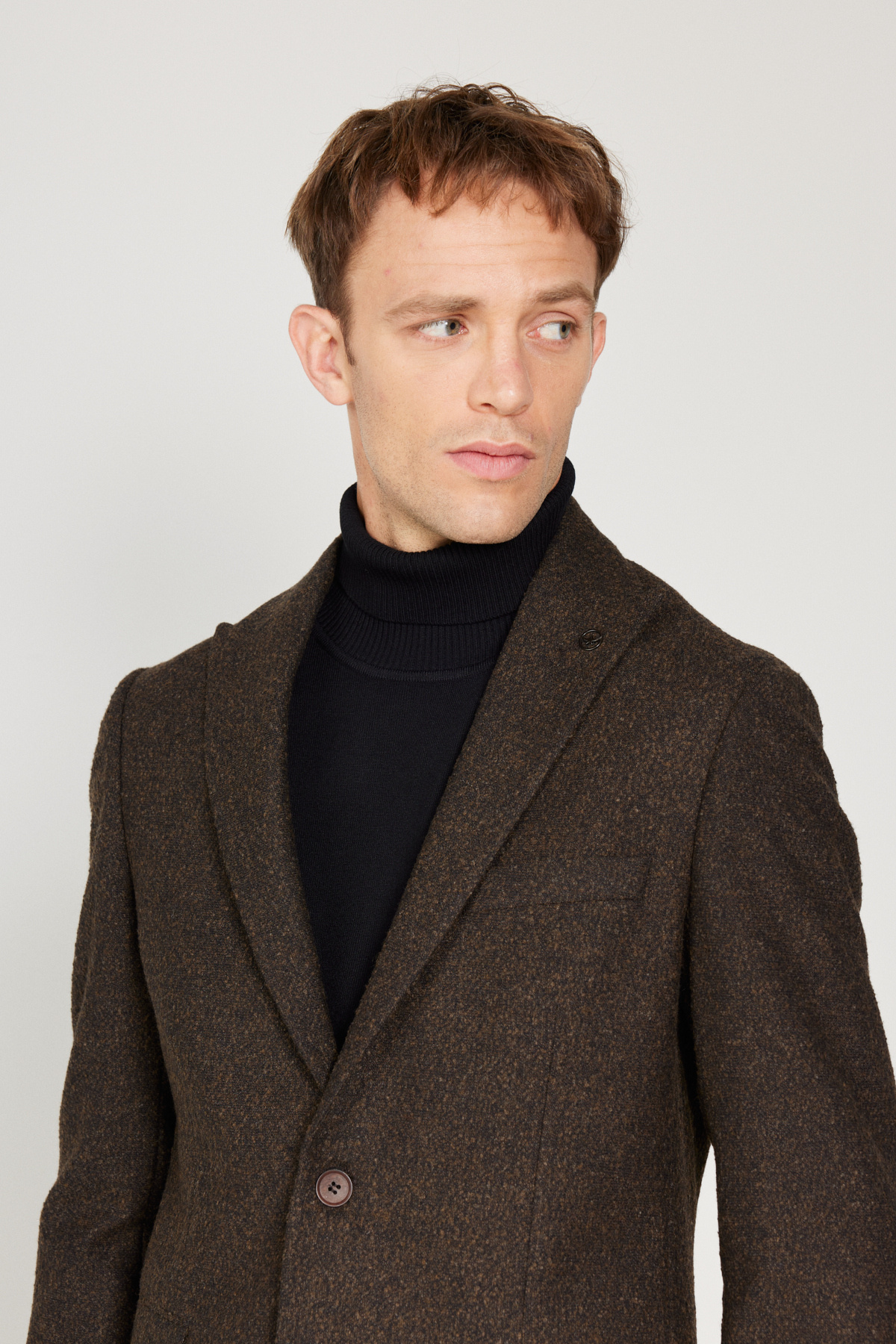 خرید اینترنتی کاپشن پشمی مردانه قهوهای اسلیم فیت باریک برشدار یقه برگردان طرحدار برند آلتین ییدلیز کلاسیکس Altınyıldız Classics اورجینال از Altınyıldız Classics نمایندگی ترکیه