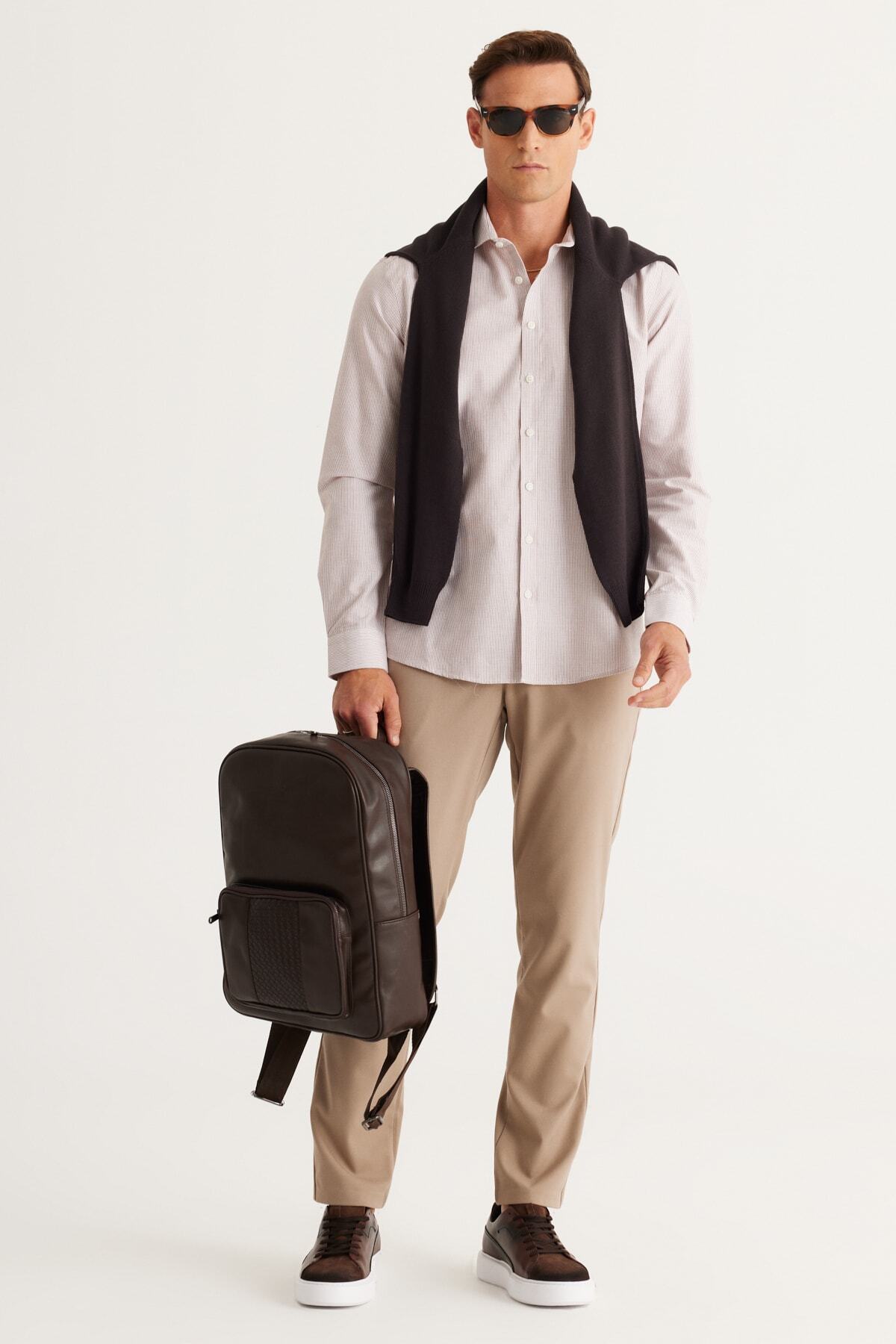 خرید اینترنتی پیراهن مردانه سفید-قهوهای اسلیم فیت، یقه ایتالیایی کوچک، برش باریک، ۱۰۰٪ پنبه، بافتدار برند آلتین ییدلیز کلاسیکس Altınyıldız Classics اورجینال از Altınyıldız Classics نمایندگی ترکیه