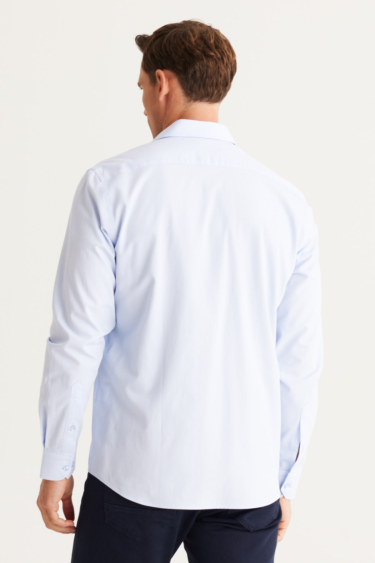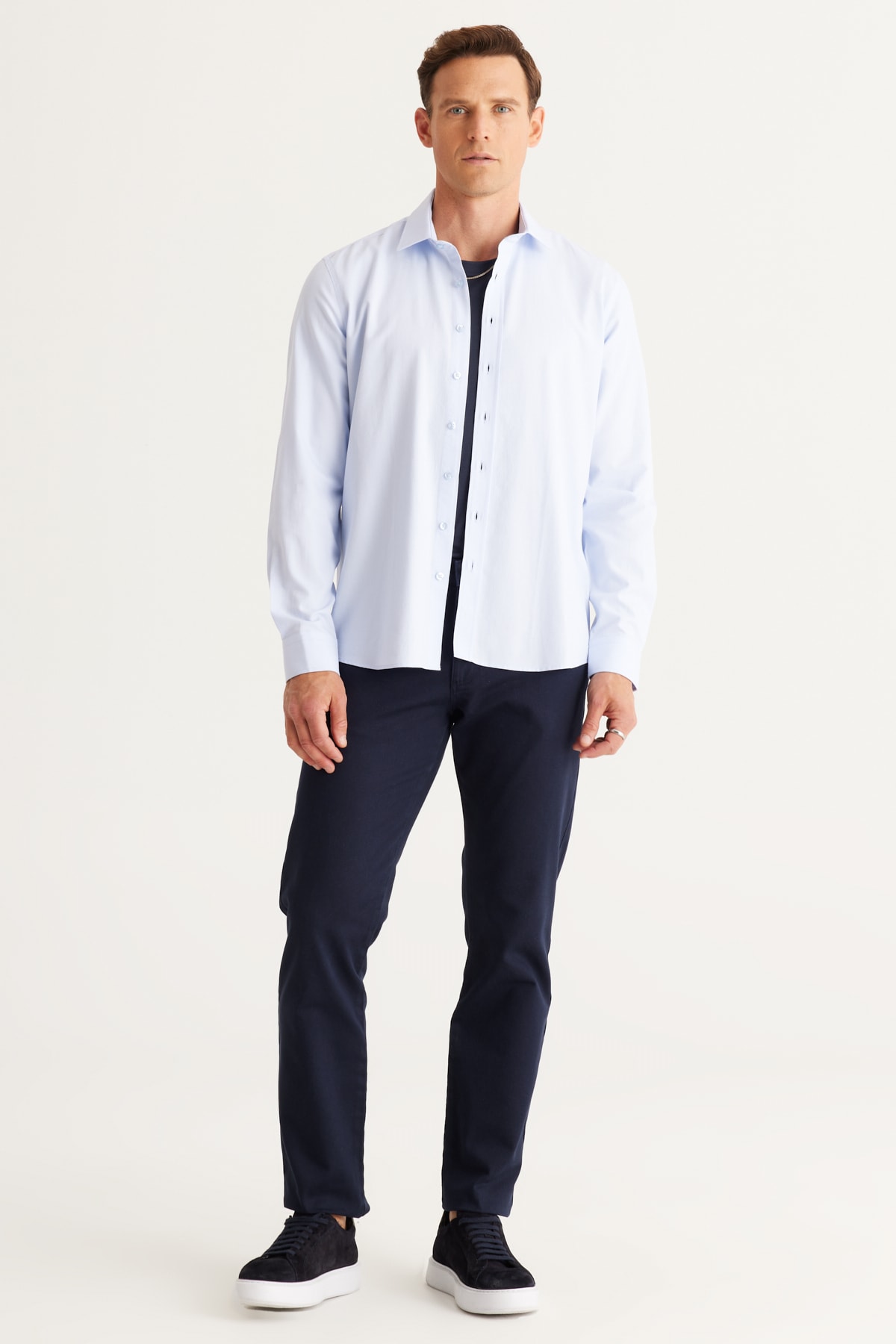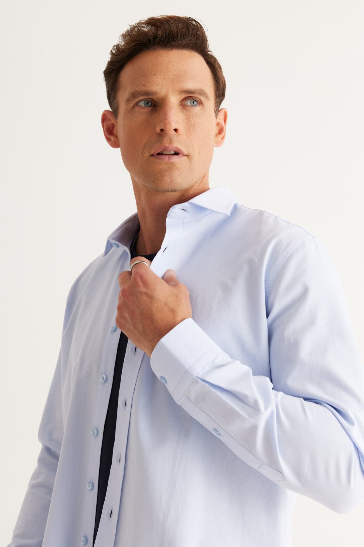 خرید اینترنتی پیراهن مردانه یقه کلاسیک اسلیم فیت آبی روشن، ۱۰۰٪ پنبهای، بافتدار برند آلتین ییدلیز کلاسیکس Altınyıldız Classics اورجینال از Altınyıldız Classics نمایندگی ترکیه