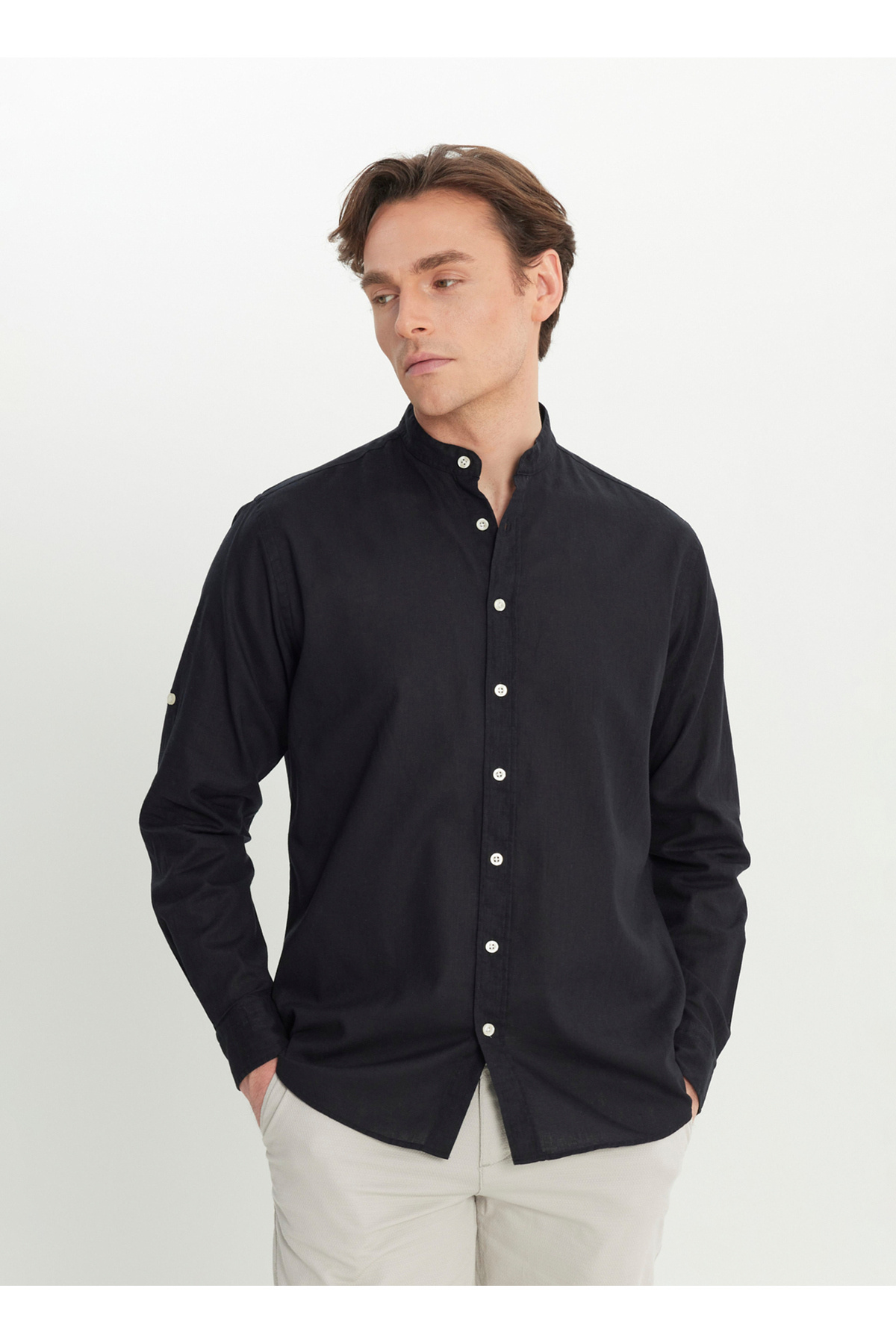 خرید اینترنتی پیراهن مردانه مشکی یقه ماندارین طرح کلاسیک Altınyıldız مدل Comfort Fit Classics ACE020252167_SYH برند آلتین ییدلیز کلاسیکس Altınyıldız Classics اورجینال از BOYNER نمایندگی و فروشگاه معتبر ترکیه