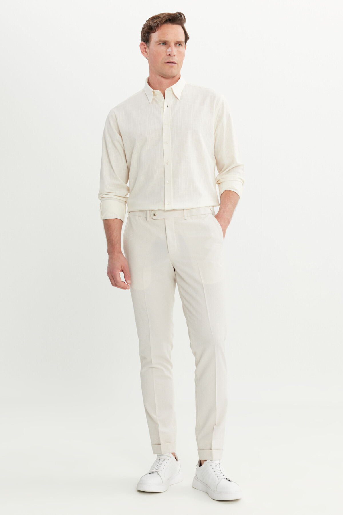 خرید اینترنتی شلوار کلاسیک مردانه بژ اسلیم فیت با کمر کشی و جیب کناری برند آلتین ییدلیز کلاسیکس Altınyıldız Classics اورجینال از Altınyıldız Classics نمایندگی ترکیه