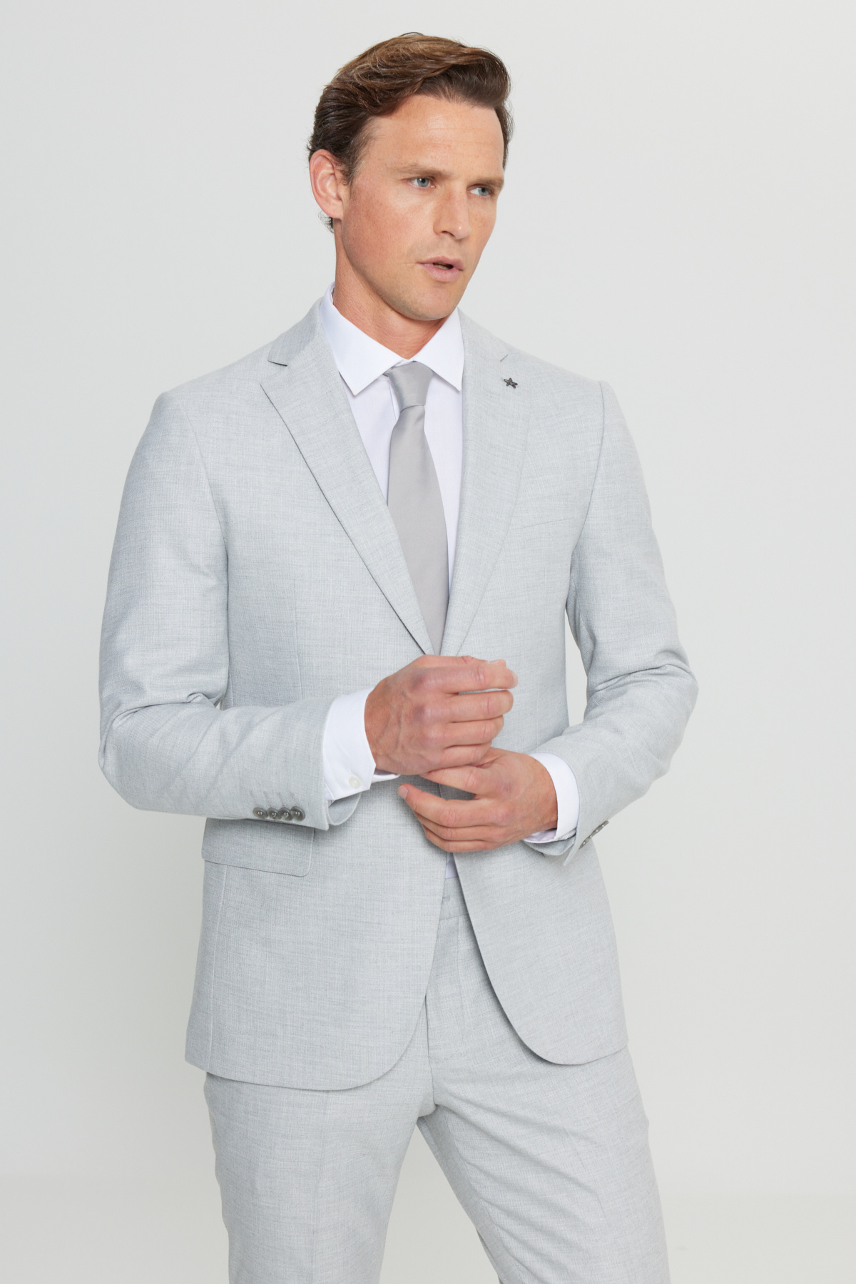 خرید اینترنتی کت و شلوار خاکستری باریک و خوشدوخت با یقه مونو و جیبهای کناری برند آلتین ییدلیز کلاسیکس Altınyıldız Classics اورجینال از MMY GİYİM نمایندگی ترکیه