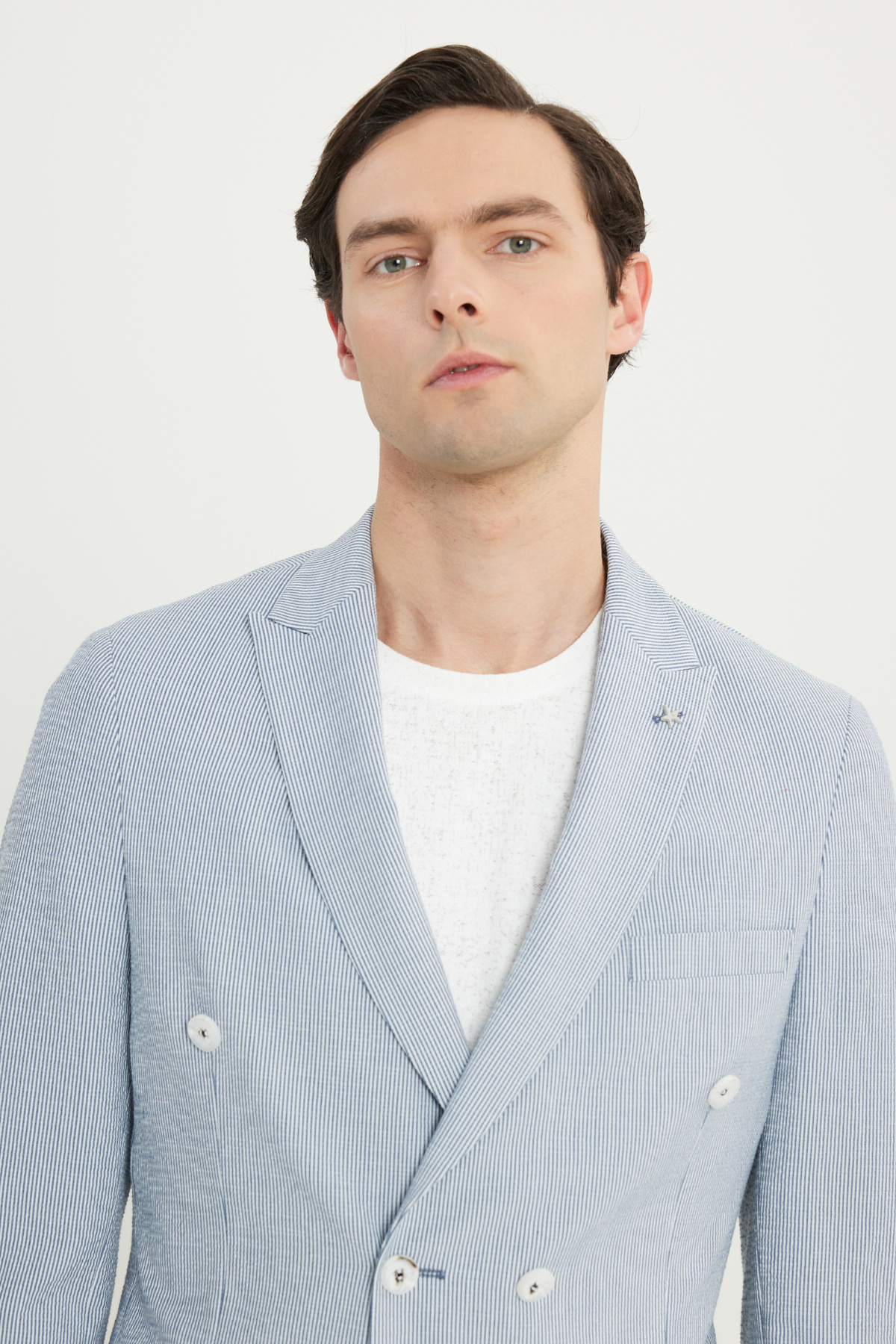 خرید اینترنتی کت و شلوار مردانه اسلیم فیت، یقه برگردان، راه راه، دکمه‌دار، سفید و سرمه‌ای برند آلتین ییدلیز کلاسیکس Altınyıldız Classics اورجینال از Altınyıldız Classics نمایندگی ترکیه