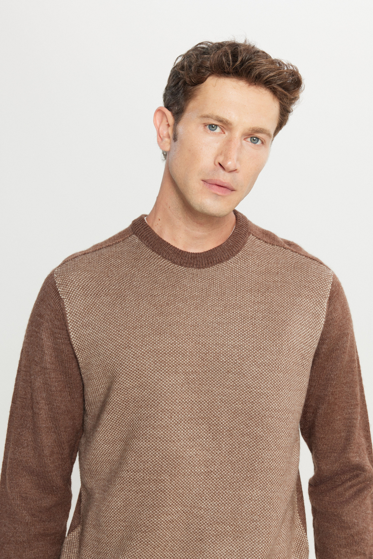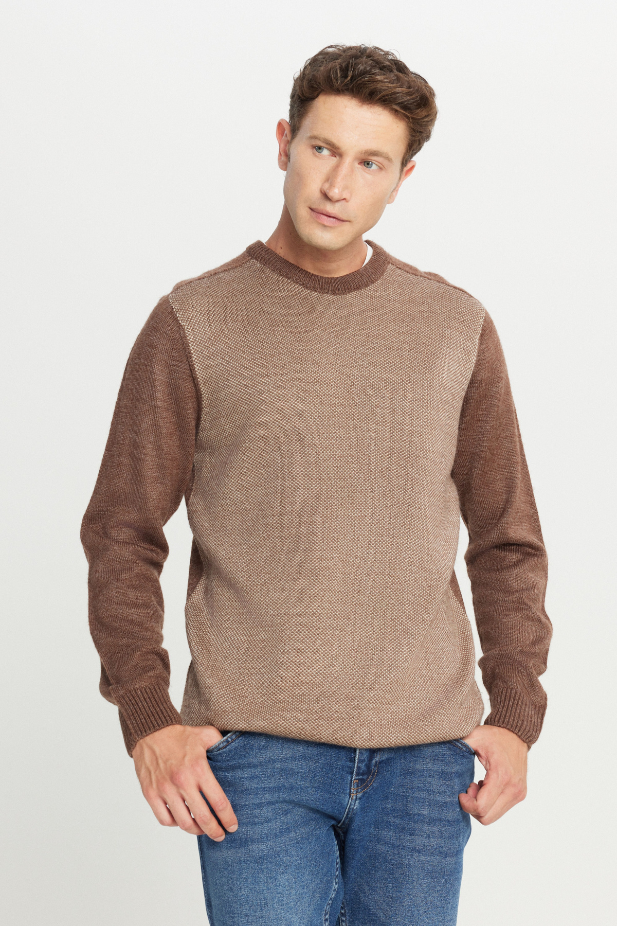 خرید اینترنتی ژاکت بافتنی مردانه یقه گرد با برش معمولی، رنگ بژ قهوهای، سایز استاندارد برند آلتین ییدلیز کلاسیکس Altınyıldız Classics اورجینال از Altınyıldız Classics نمایندگی و فروشگاه معتبر ترکیه