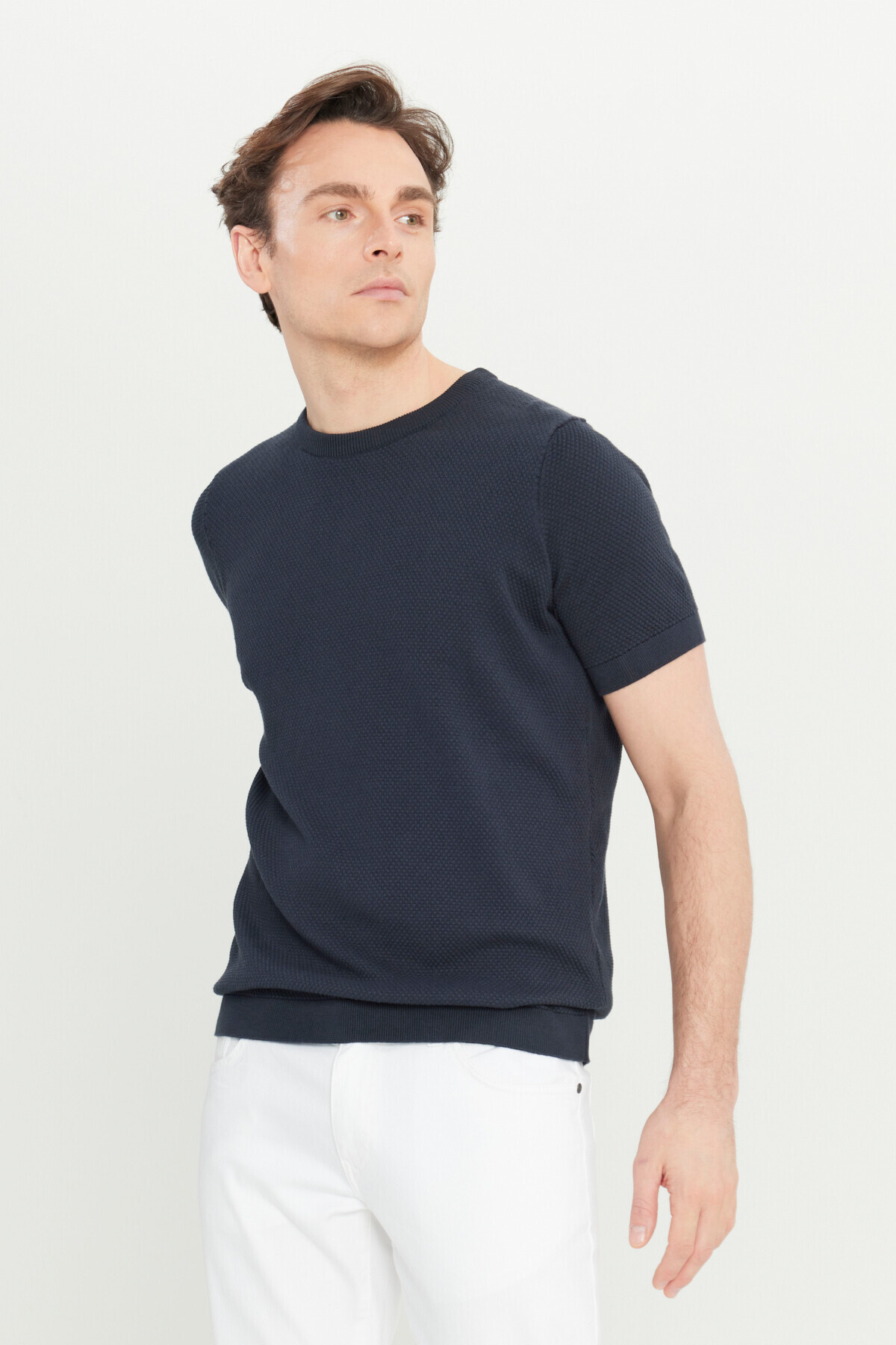 خرید اینترنتی تیشرت بافتنی مردانه سرمهای ۱۰۰٪ پنبه، برش استاندارد، یقه گرد برند آلتین ییدلیز کلاسیکس Altınyıldız Classics اورجینال از Altınyıldız Classics نمایندگی ترکیه