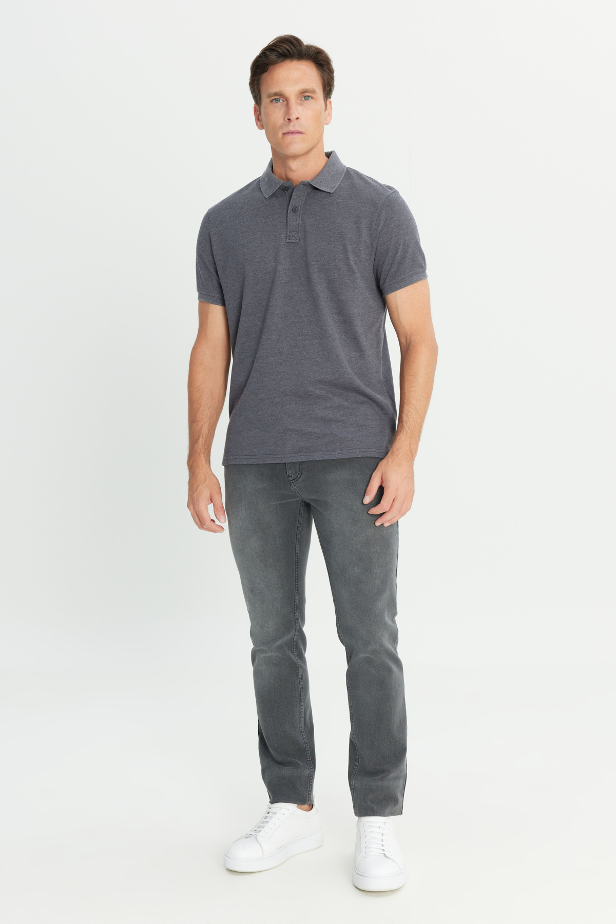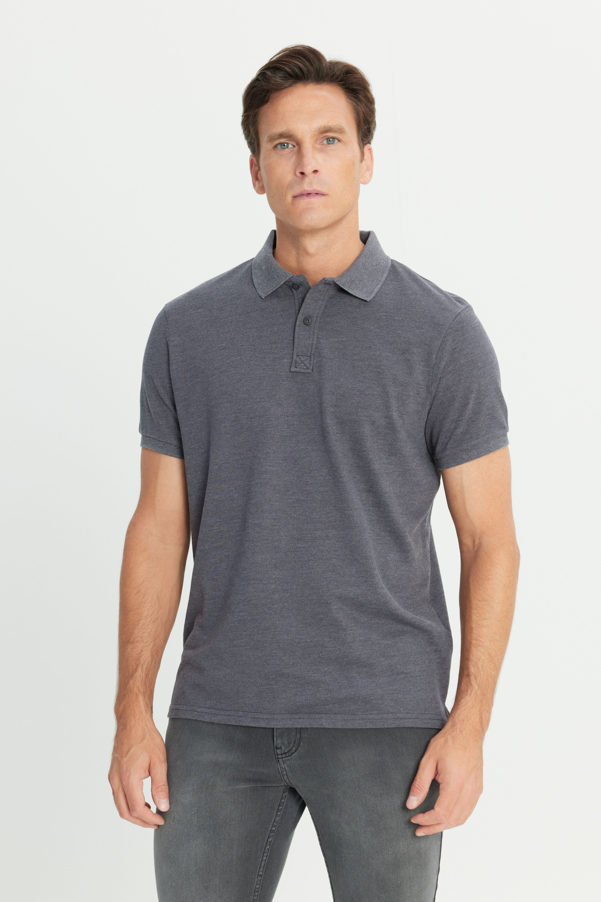 خرید اینترنتی پولو شرت مردانه اسلیم فیت طرح پنبه آنتراسیت برند آلتین ییدلیز کلاسیکس Altınyıldız Classics اورجینال از Altınyıldız Classics نمایندگی ترکیه