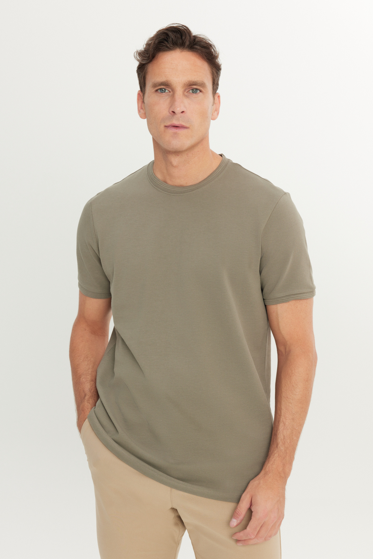 خرید اینترنتی تیشرت یقه گرد اسلیم فیت خاکی مردانه ۱۰۰٪ پنبه برند آلتین ییدلیز کلاسیکس Altınyıldız Classics اورجینال از Altınyıldız Classics نمایندگی ترکیه