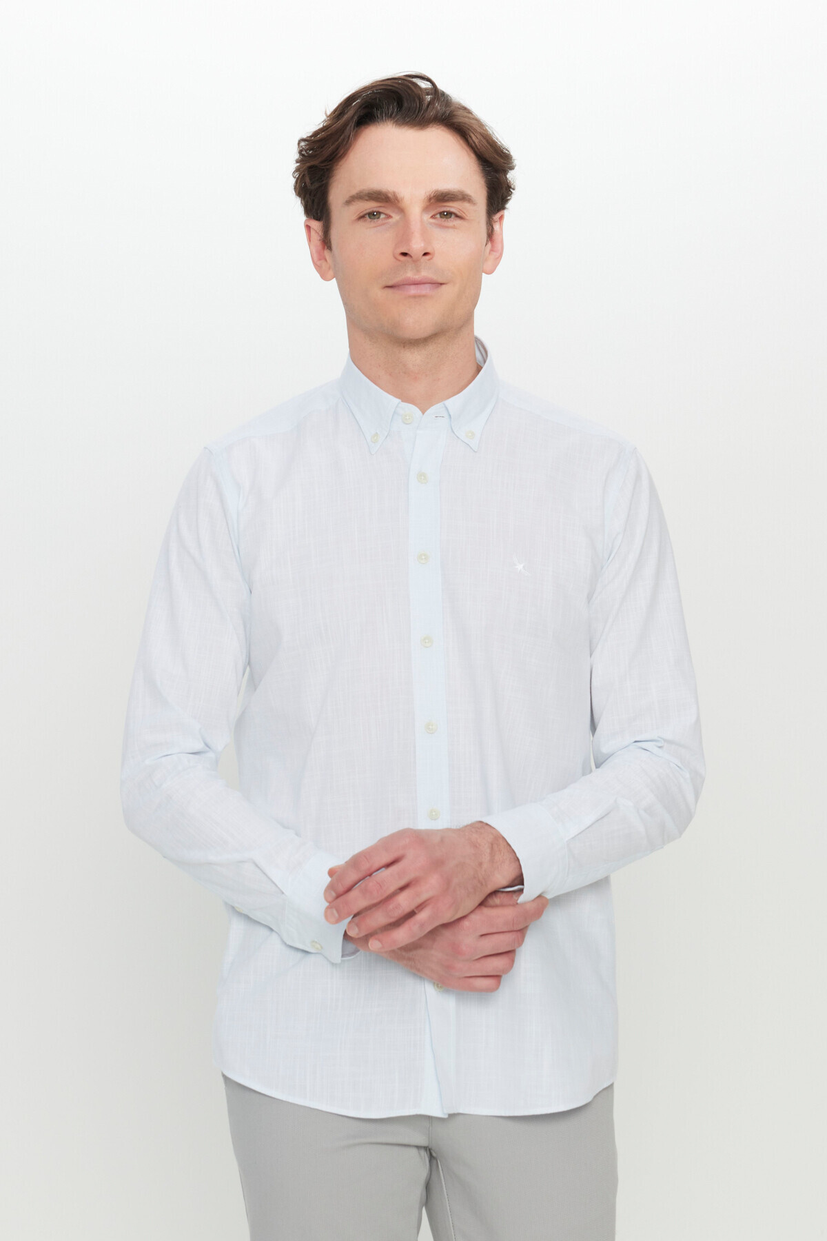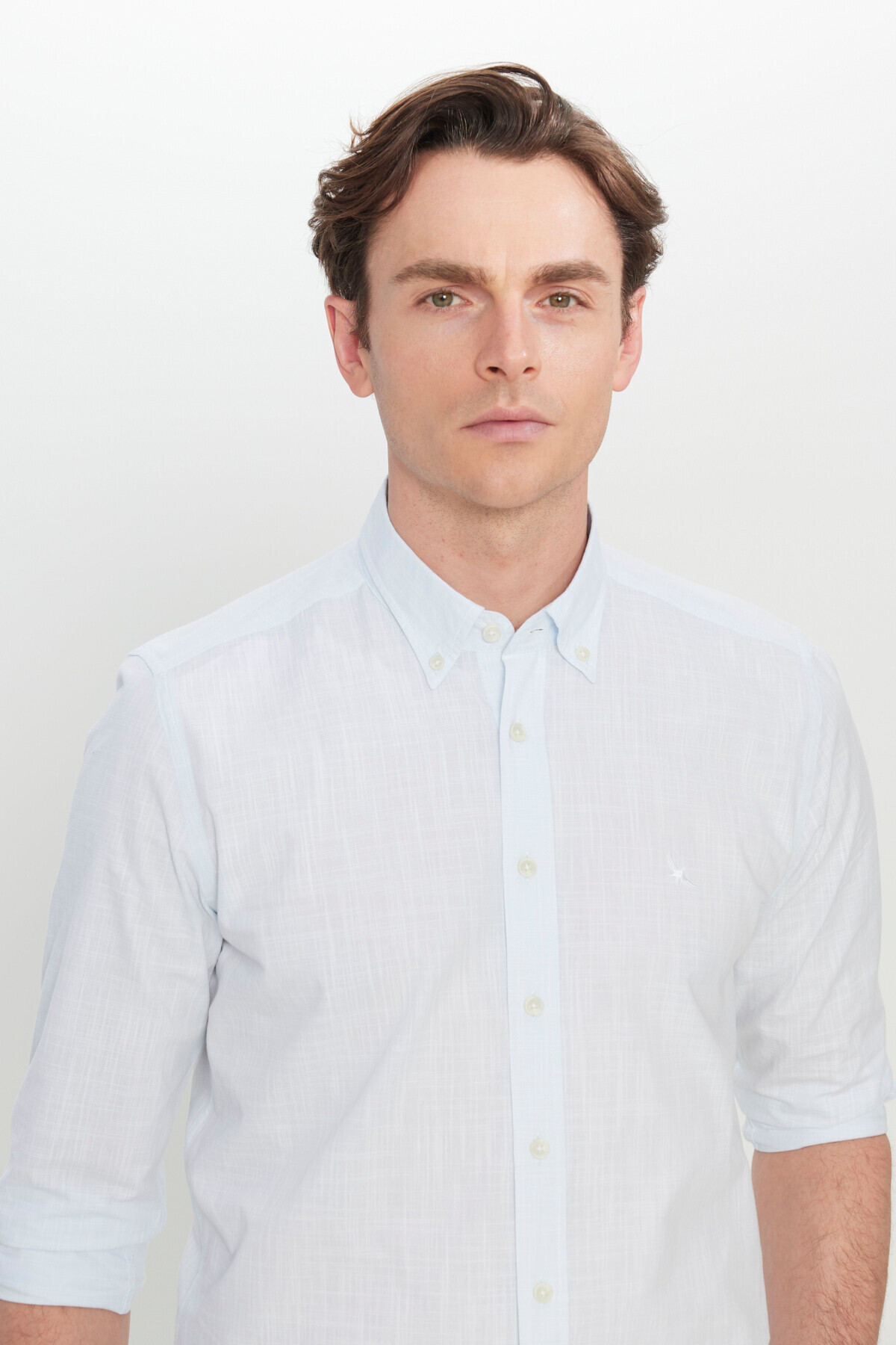 خرید اینترنتی پیراهن مردانه یقه دکمهدار اسلیم فیت باریک و بافتدار ۱۰۰٪ پنبهای آبی برند آلتین ییدلیز کلاسیکس Altınyıldız Classics اورجینال از Altınyıldız Classics نمایندگی ترکیه