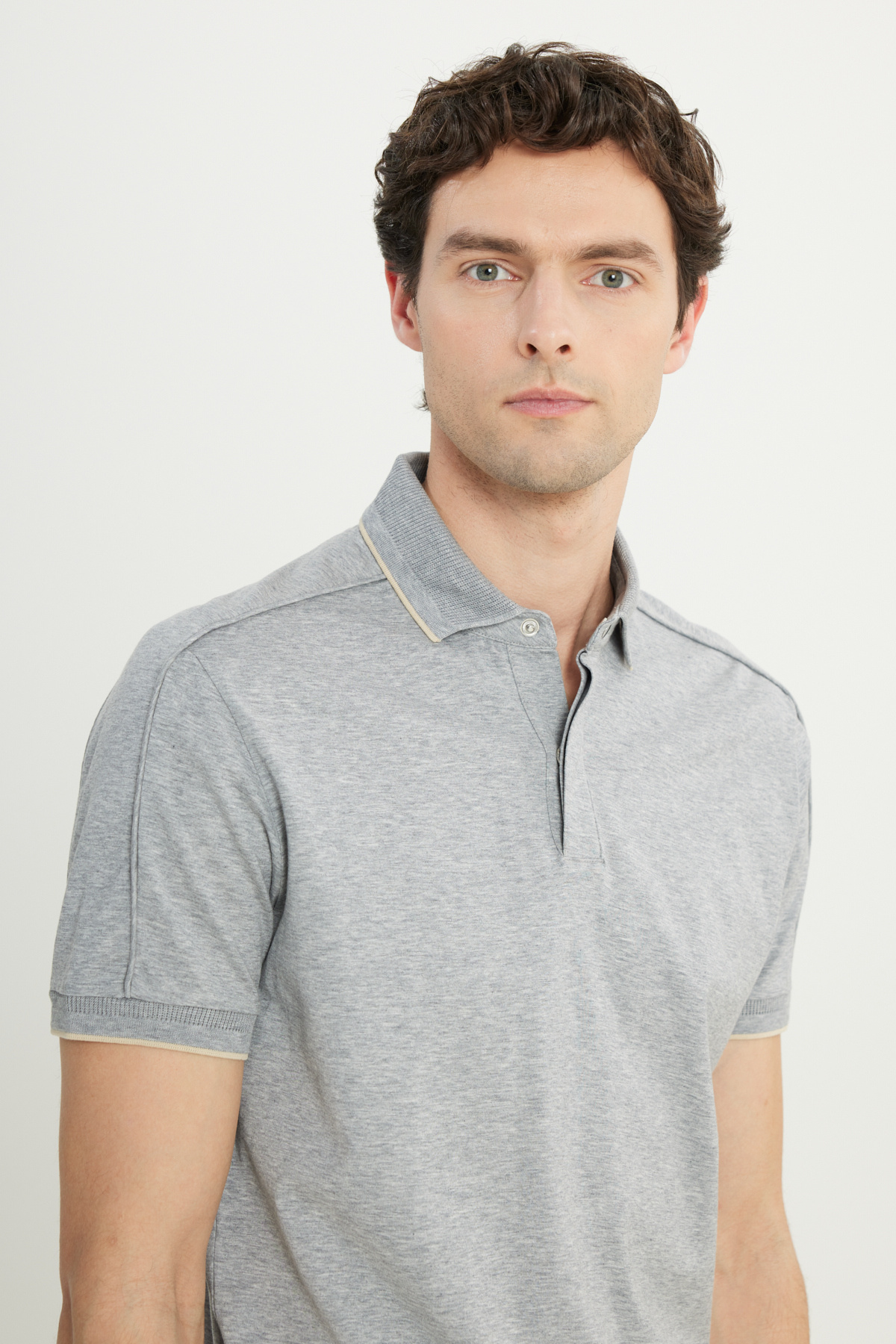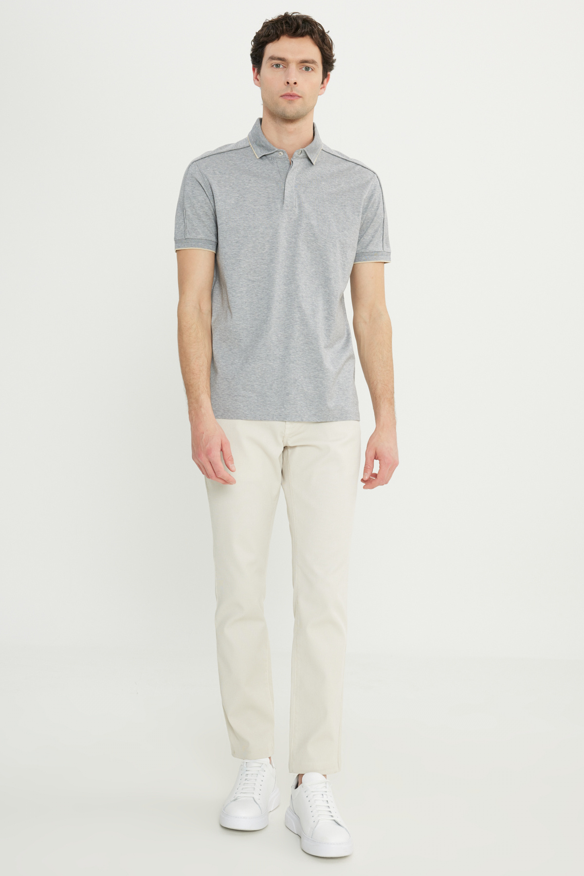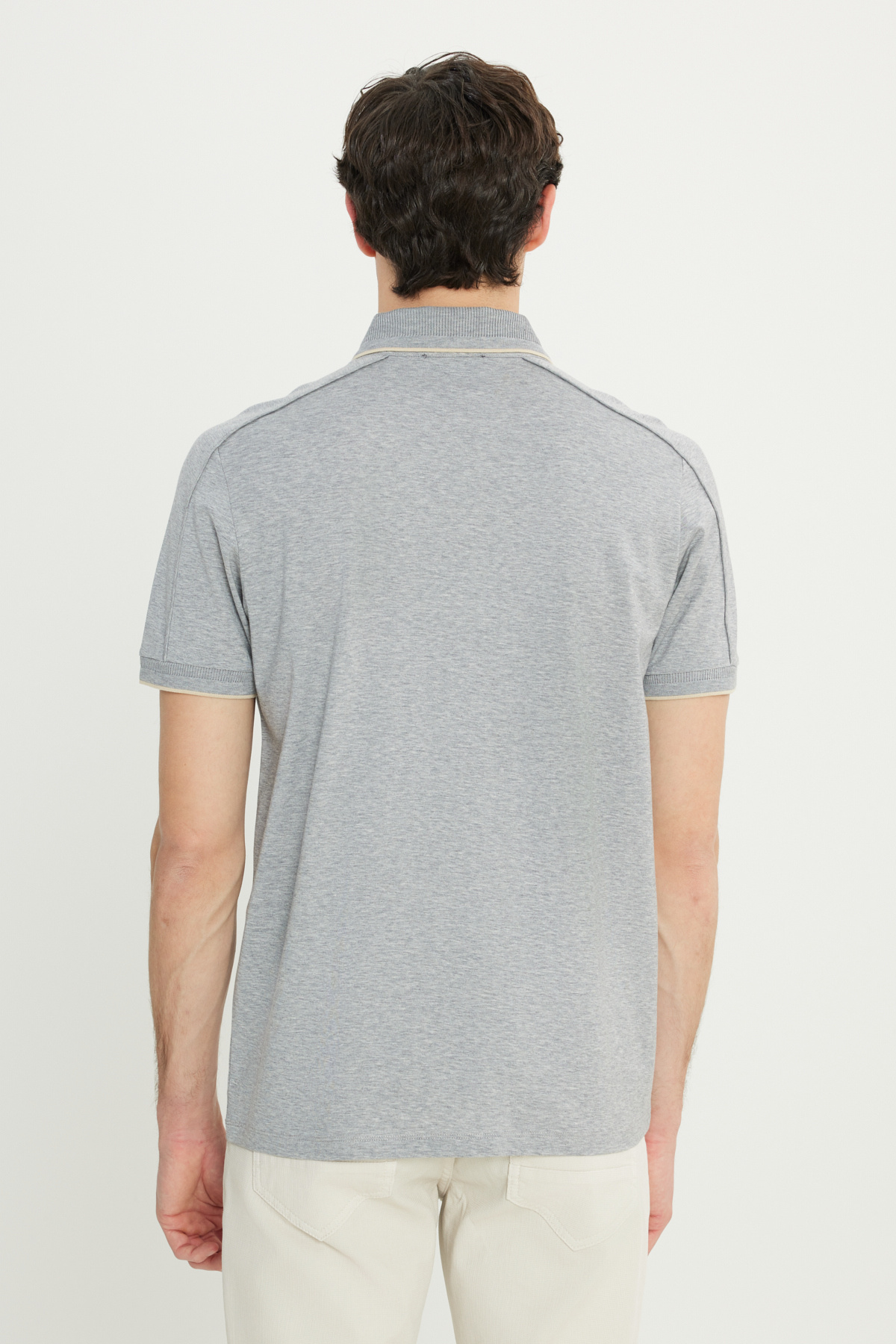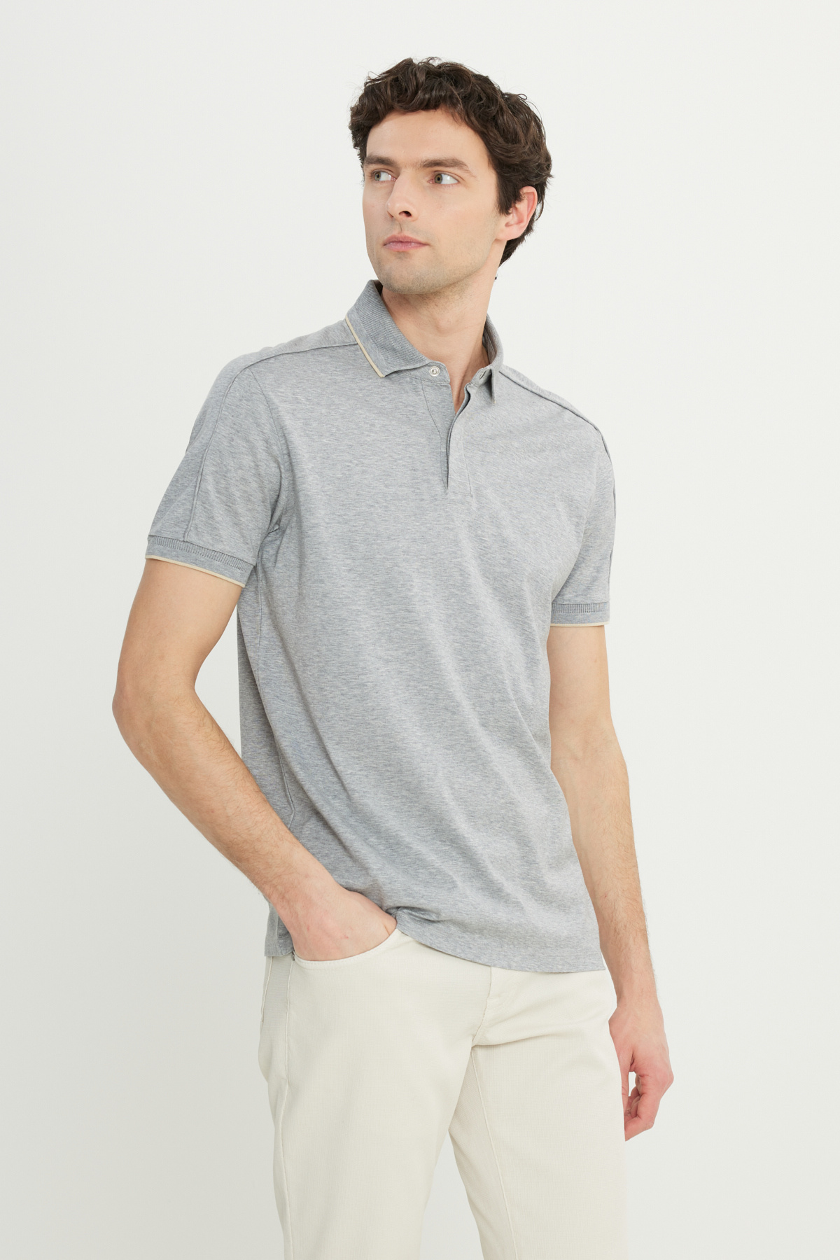 ۱۰۰٪ پنبه، ساده، خاکستری ملانژ، اسلیم فیت، یقه پولو، آستین کوتاه، بدون جیب، کالکشن تابستانی، کالکشن آلتینییلدیز، تیشرت یقه پولو برش باریک ۱۰۰٪ پنبه.