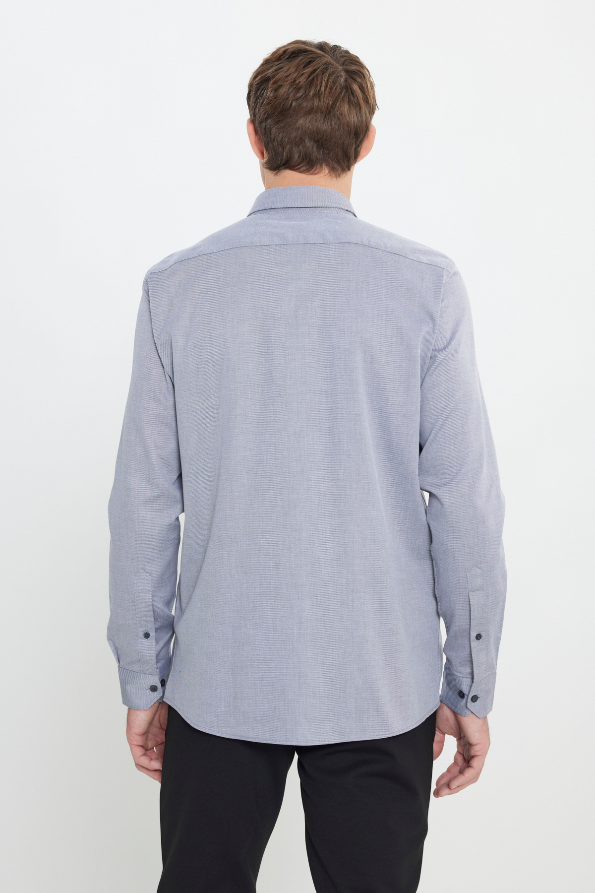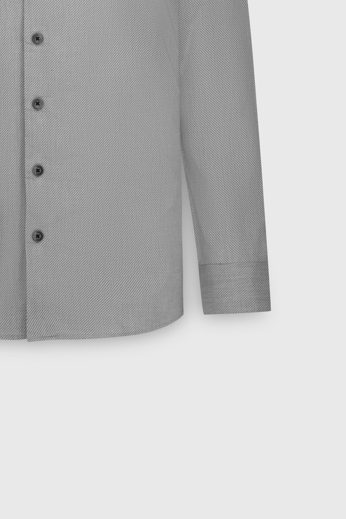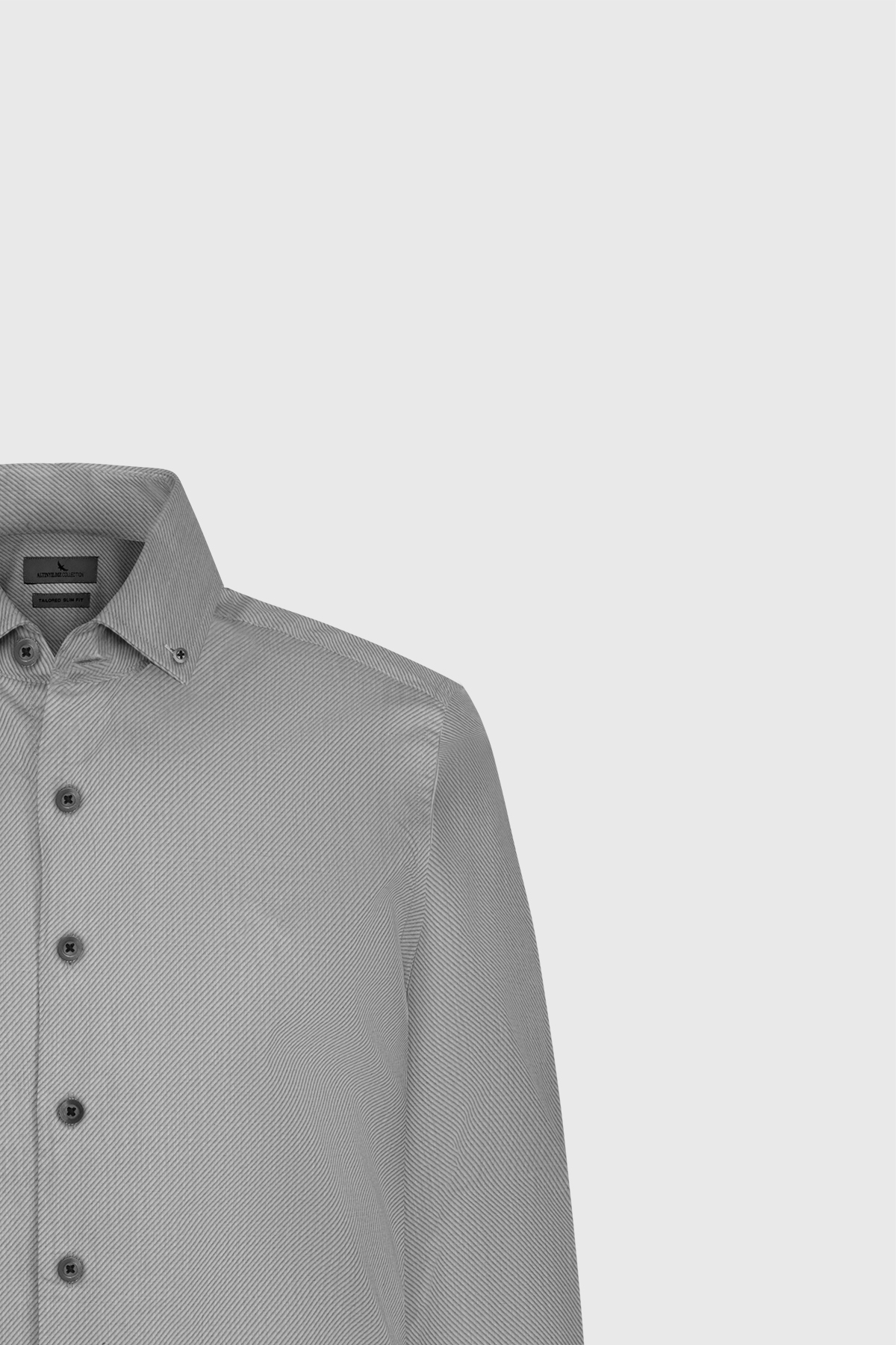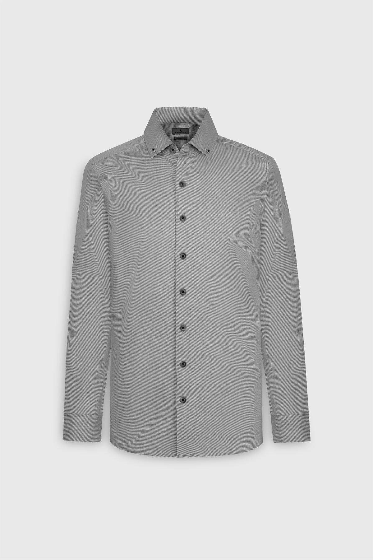۱۰۰٪ پنبه، طرح مورب آنتراسیت، فیت باریک، یقه دکمهدار، پیراهن دامادی، پیراهن کت و شلوار، سرآستین معمولی، آستین بلند، بدون جیب.