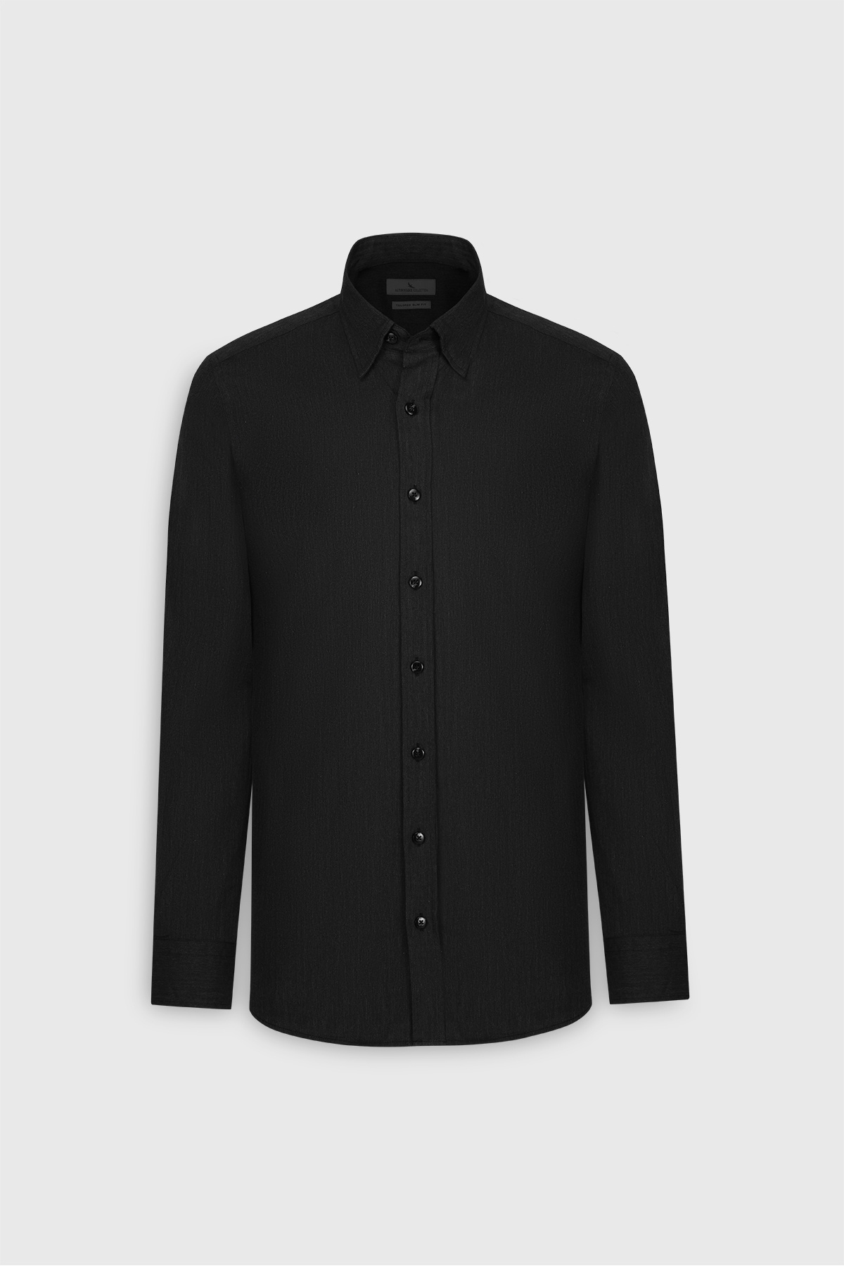خرید اینترنتی پیراهن مردانه یقه هفت طرح جناغی، 100% پنبه، آنتراسیت، اسلیم فیت، یقه باریک، دکمه مخفی برند آلتین ییدلیز کلاسیکس Altınyıldız Classics اورجینال از Altınyıldız Classics نمایندگی ترکیه