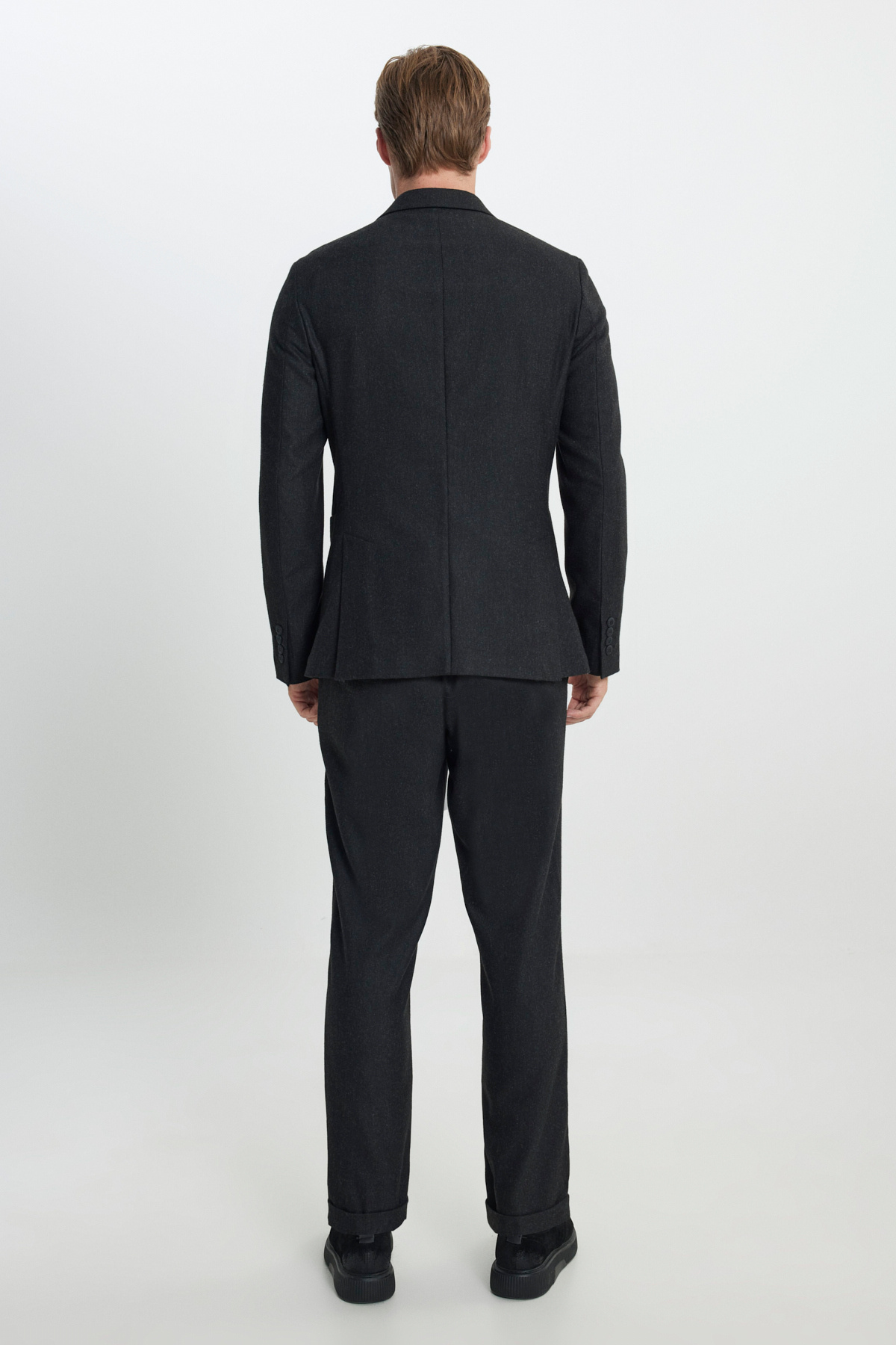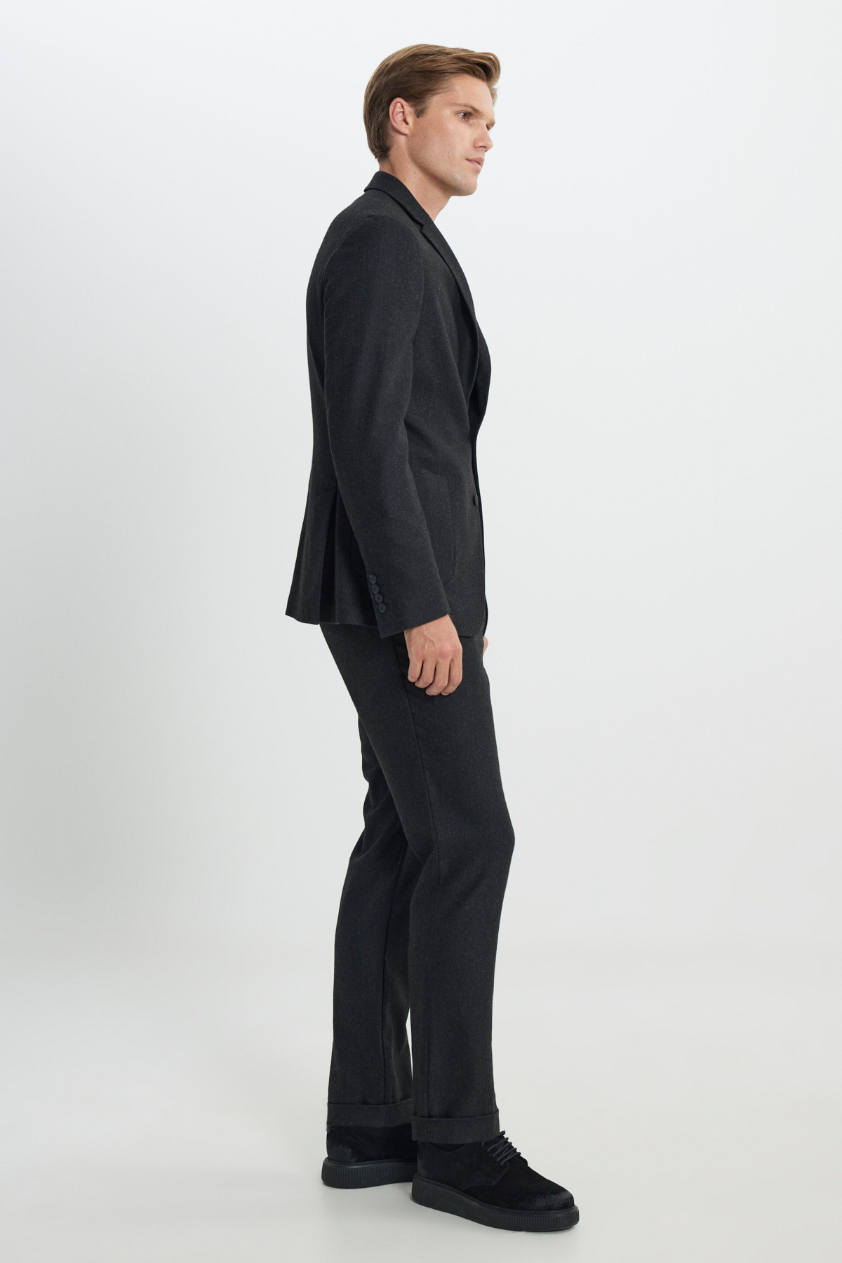 خرید اینترنتی کت و شلوار مردانه پشمی آنتراسیت، یقه تک رنگ باریک، کمر کشی و طرح مورب برند آلتین ییدلیز کلاسیکس Altınyıldız Classics اورجینال از Altınyıldız Classics نمایندگی ترکیه