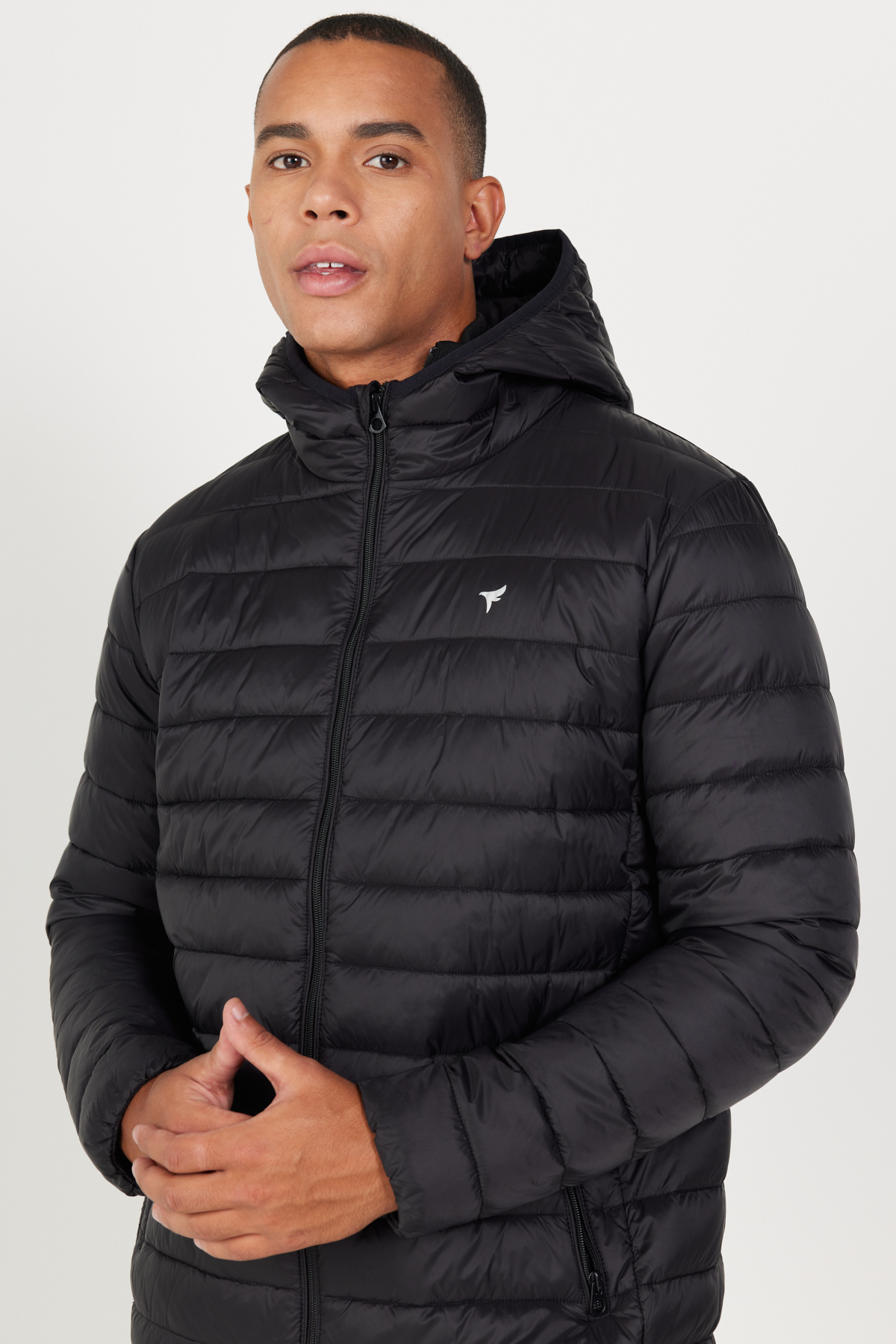 100٪ پلی آمید، ساده، مشکی، تناسب استاندارد، یقه کلاه دار، آستین بلند، جیب های کناری، مجموعه زمستانی، ژاکت کلاهدار برش معمولی Altınyıldız Classics/ACCo.