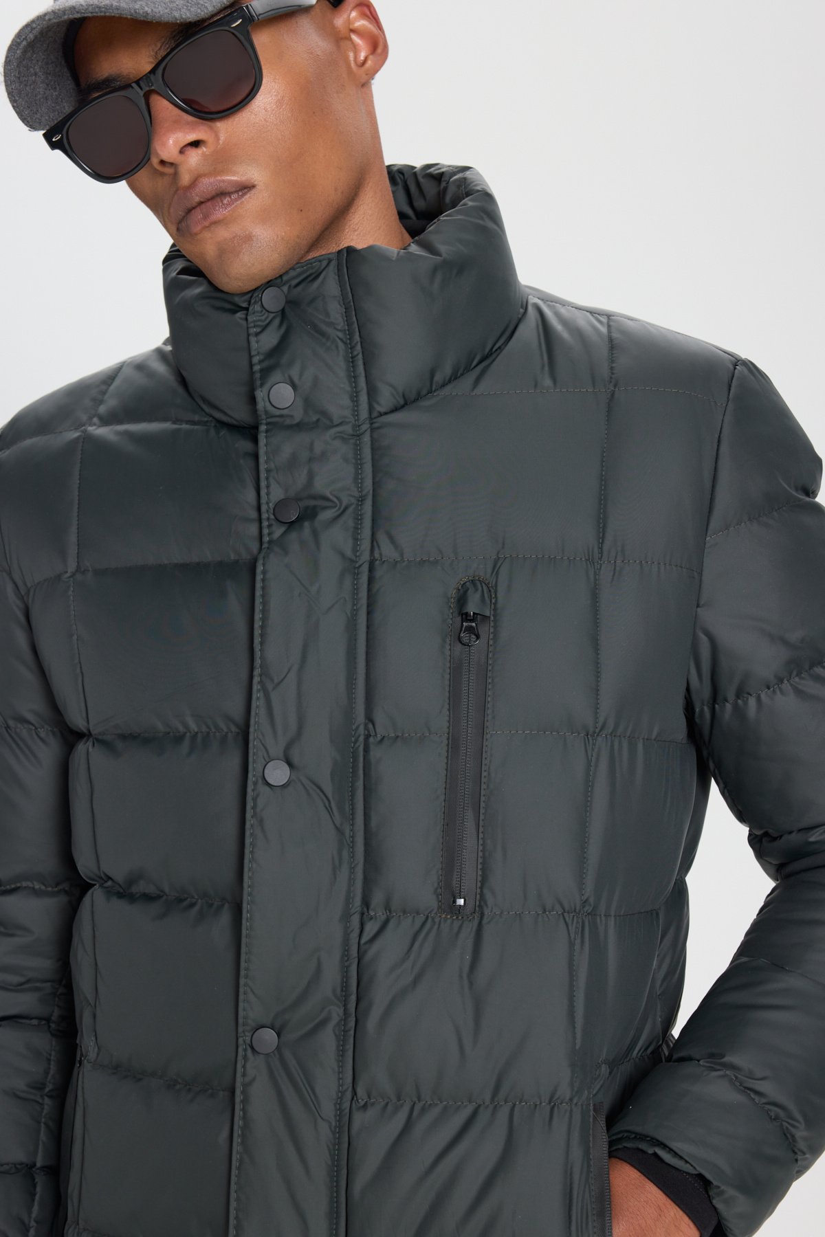 100% پلی استر، ساده، خاکی، تناسب استاندارد، یقه ایستاده، آستین بلند، جیب های کناری، مجموعه زمستانی، کت جیبی یقه پایه برش معمولی ACCo/Altınyıldız Classics Fit Standard.