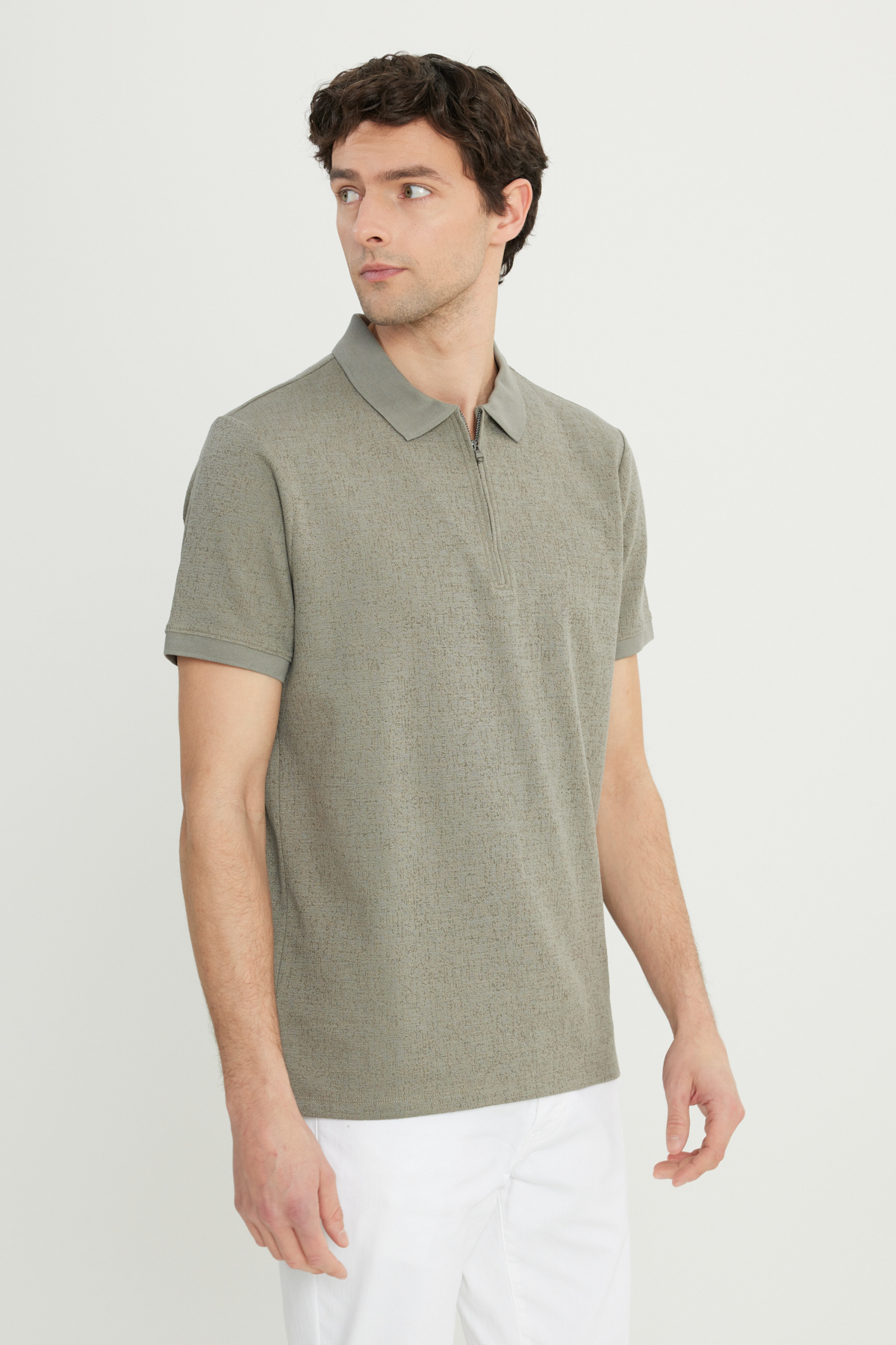 خرید اینترنتی تیشرت مردانه نخی خاکی اسلیم فیت یقه زیپدار باریک طرح ژاکارد کشی برند آلتین ییدلیز کلاسیکس Altınyıldız Classics اورجینال از Altınyıldız Classics نمایندگی ترکیه
