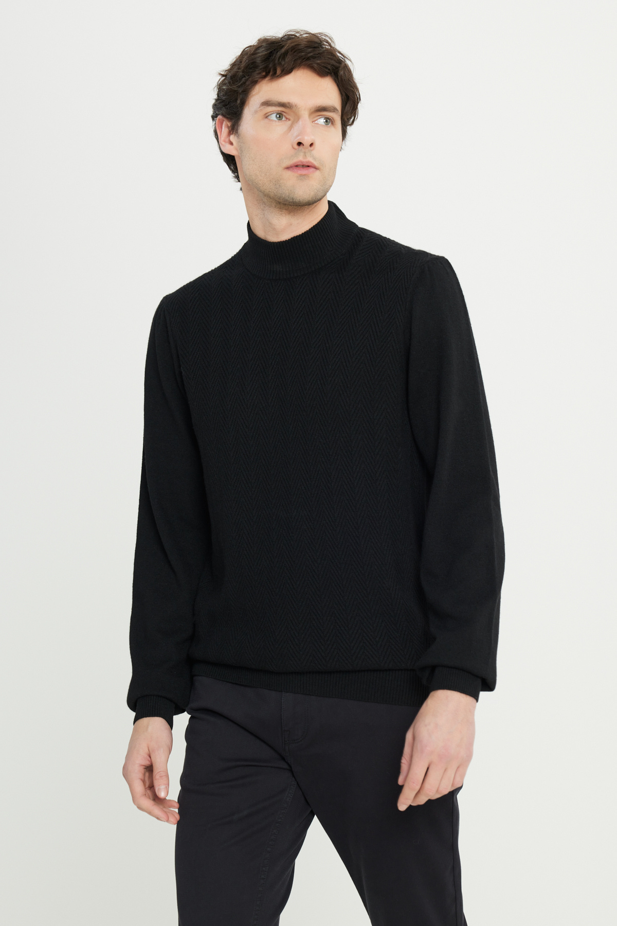 خرید اینترنتی ژاکت بافتنی پشمی نیم یقه اسکی مردانه مشکی استاندارد فیت، برش معمولی برند آلتین ییدلیز کلاسیکس Altınyıldız Classics اورجینال از Altınyıldız Classics نمایندگی ترکیه