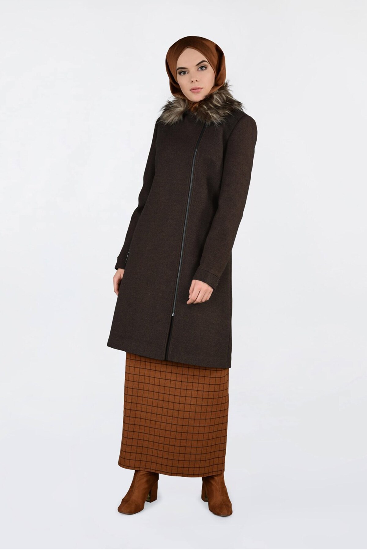 خرید اینترنتی کت زیپدار یقه خزدار ۹۷۹۴ برند آلوینا Alvina اورجینال از ALVİNA نمایندگی و فروشگاه معتبر ترکیه