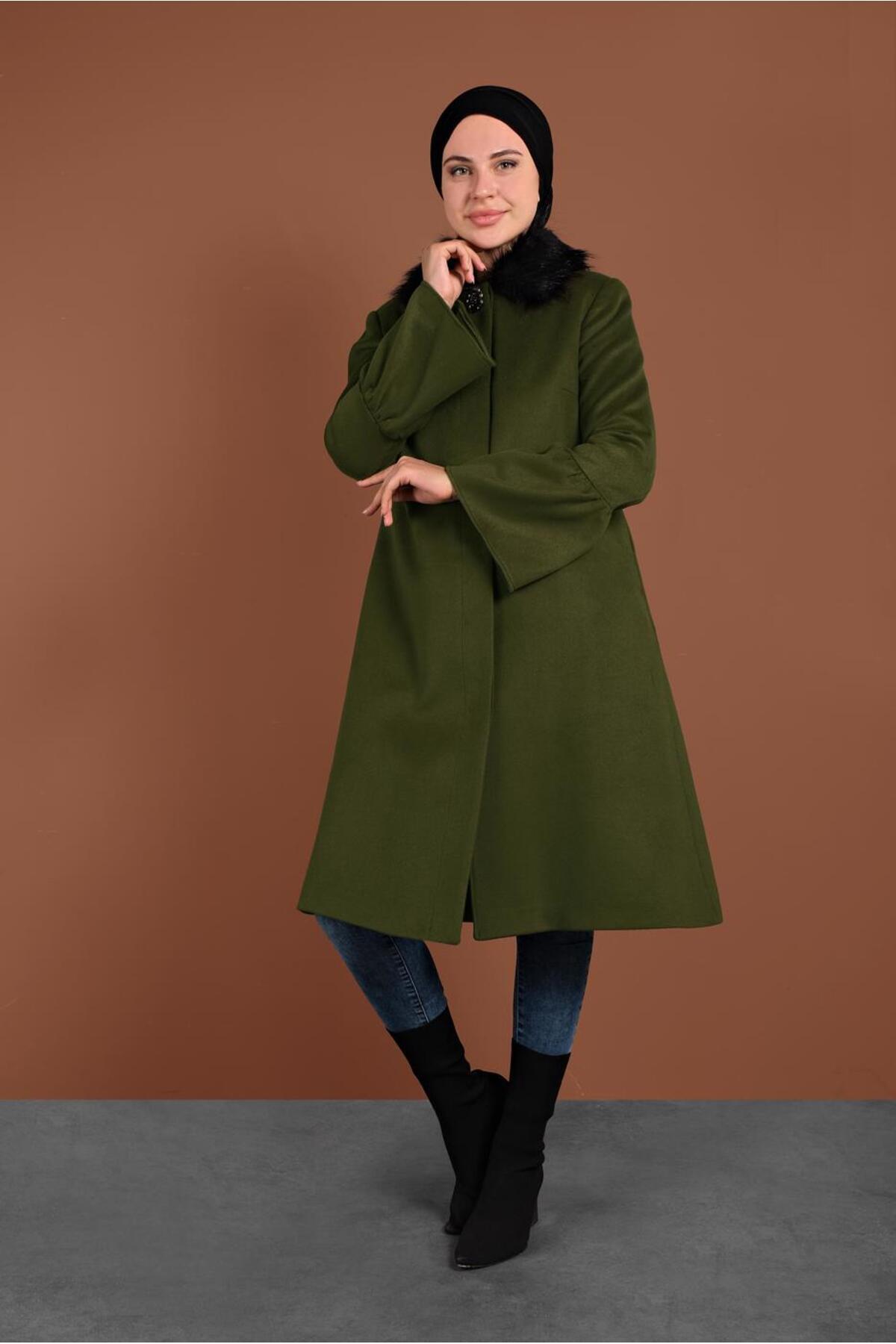 خرید اینترنتی کت یقه خزدار با آستینهای کفپوش ۹۸۱۵ برند آلوینا Alvina اورجینال از ALVİNA نمایندگی ترکیه