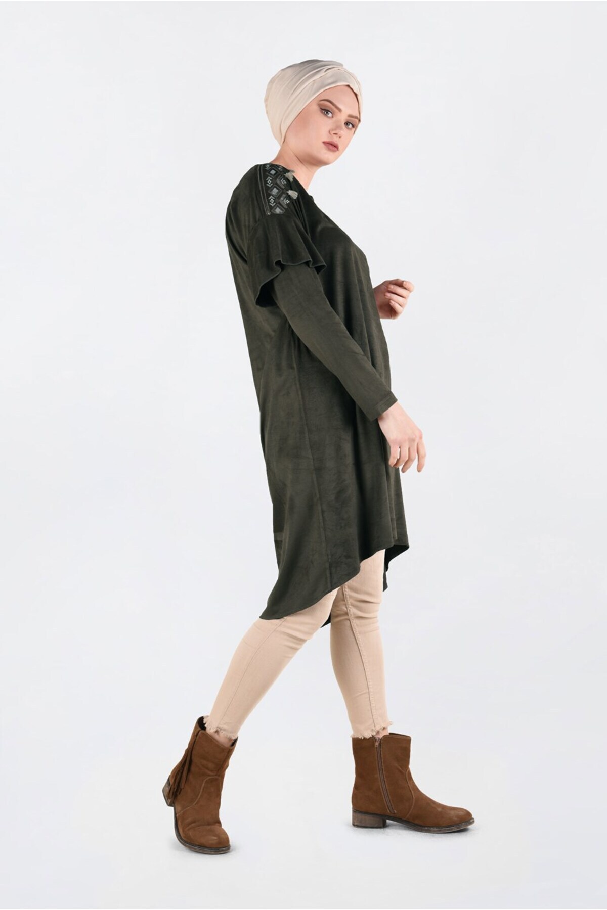 خرید اینترنتی تونیک چیندار با سرشانههای گلدوزیشده ۴۷۷۷ برند آلوینا Alvina اورجینال از ALVİNA نمایندگی ترکیه