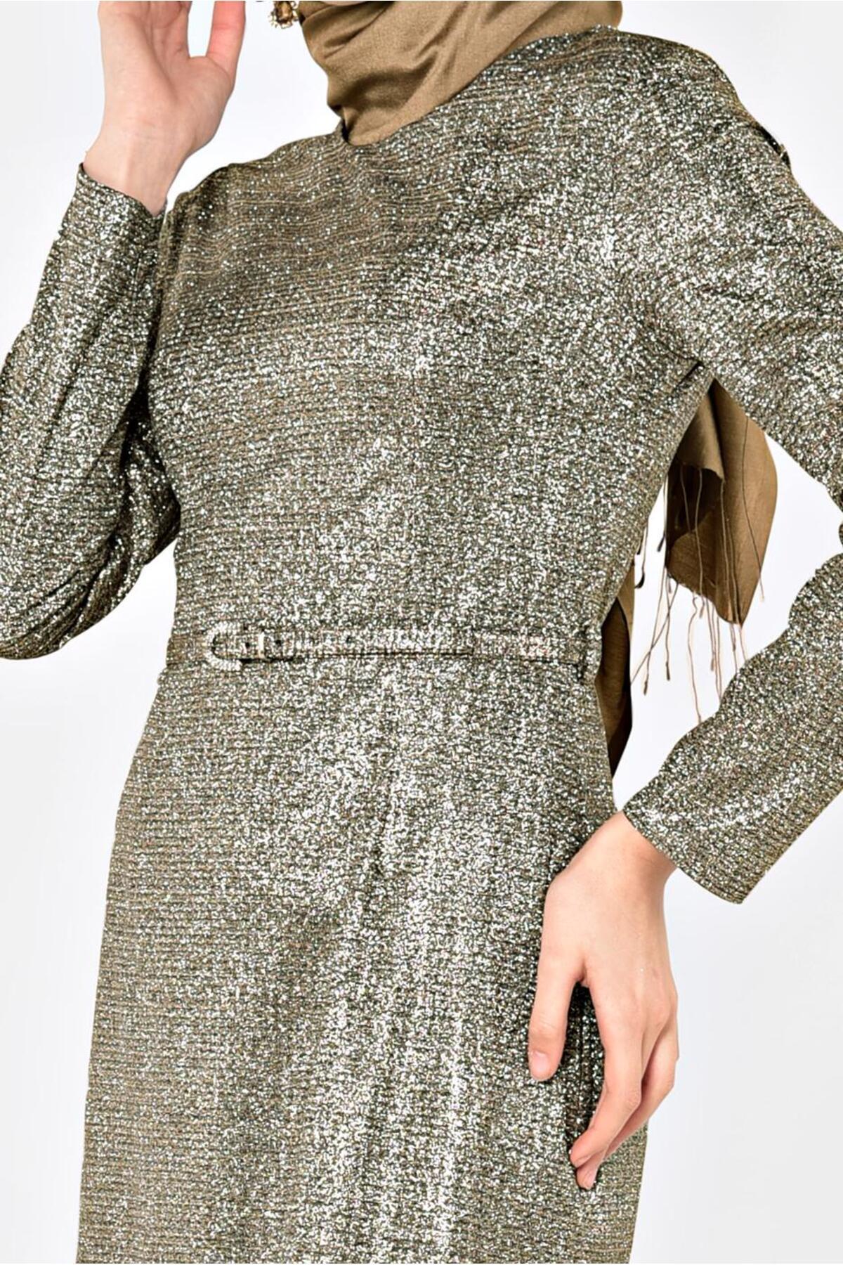 خرید اینترنتی لباس مجلسی کمربنددار براق ۴۱۰۱ برند آلوینا Alvina اورجینال از ALVİNA نمایندگی ترکیه