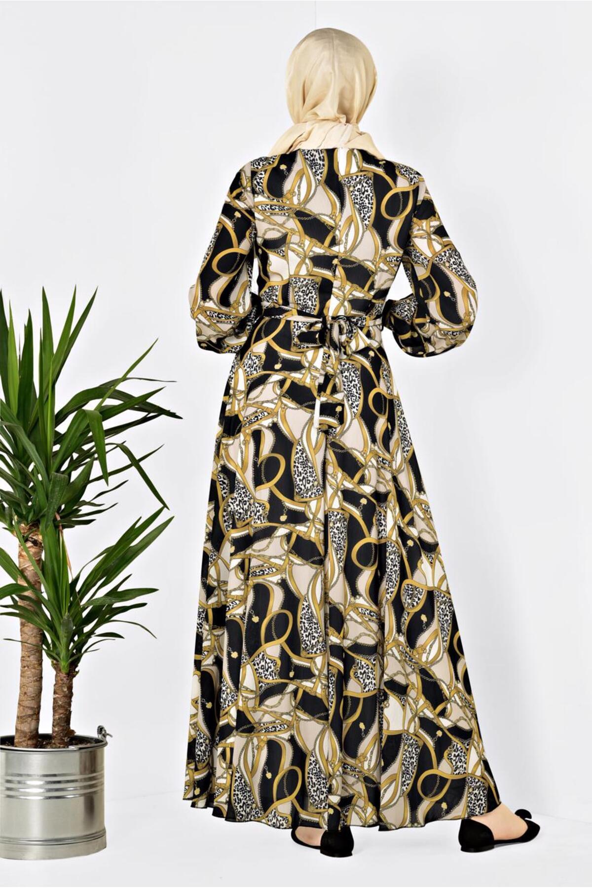 آلوینا پیراهن بلند طرح دار و کمربند دار ۴۱۰۴