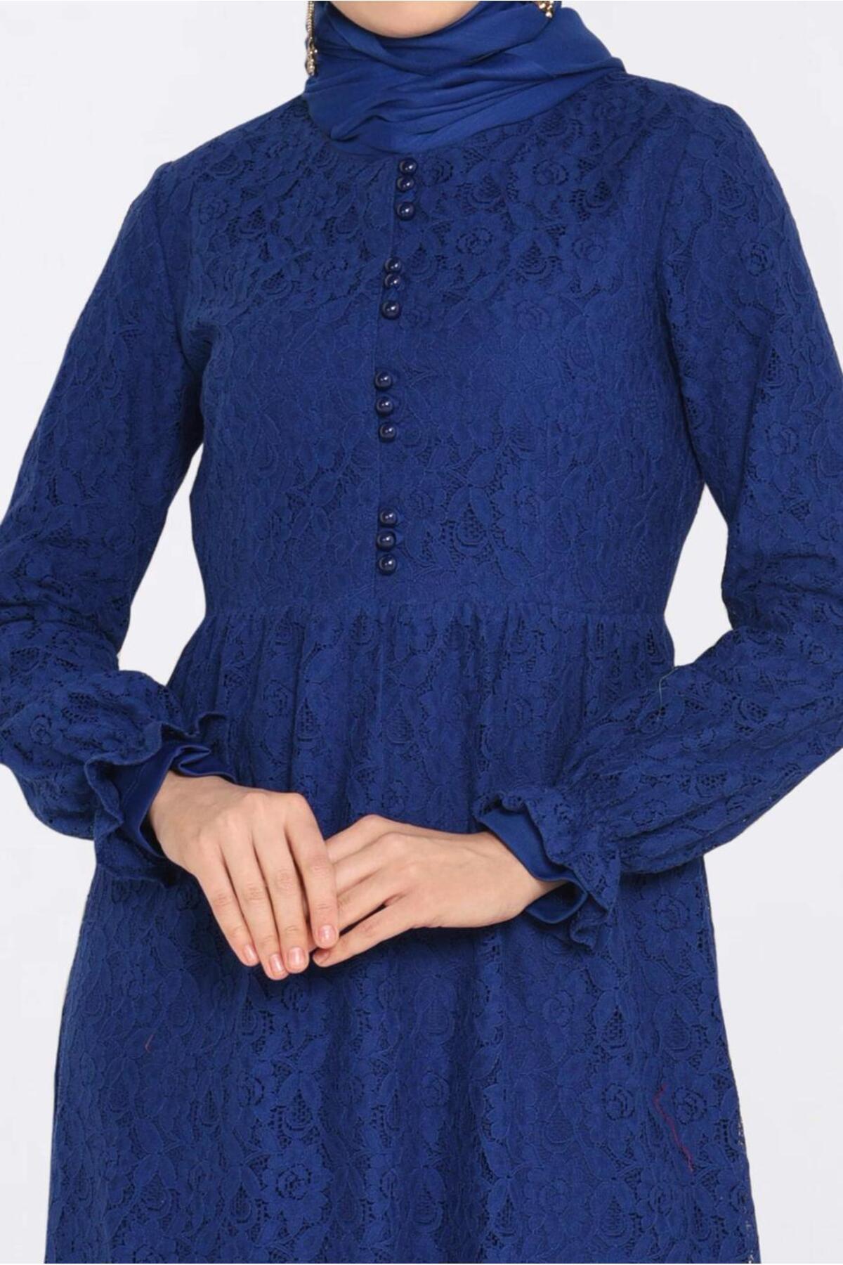 خرید اینترنتی لباس مجلسی دکمهدار توری طرحدار ۴۳۹۰-۱ برند آلوینا Alvina اورجینال از ALVİNA نمایندگی ترکیه