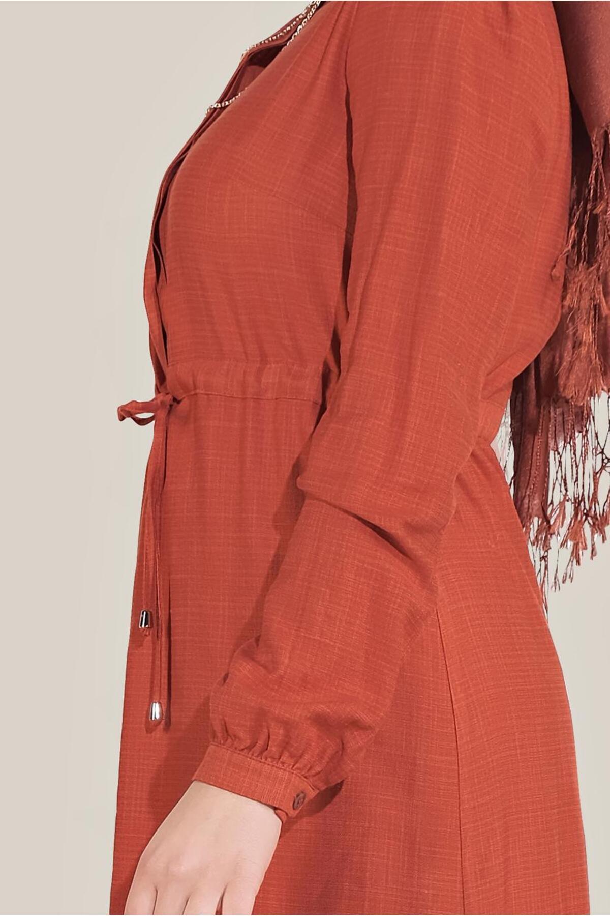 خرید اینترنتی لباس مجلسی چیندار با یقه و کراوات ظریف در کمر ۴۰۷۱۱ برند آلوینا Alvina اورجینال از ALVİNA نمایندگی و فروشگاه معتبر ترکیه